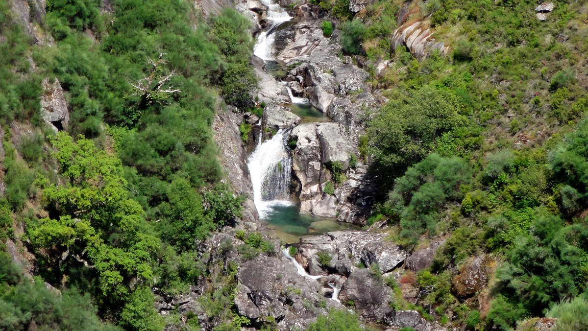 O trilho continuava para a aldeia de Paradela e no caminho encontramos nova levada e vista espetacular para a Fraga da Lages, com as suas múltiplas cascatas e lagoas naturais.