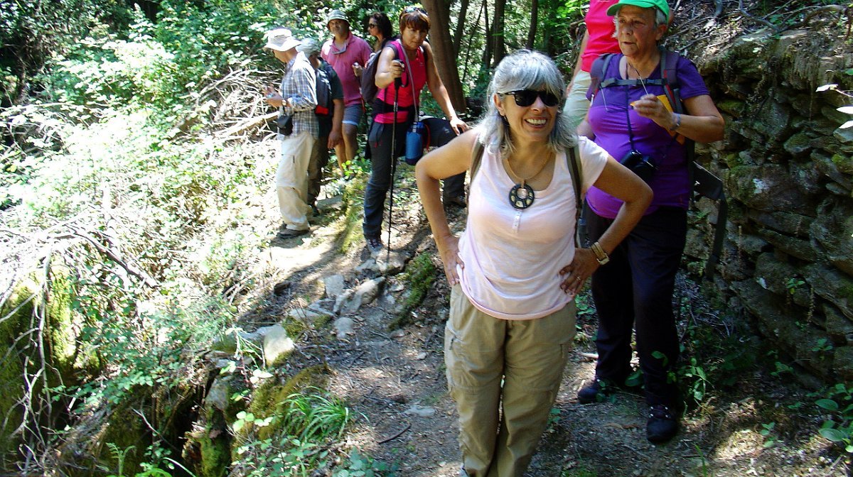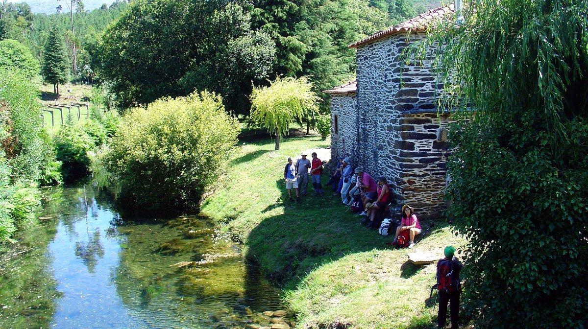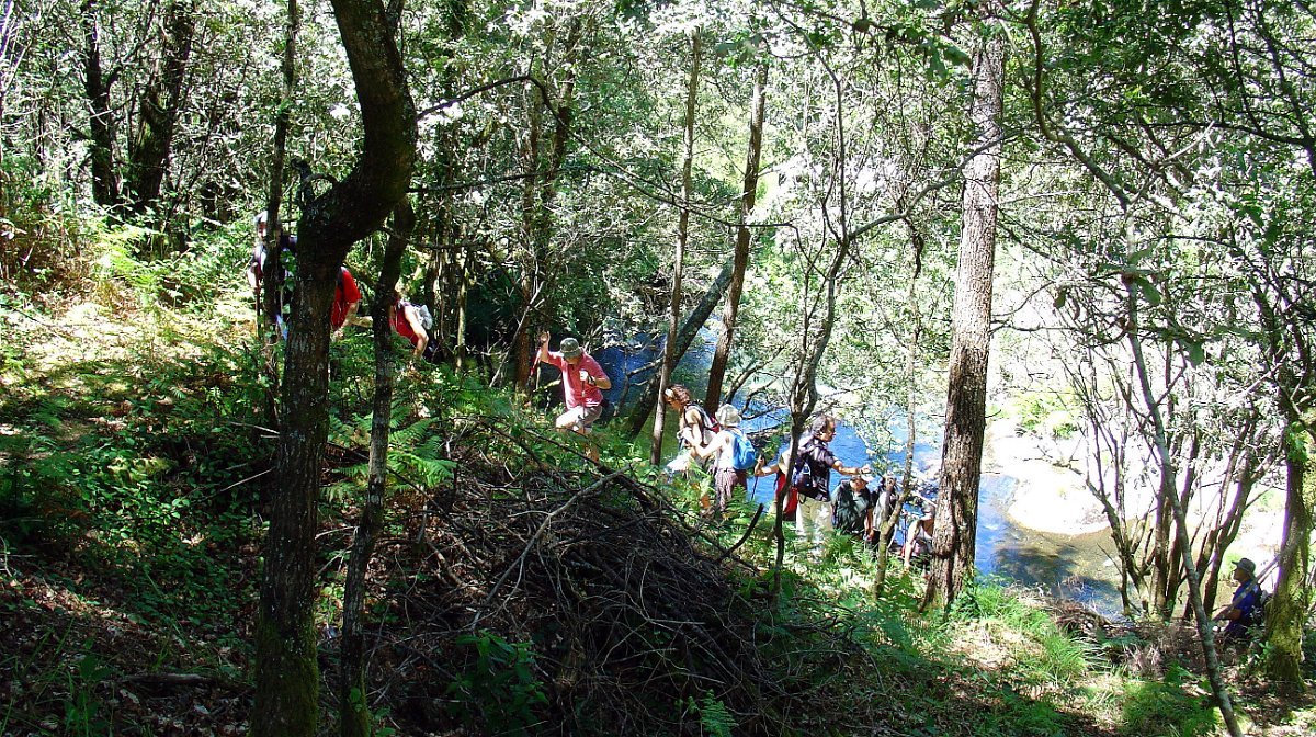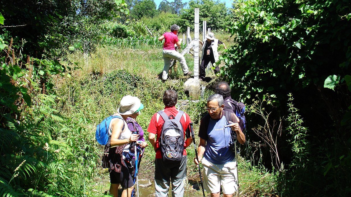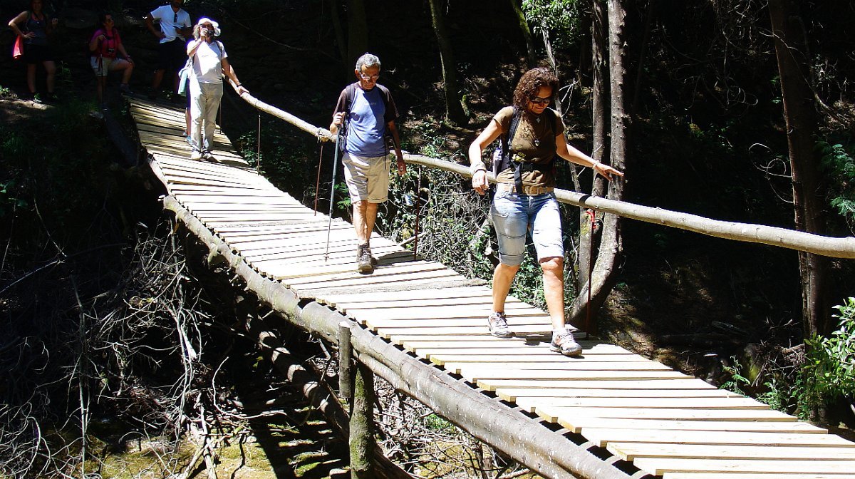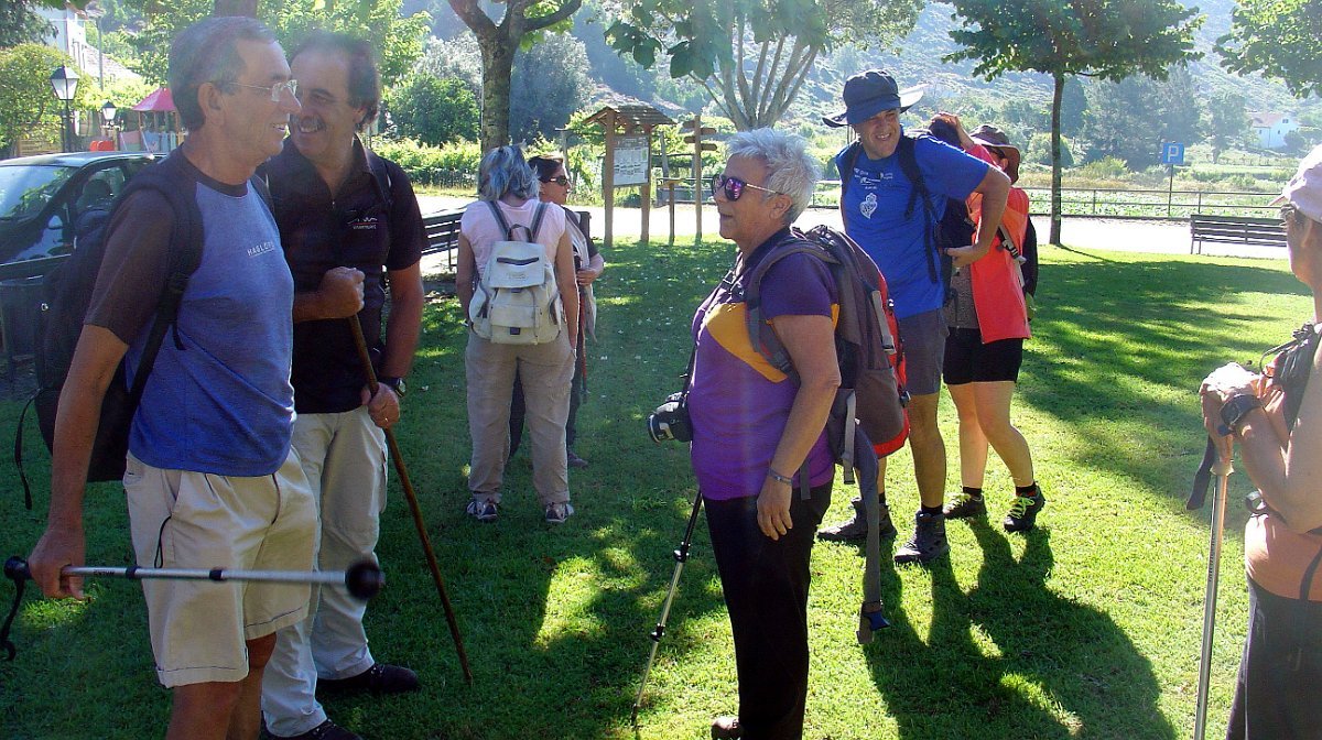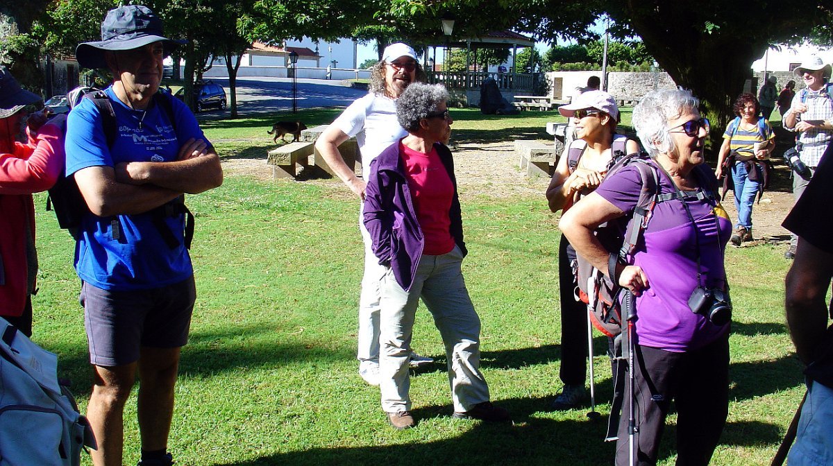 Depois foi a descida até chegar à Ponte Românica de Tourim, local dos célebres batizados de Meia-Noite e trecho do Caminho "Per lorca Maitima" ou Via 21 para Santiago de Compostela. aqui foi feito o retempero de energias e tirada a foto de grupo.