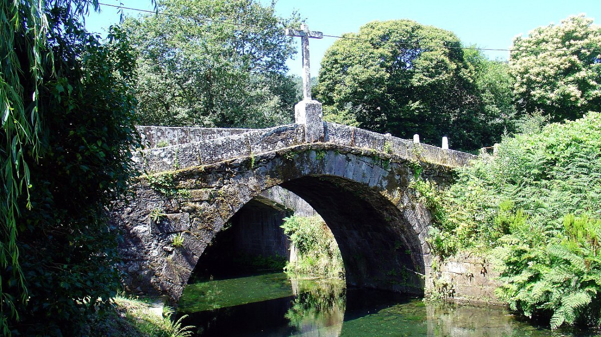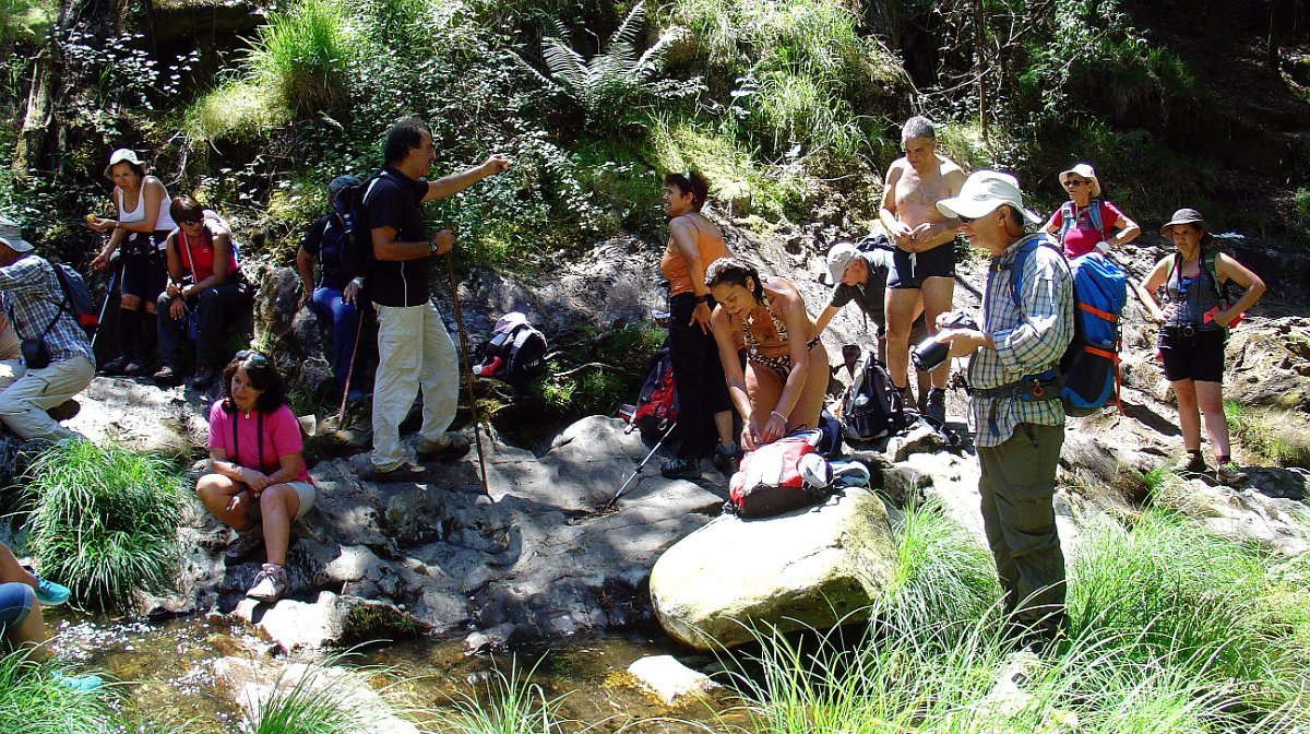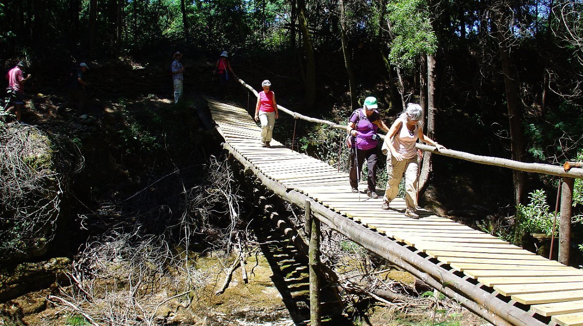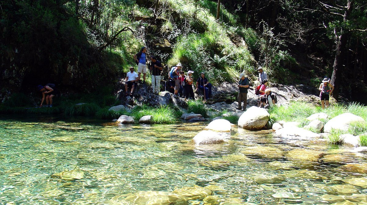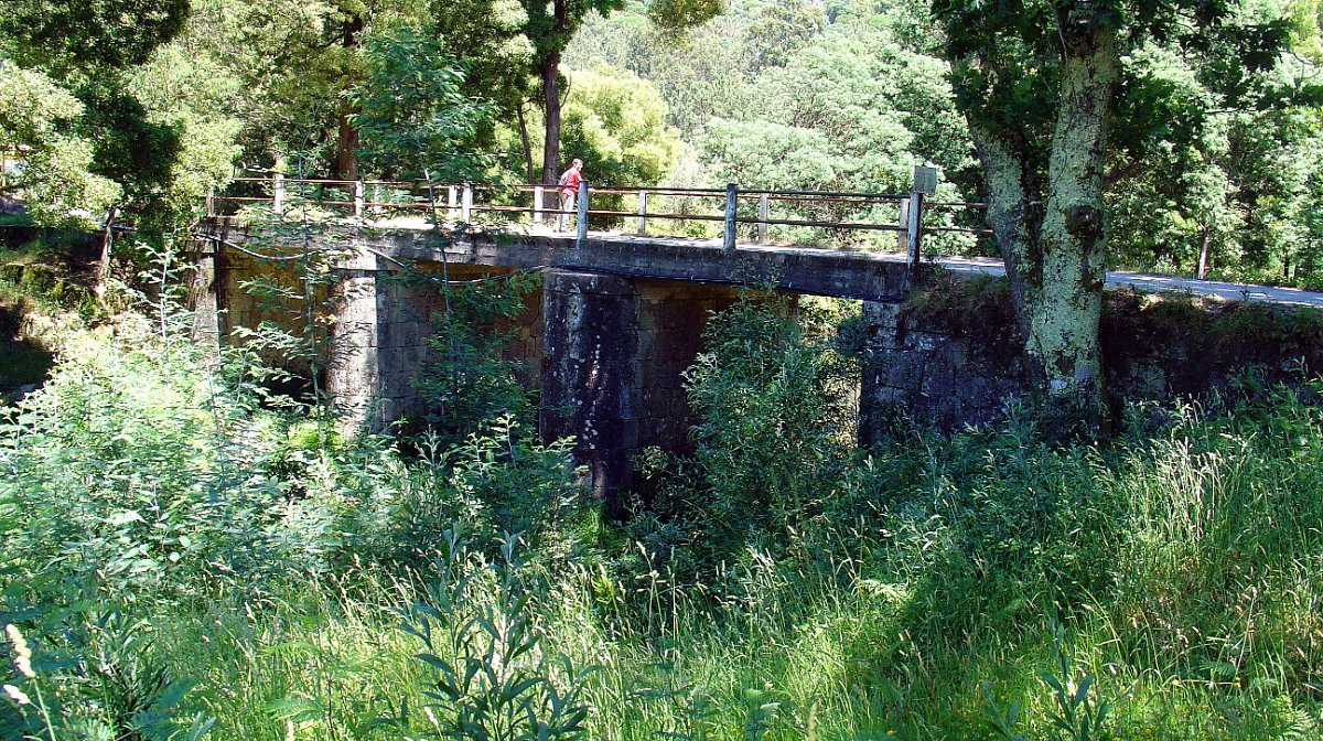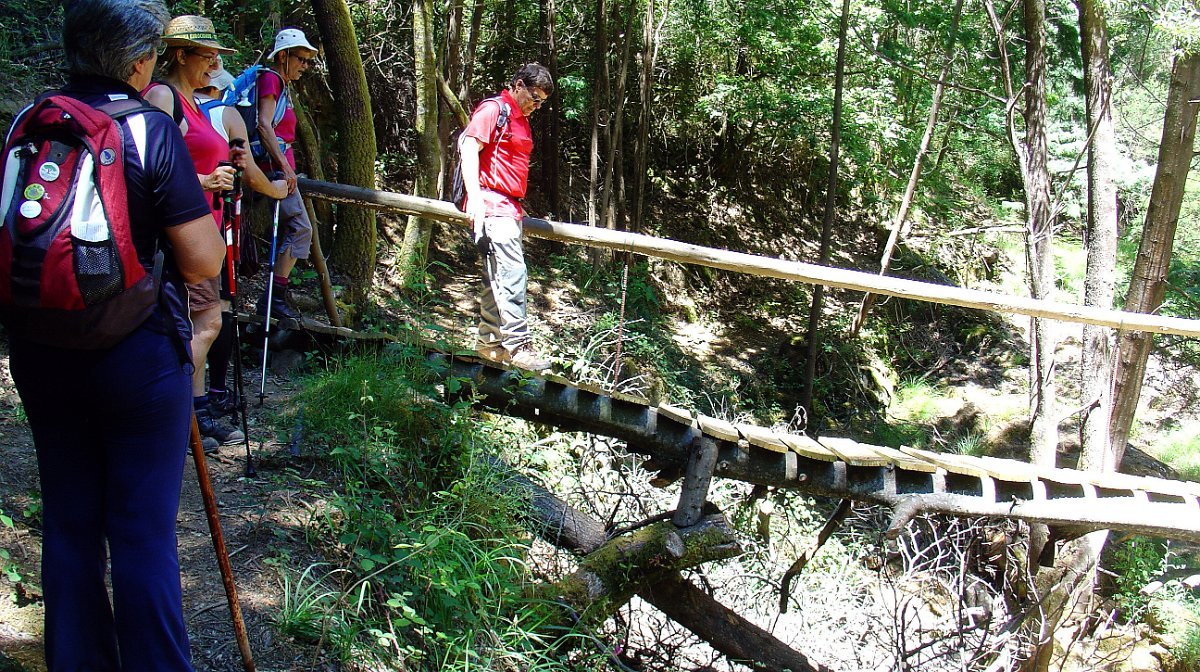 Depois foi a descida até chegar à Ponte Românica de Tourim, local dos célebres batizados de Meia-Noite e trecho do Caminho "Per lorca Maitima" ou Via 21 para Santiago de Compostela. aqui foi feito o retempero de energias e tirada a foto de grupo.