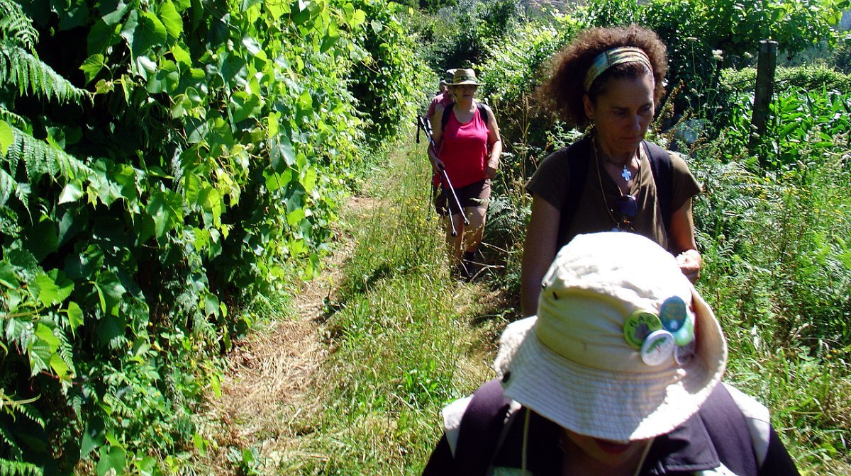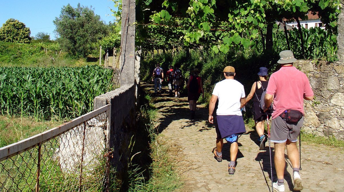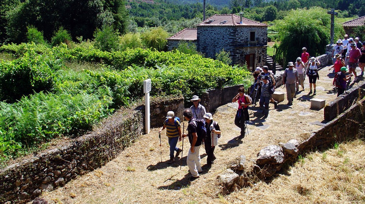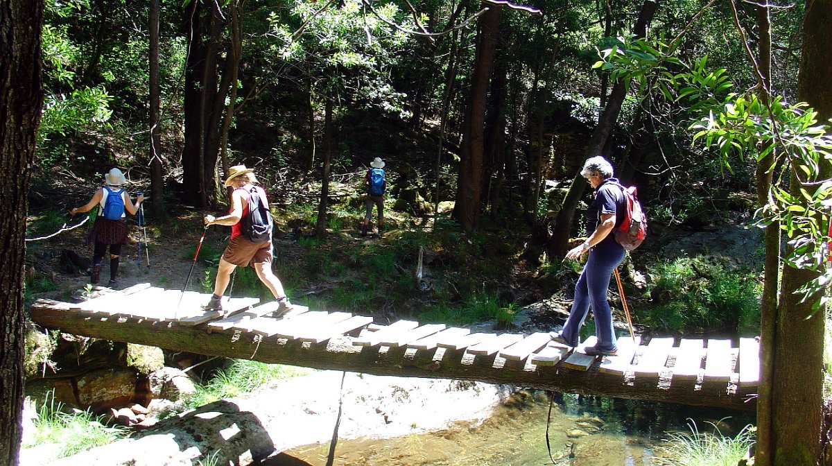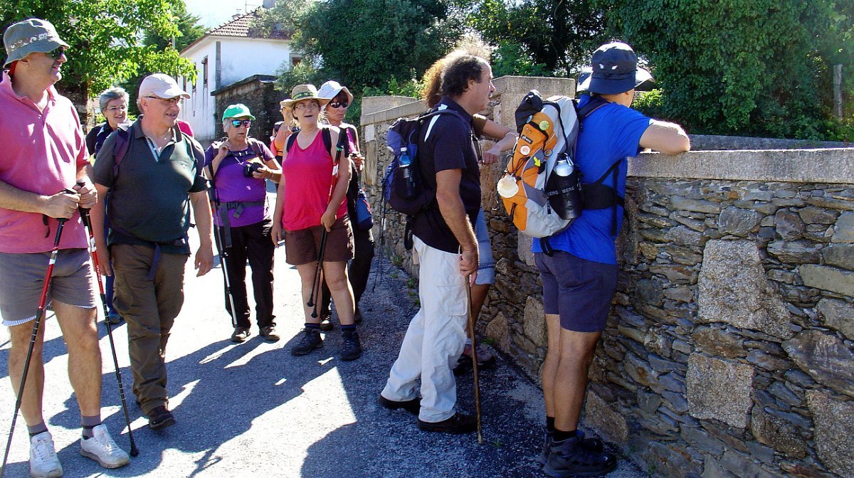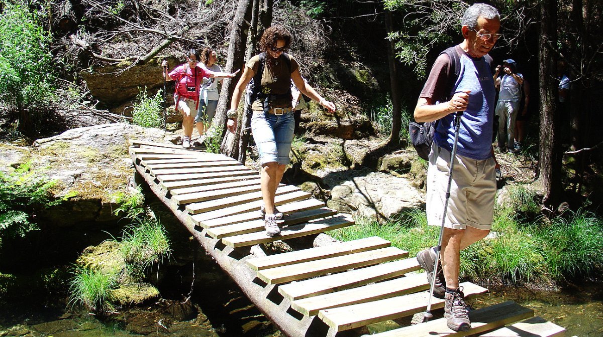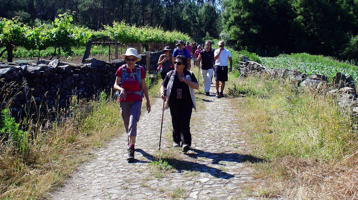 Depois foi a descida até chegar à Ponte Românica de Tourim, local dos célebres batizados de Meia-Noite e trecho do Caminho "Per lorca Maitima" ou Via 21 para Santiago de Compostela. aqui foi feito o retempero de energias e tirada a foto de grupo.