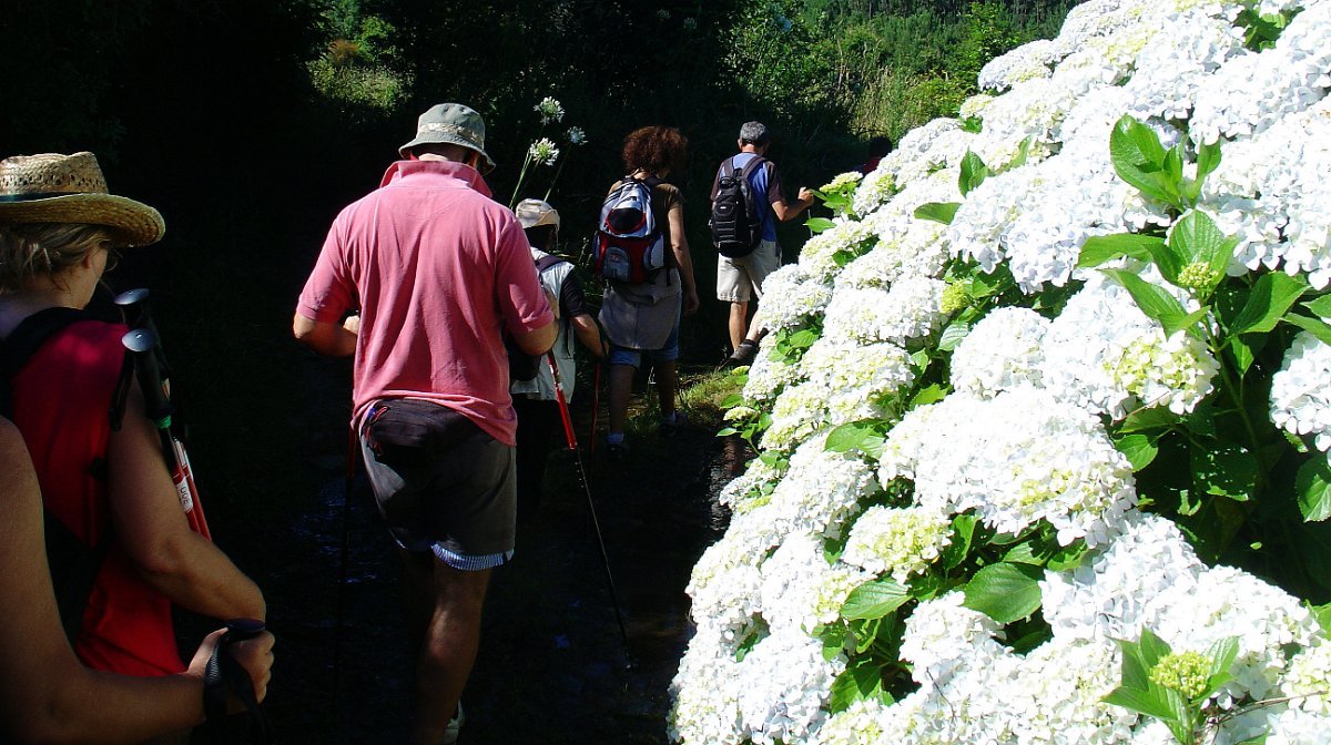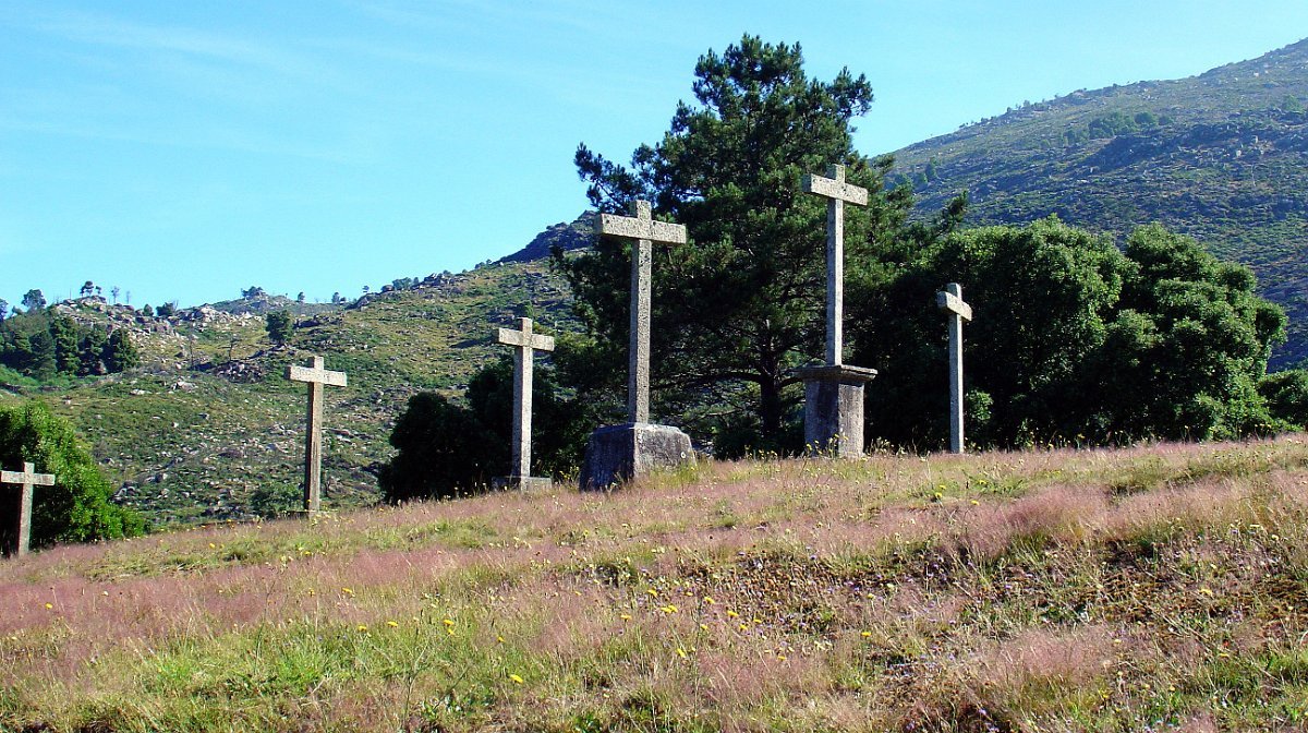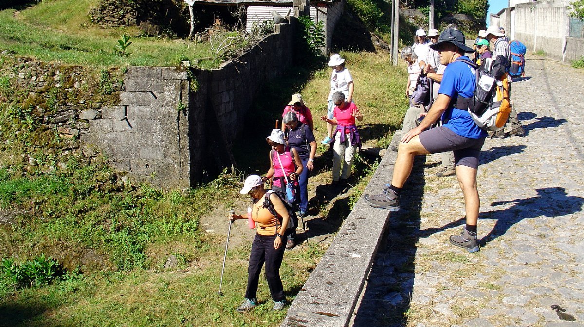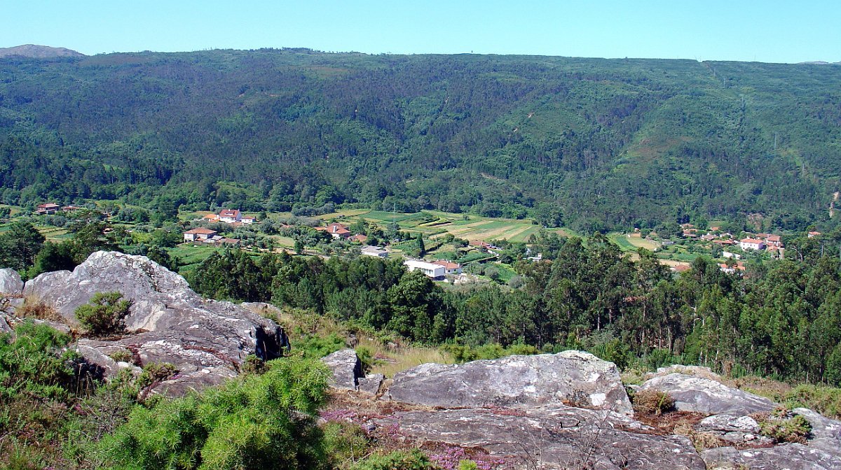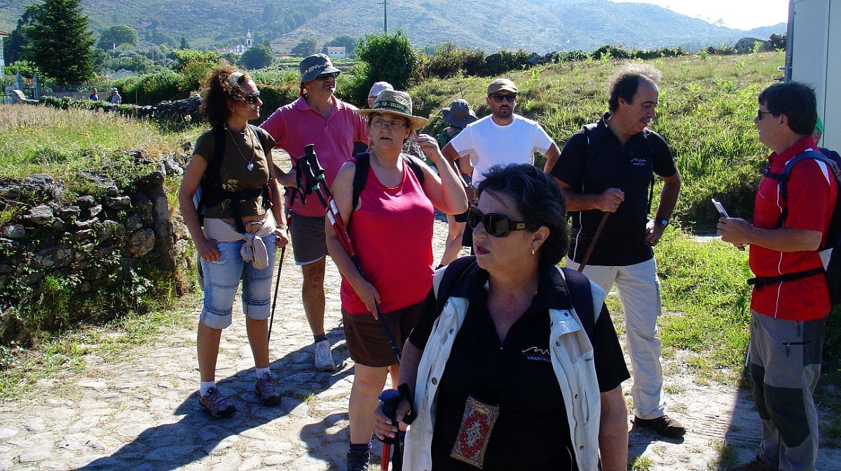 Continuamos agora subindo lentamente até atingir e caminhar pela cumeada do Alto da Coroa. Daqui a vista era deslumbrante, para Norte a mole granítica da serra D'Arga tendo a seus como que semeados pequenos lugarejos. Para Sul lá no fundo o vale de Amonde com o casario estendido pelo mesmo, mais para cima as serras de Amonde e mais atrás a de Santa Luzia.
