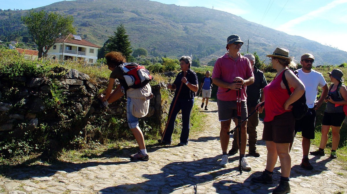 Deixamos o largo principal da aldeia e rumamos em direção da sua igreja paroquial que no seu interior guarda presépios de Machado de Castro, para os quais se recomenda uma visita com mais tempo. Mais á frente passamos junto de um pequeno morro onde se encontra um Calvário com a encosta da serra por trás, e descemos acompanhando o pequeno núcleo dos moinhos da Costa alimentados pelas águas da ribeira de Campos.