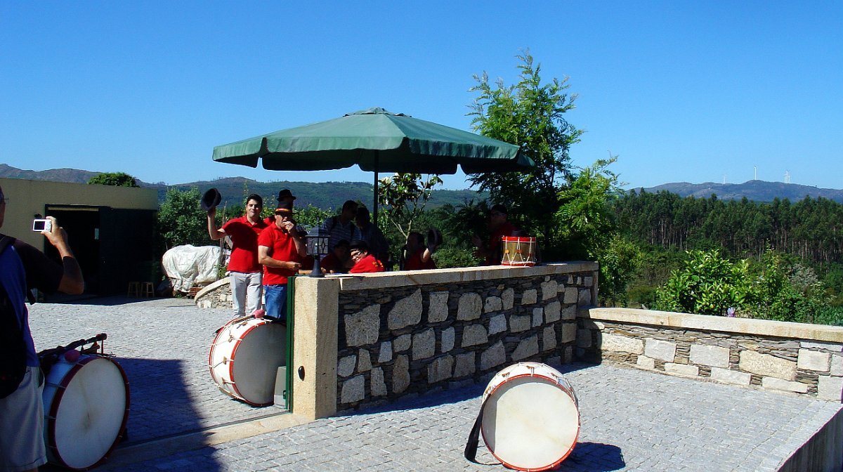 Cruzando a estrada M. 526, seguimos em direção do lugar de Devesa onde um grupo de Zés Pereiras anunciava à população a festa na pequena ermida do Sr. do Socorro.