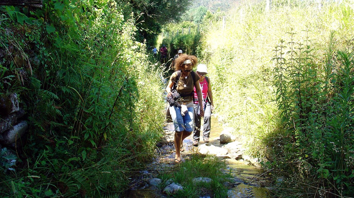 Passada a Ponte continuamos através do caminho do Rio, passando bem perto das Casas de Roma lá fomos seguindo, tendo para isso de vencer parte de trechos do caminho totalmente alagados devido à “hora das "águas de rega", o que originou que alguns tivessem mesmo ficado com os pés molhados, mas não o suficiente para abater a adrenalina já instalada.
