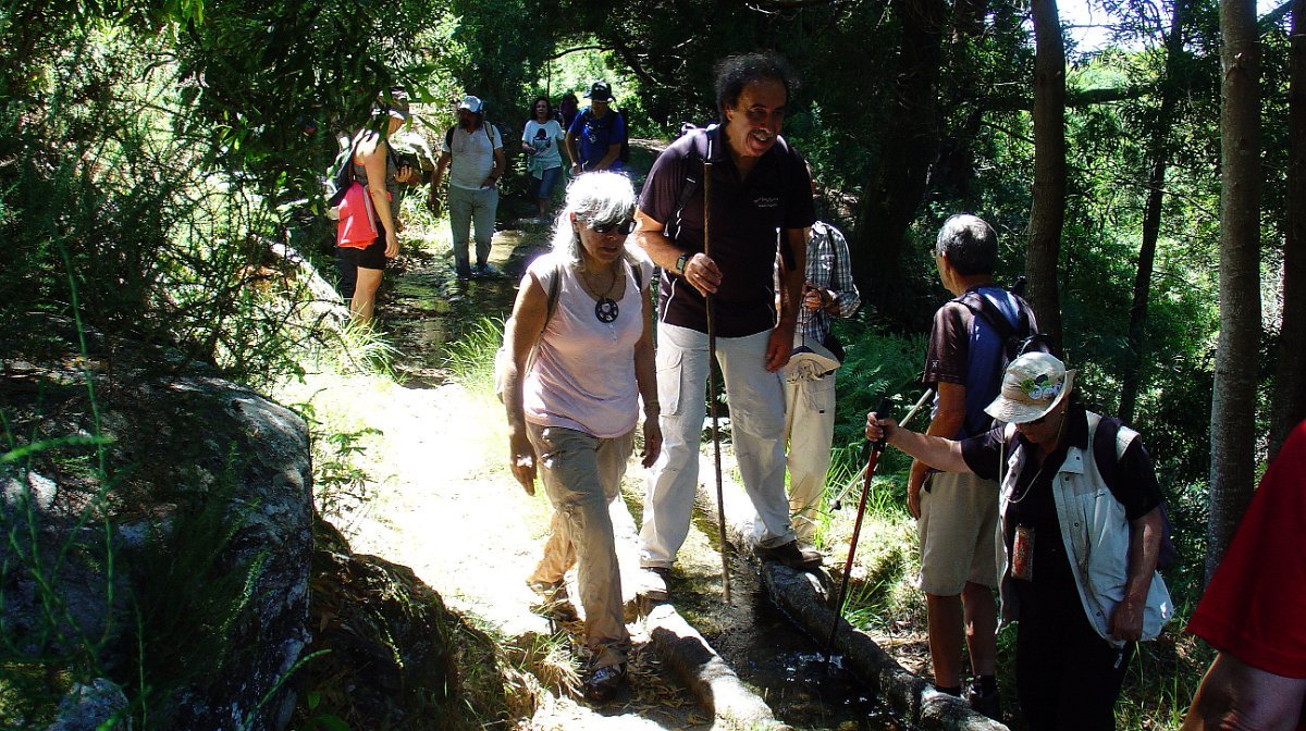 A partir daqui e até ao Parque do Viveiro Florestal de S. Lourenço, entendo deixar a descrição um pouco ao critério de cada um, pois que ora através de estreitos carreiros ladeando antigas levadas, ora saltando de pedra em pedra acolchoada de tufos de musgo, caminhando sempre sob bosque de floresta autóctone e junto ao rio onde quedas de água alimentavam lagoas de maior ou menor dimensão. Aqui e ali ruinas de antigos moinhos são testemunhas da servidão destas águas . Pequenos recantos do rio com sol convidavam ao repouso e mergulho junto das suas águas. talvez numa outra altura com mais tempo.