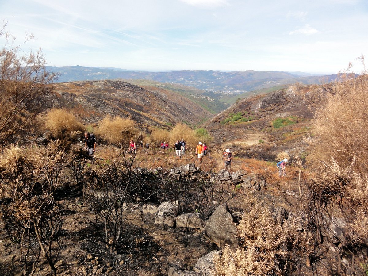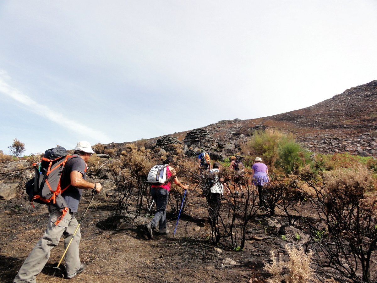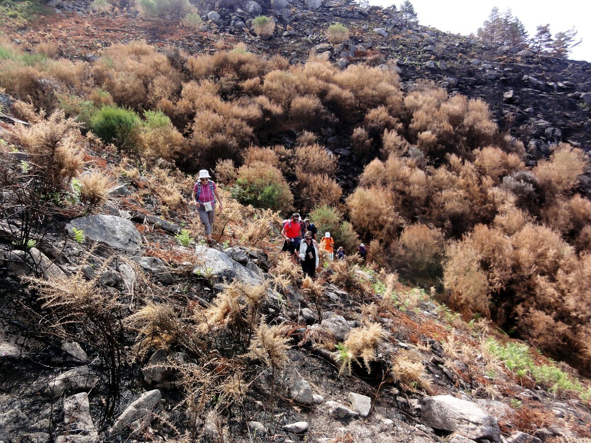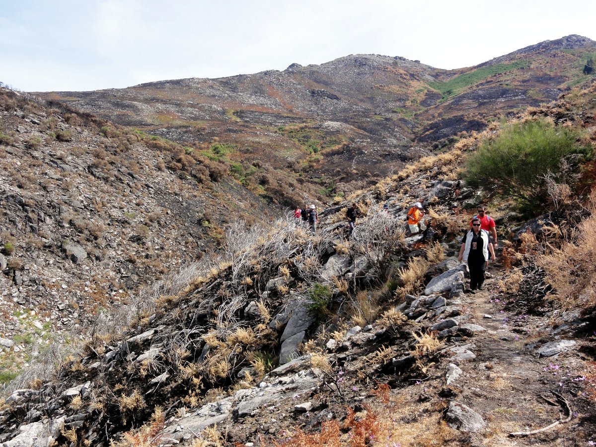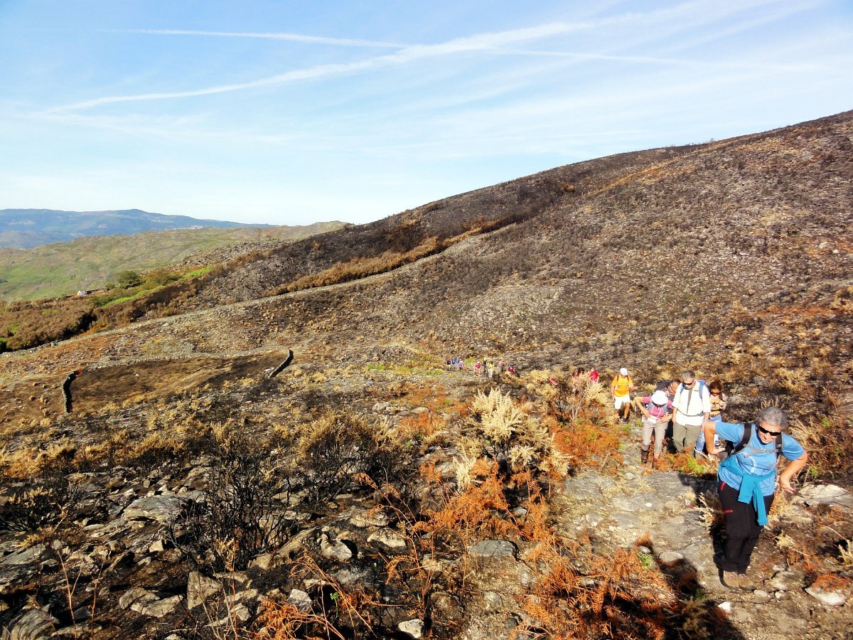 Depois da pausa continuamos até quase ao início da calçada dos Bicos, utilizada na romagem à Senhora da Peneda e pouco depois de cruzar a ribeira de Aroio, visitamos a branda de Albar, agora descoberta pelo incêndio que fez desaparecer toda a vegetação desse lado da serra.