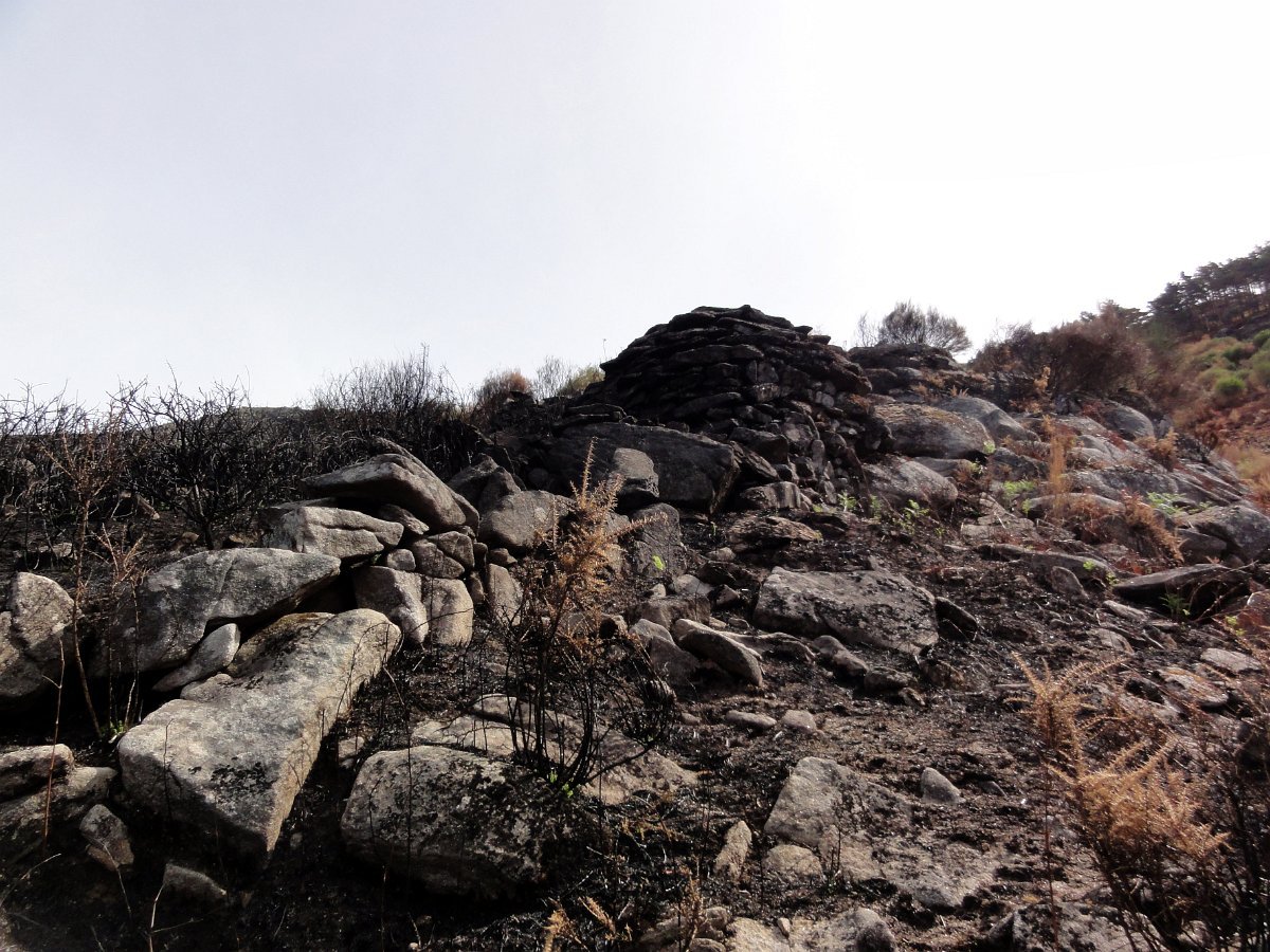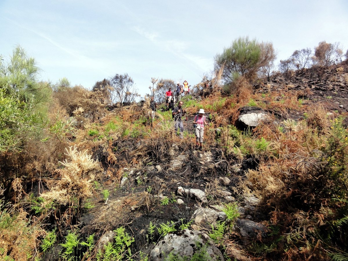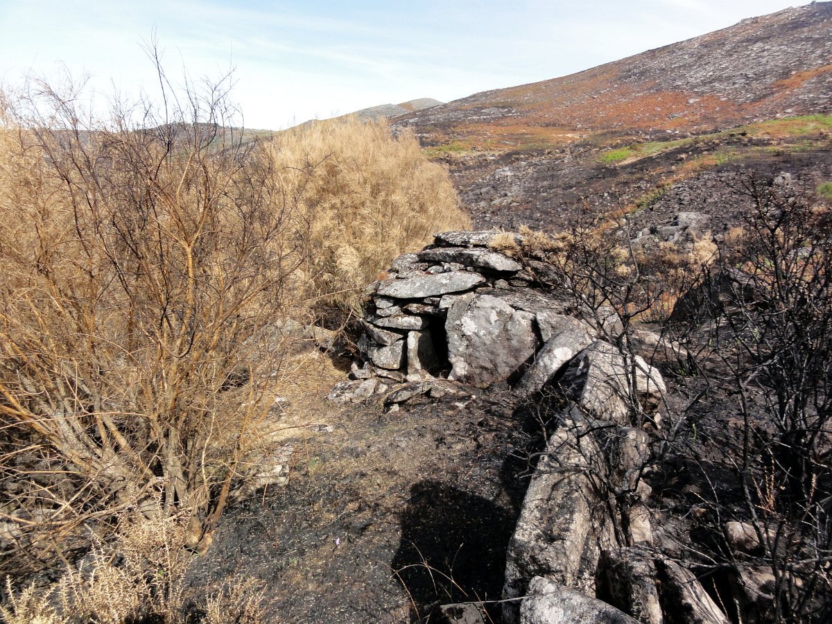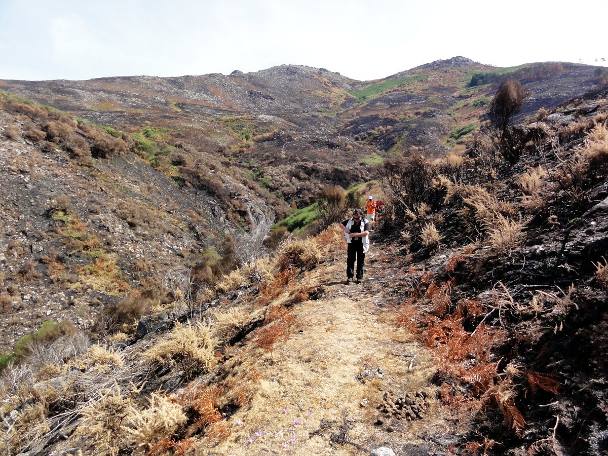 Depois da pausa continuamos até quase ao início da calçada dos Bicos, utilizada na romagem à Senhora da Peneda e pouco depois de cruzar a ribeira de Aroio, visitamos a branda de Albar, agora descoberta pelo incêndio que fez desaparecer toda a vegetação desse lado da serra.