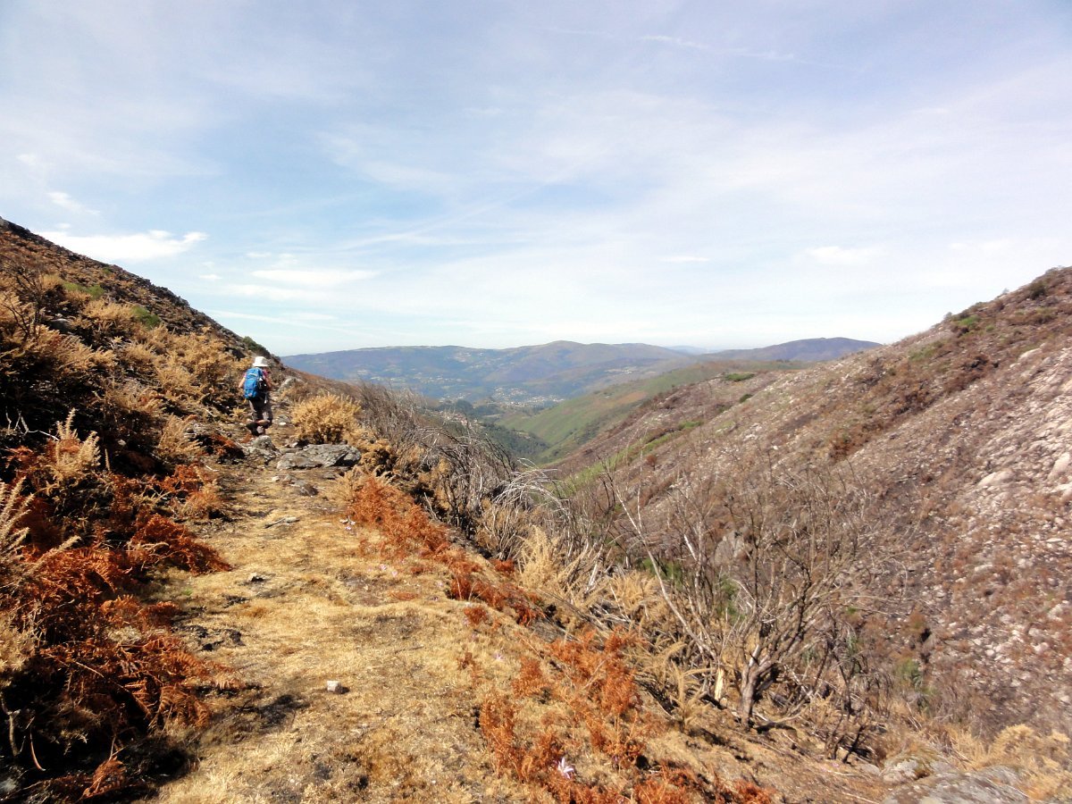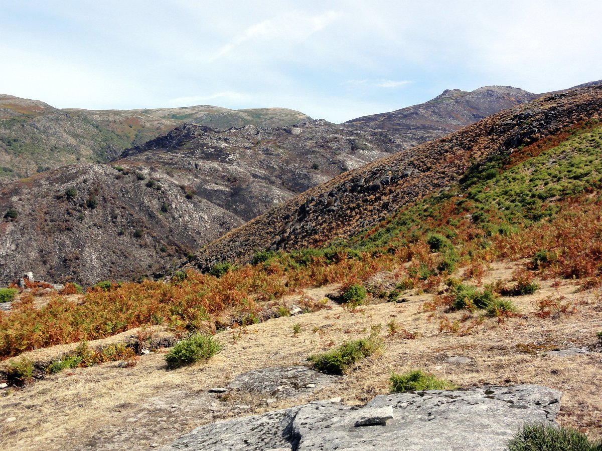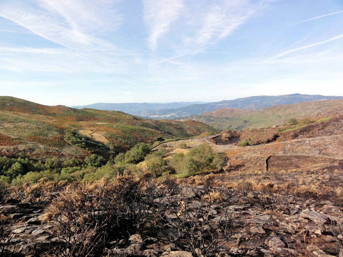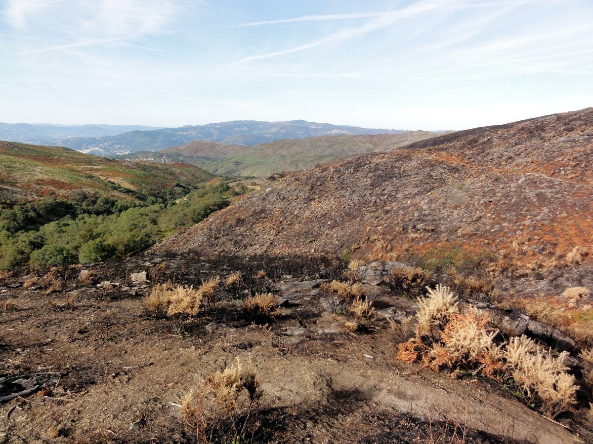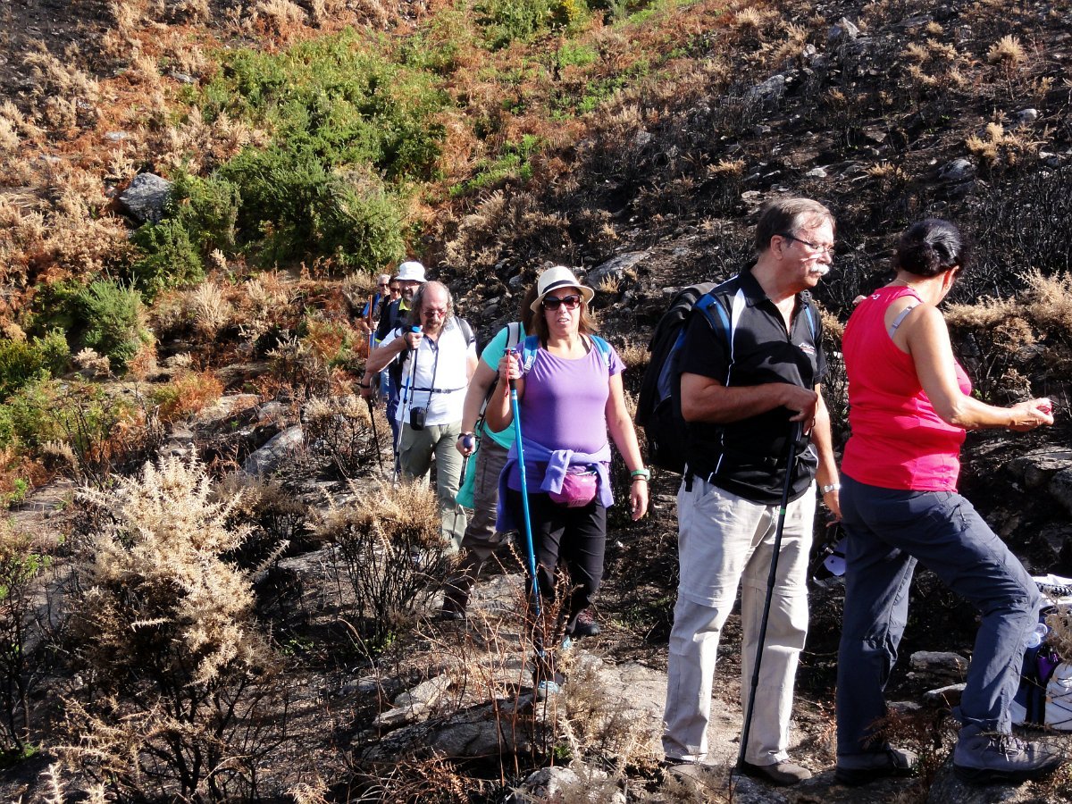 Depois da pausa continuamos até quase ao início da calçada dos Bicos, utilizada na romagem à Senhora da Peneda e pouco depois de cruzar a ribeira de Aroio, visitamos a branda de Albar, agora descoberta pelo incêndio que fez desaparecer toda a vegetação desse lado da serra.