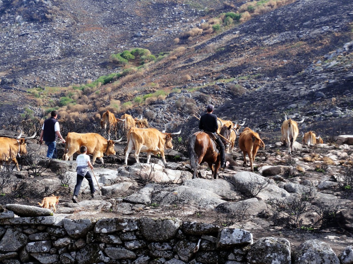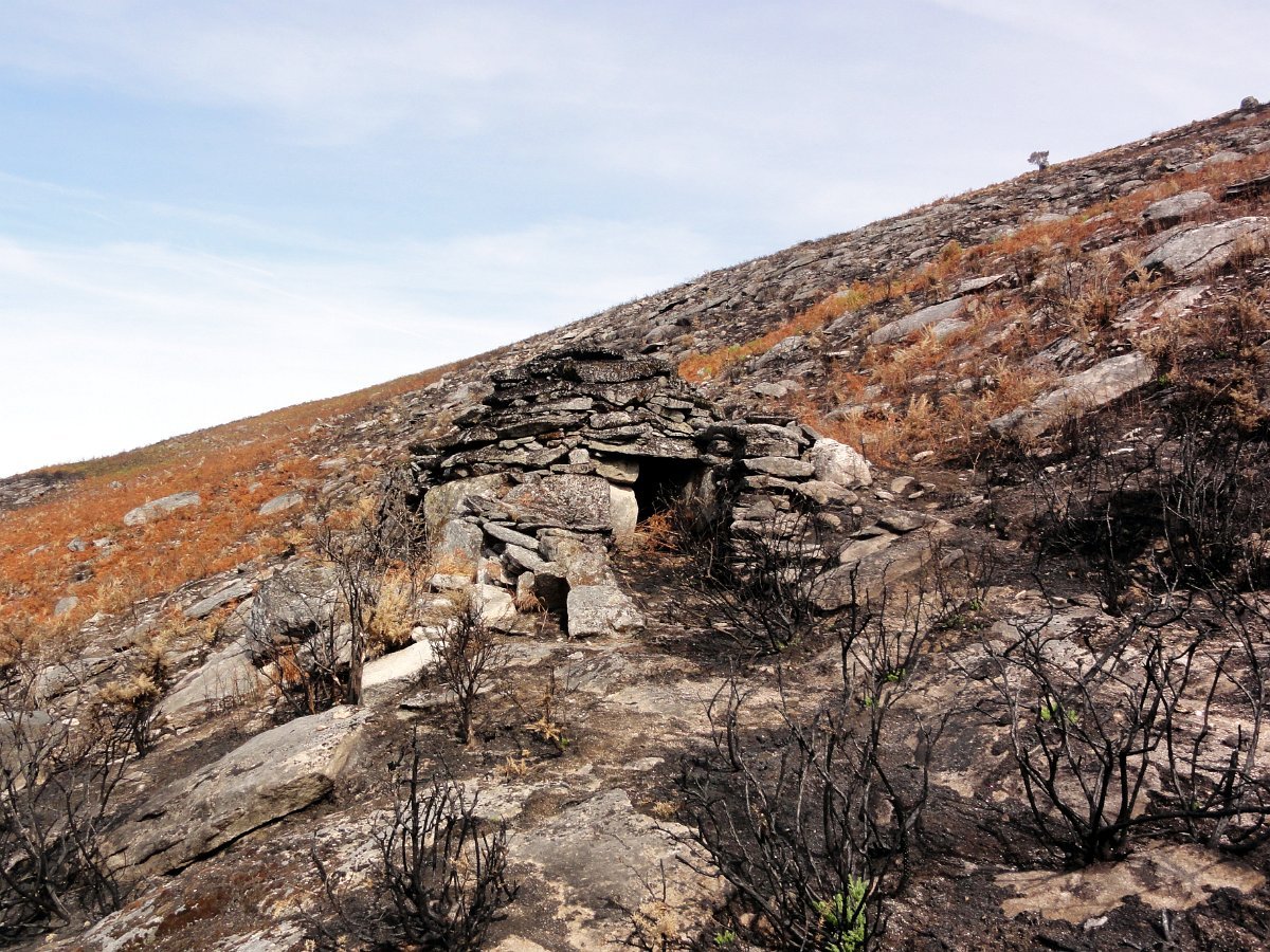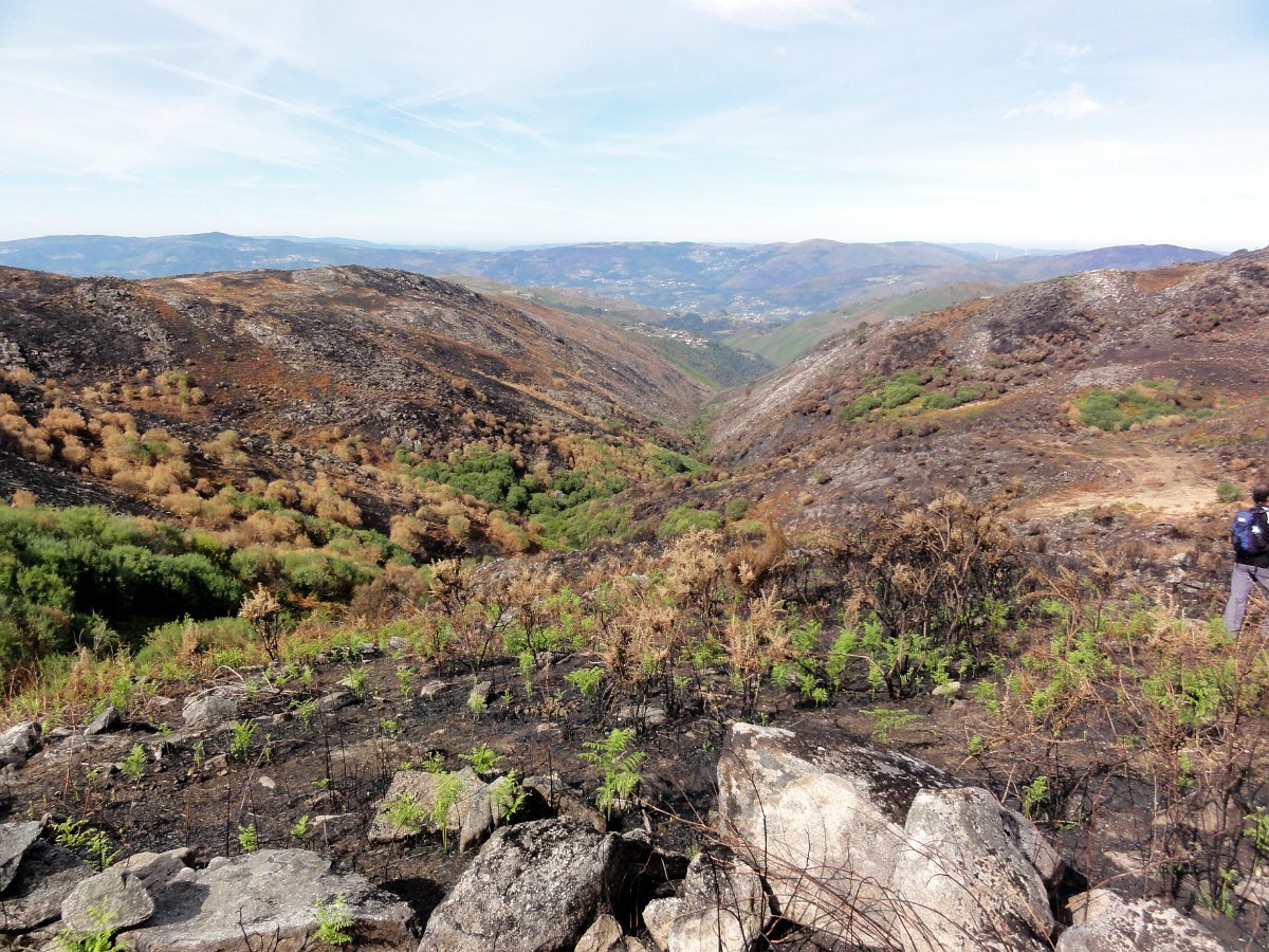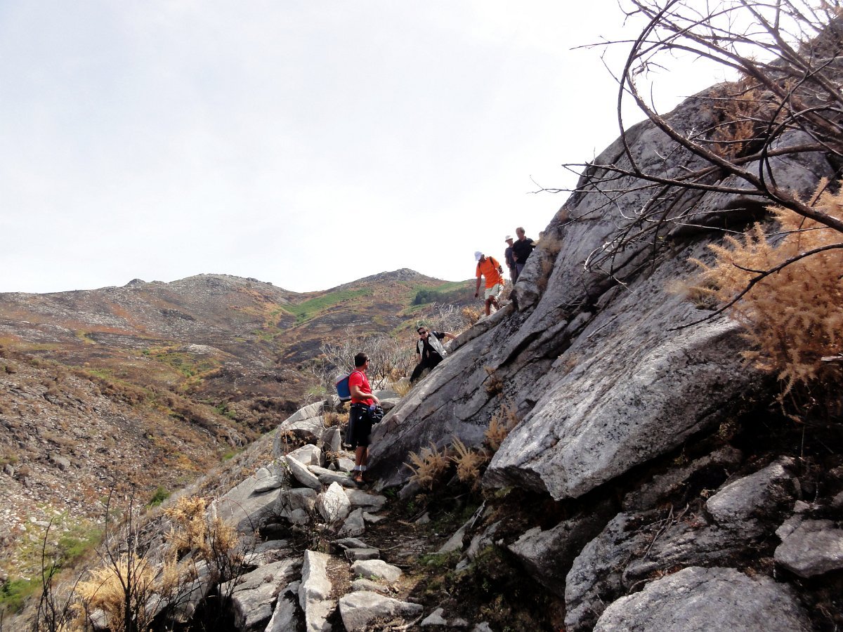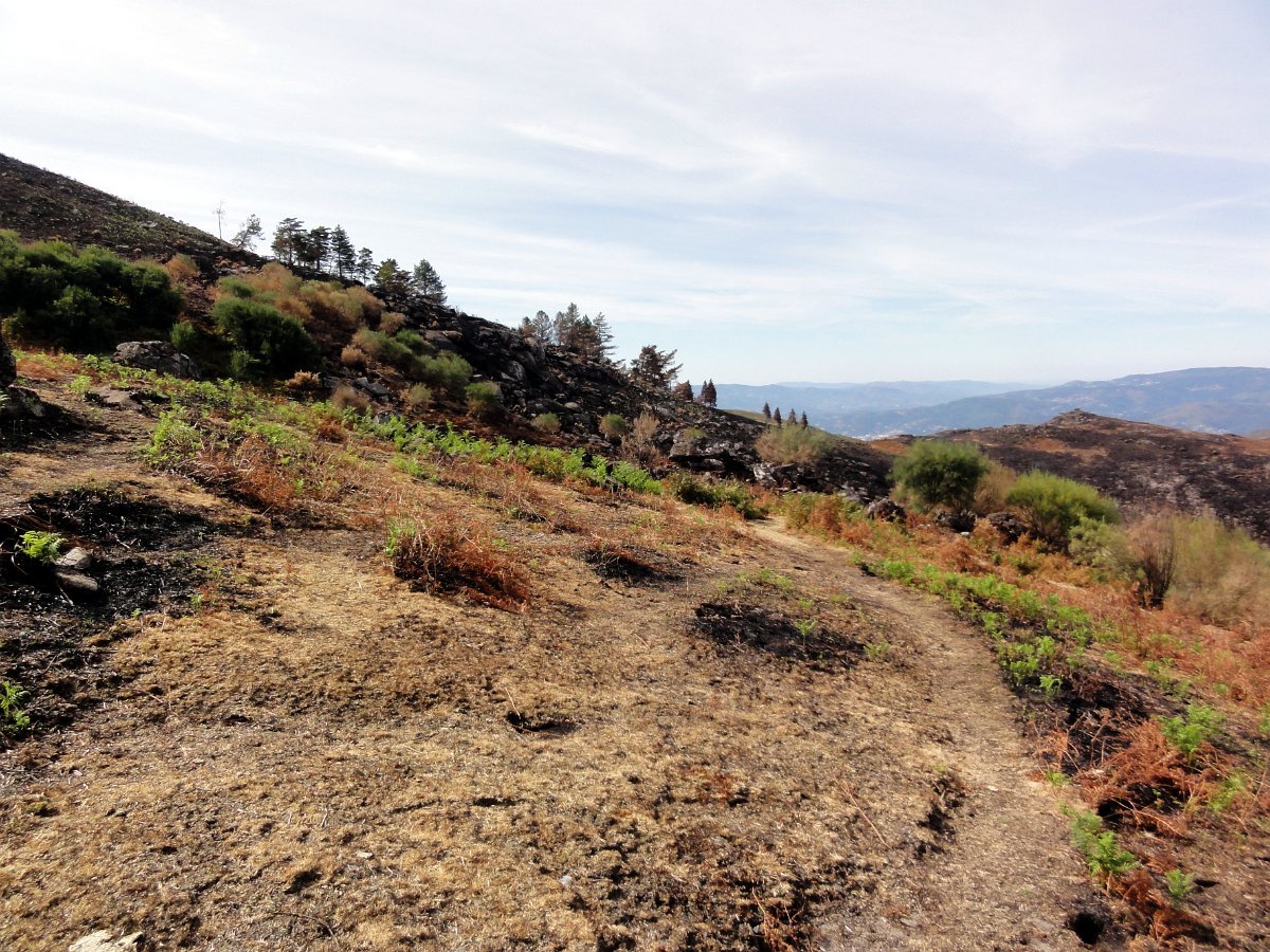 Depois da pausa continuamos até quase ao início da calçada dos Bicos, utilizada na romagem à Senhora da Peneda e pouco depois de cruzar a ribeira de Aroio, visitamos a branda de Albar, agora descoberta pelo incêndio que fez desaparecer toda a vegetação desse lado da serra.