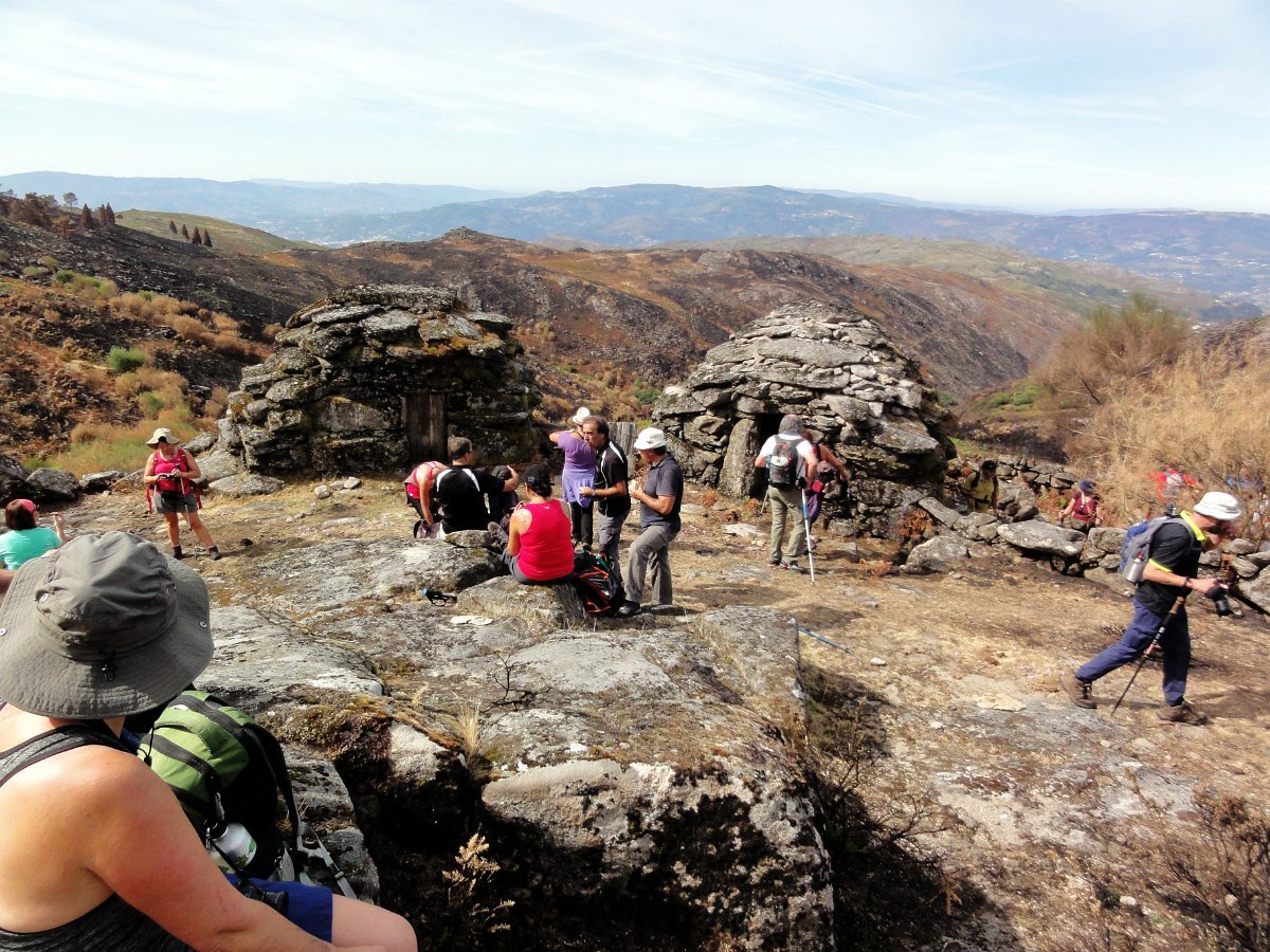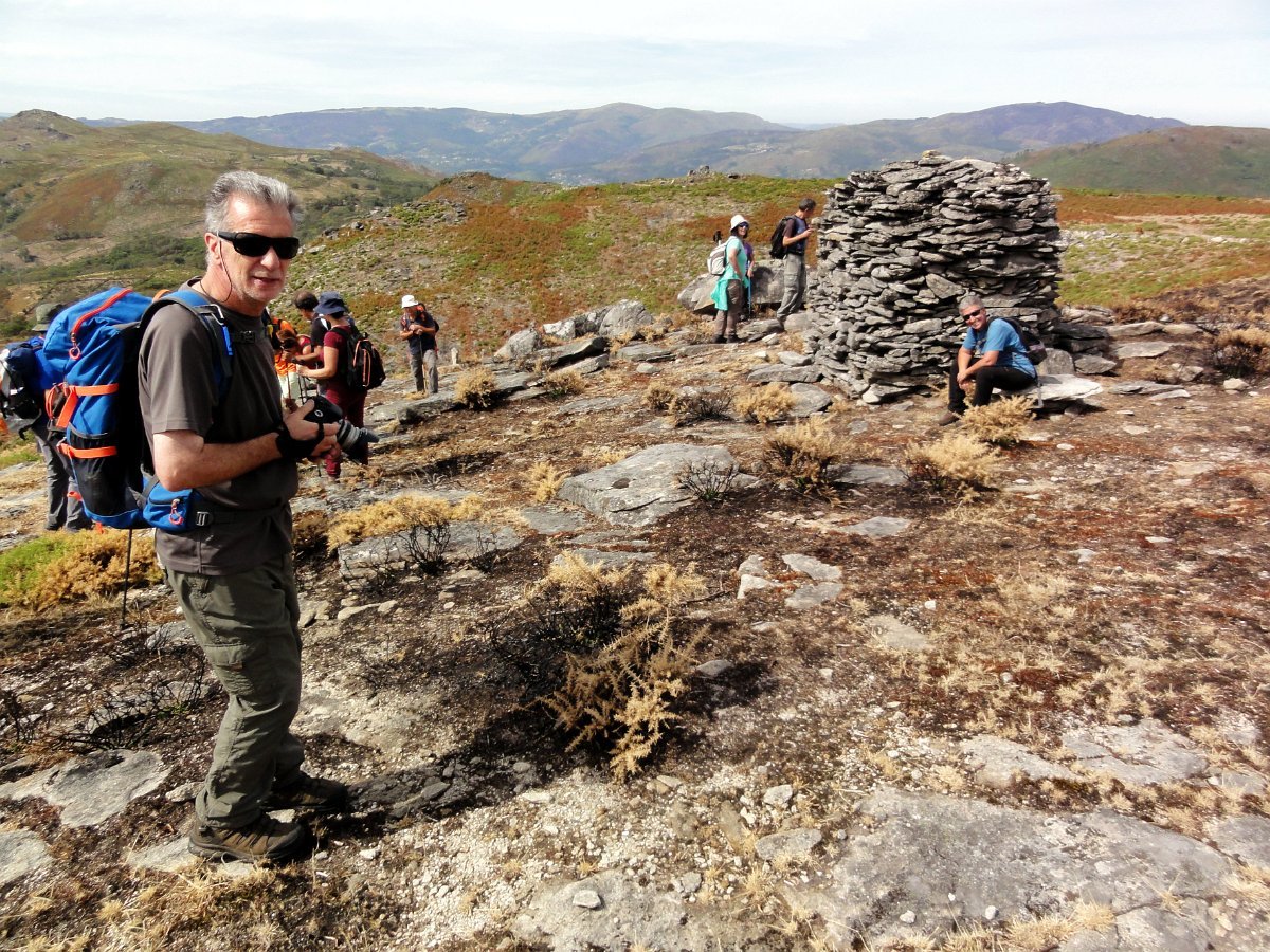 Seguiu-se a branda de Soegas, onde recuperamos forças, junto a dois bem conservados abrigos de dois andares, onde tiramos a costumeira foto de grupo, com o vale do ribeiro de Arroio a servir de pano de fundo.