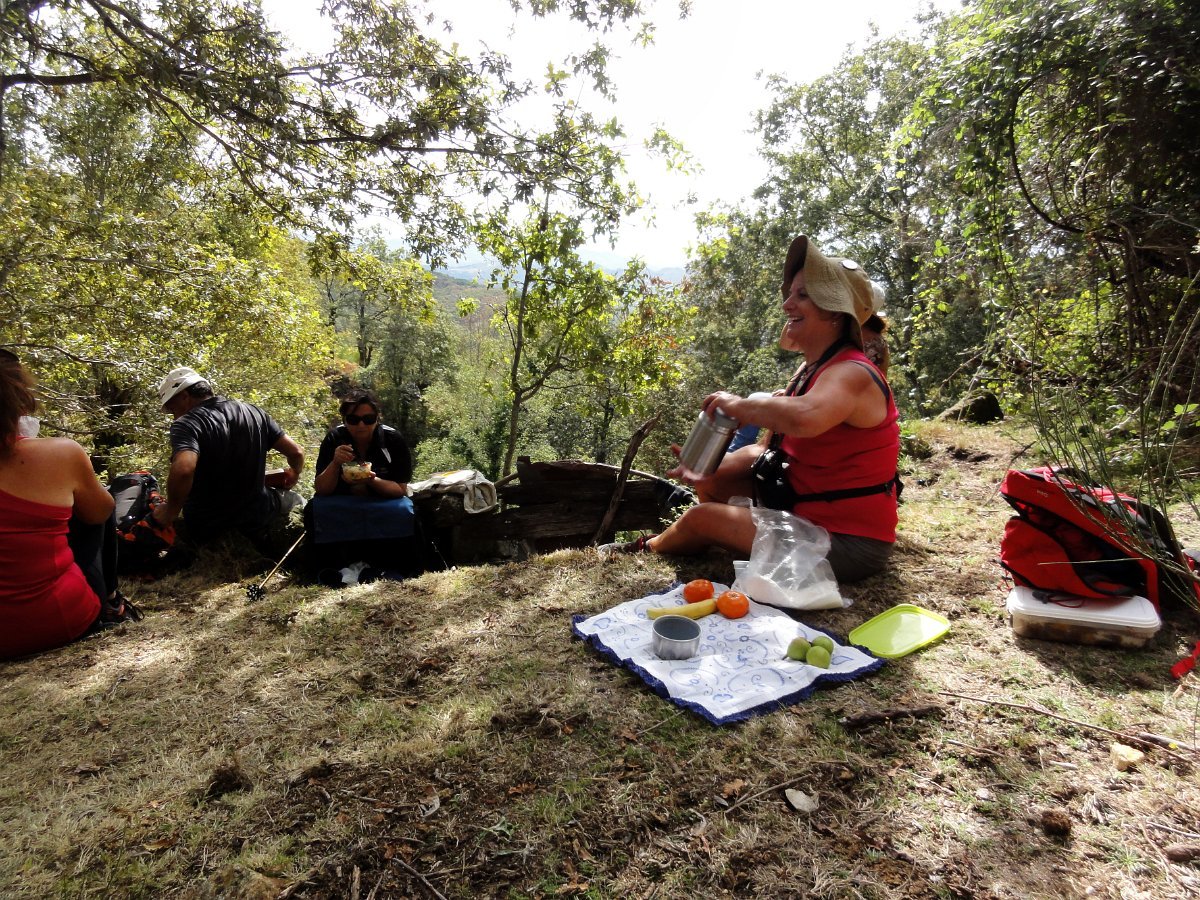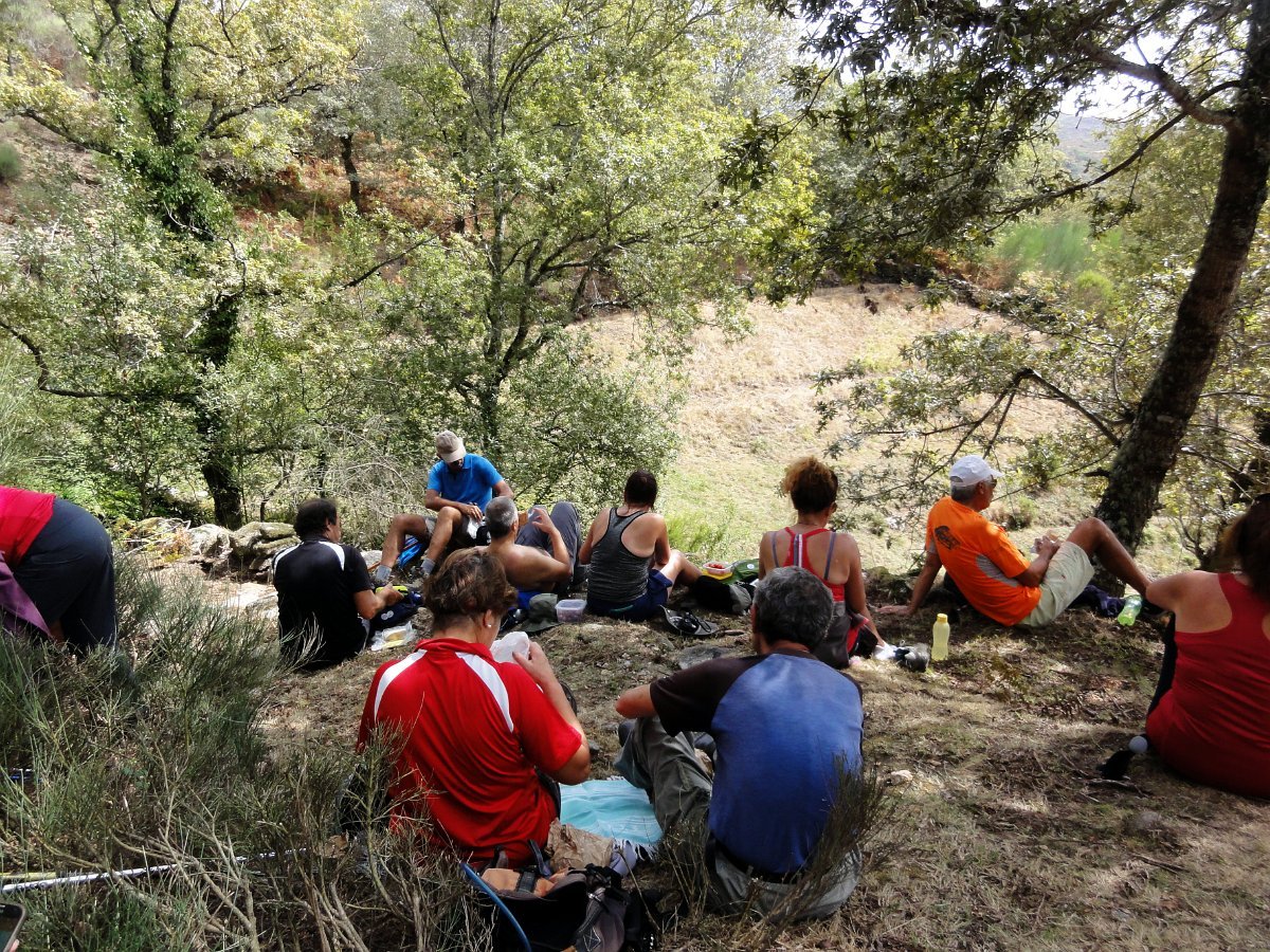 Chegados a Lombadinha iniciamos a descida para a ribeira do Porto de Avelar, fazendo a pausa de almoço (já bem tardio) à sombra do carvalhal.