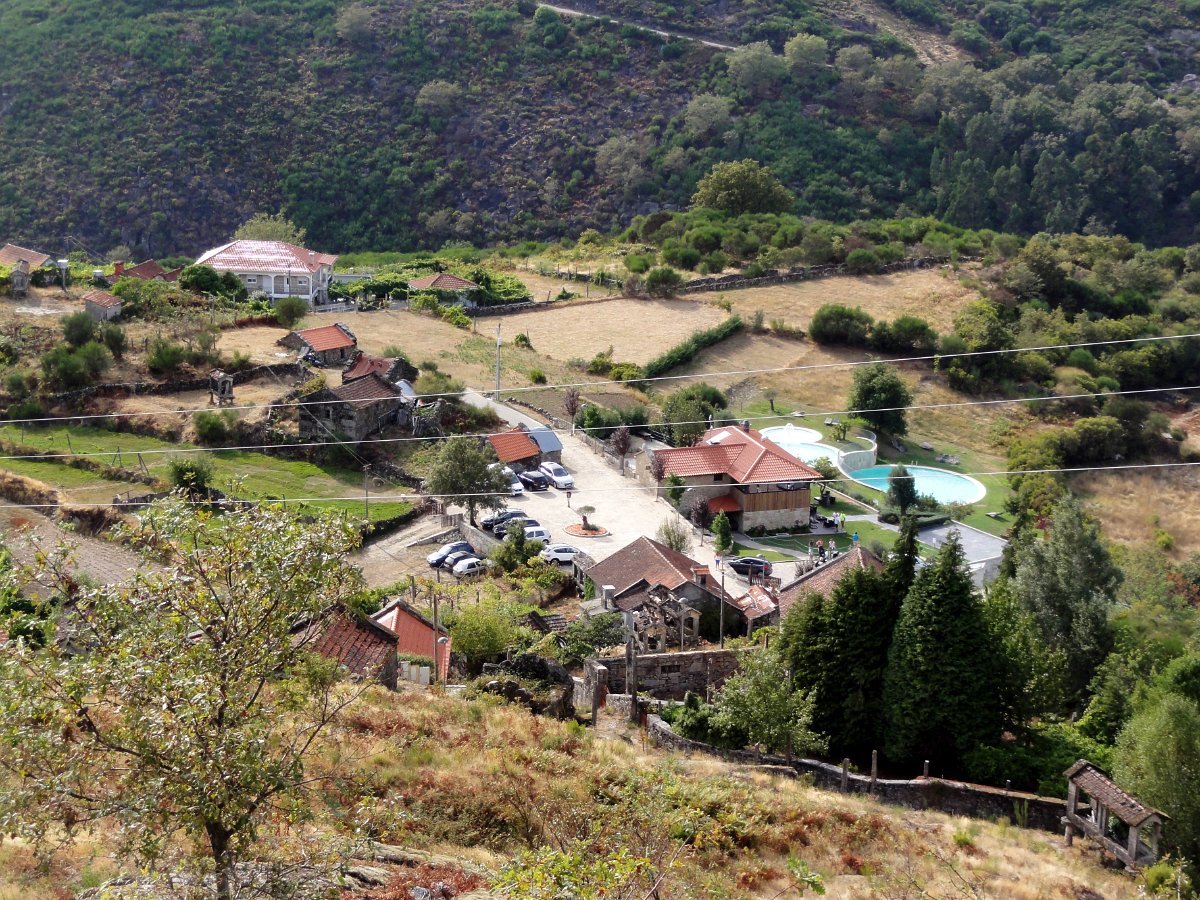 E lá fomos subindo lentamente até Oucias, onde paramos no bar da Eco Parque, para apreciar o complexo turístico muito bem enquadrado na paisagem de montanha, e também para matar a sede que nos atormentava, pelo tempo quente que se fazia sentir.