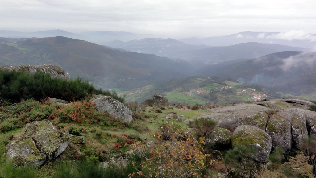 O percurso escolhido foi o da Varanda do Coura, de que junto descrição, com a passagem inicial pelos miradouros do Penedo do Rebolinho e da Chã do Vento.
