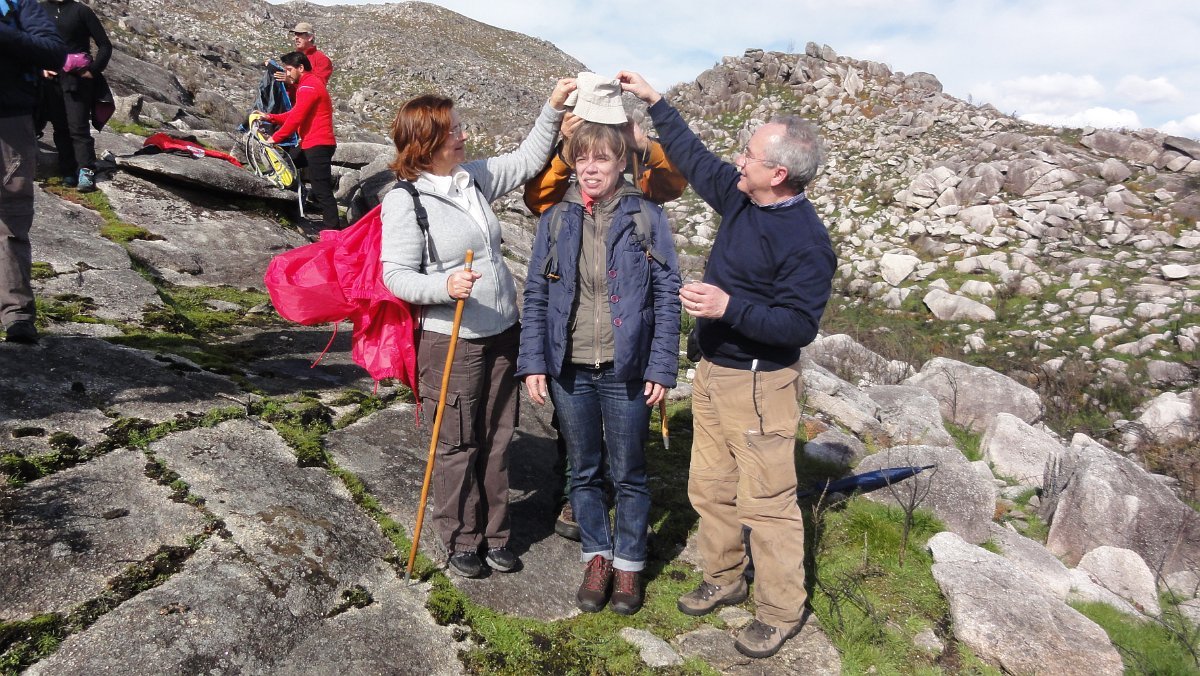 Chegou entretanto a hora de almoço, pelo que fizemos a paragem junto a uma pequena ribeira, onde para além do reabastecimento, teve lugar a cerimónia de batismo de mais três novos companheiros. Desta vez a honra coube a Alexandra Soares, Jorge Carvalhido e ao Luís Carvalhido, que receberam os votos ao som da sacra ladainha, “Arriun Porum Bota Abaixorum - Amem”, tornando-se assim membros efetivos do Grupo de Montanhismo de Viana do Castelo – Vianatrilhos, com a pesada responsabilidade que esta distinção acarreta aos caloiros.