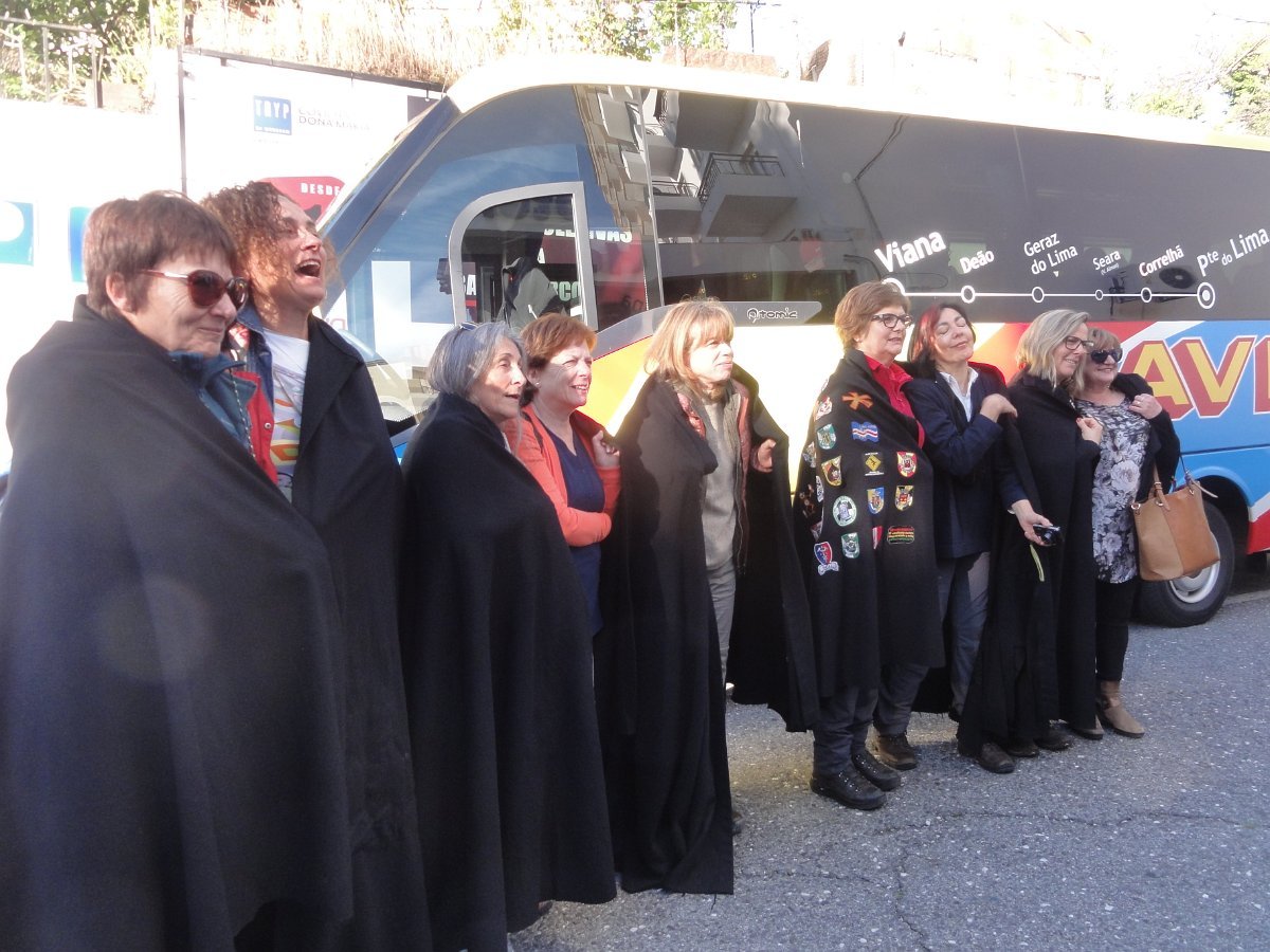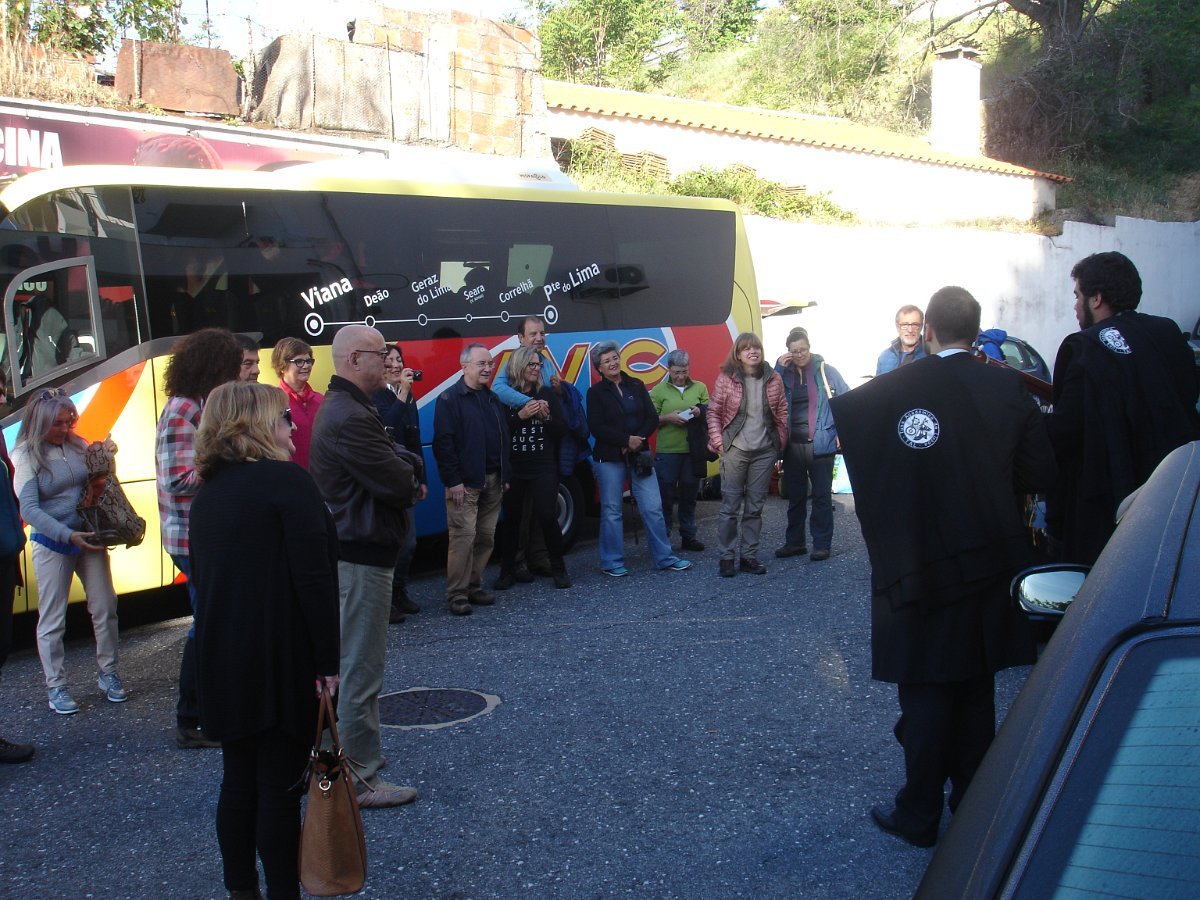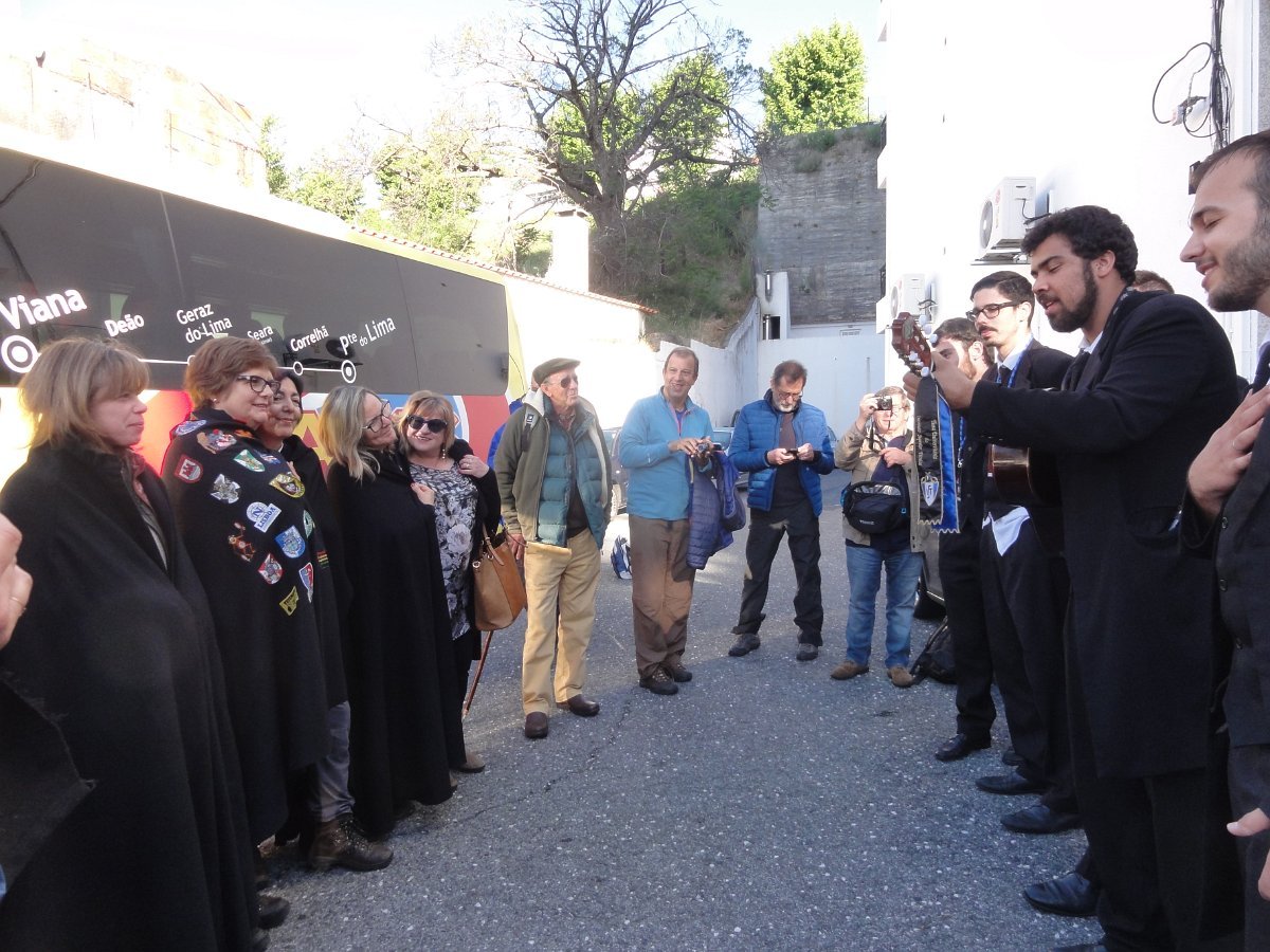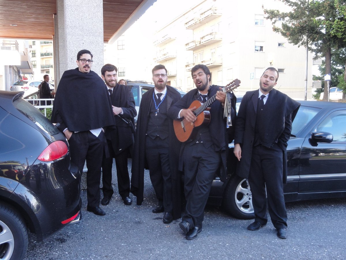 Enquanto se aguardava, foram de forma espontânea as Mães do nosso grupo em seu dia dedicado, presenteadas com uma inesperada serenata, com as capas negras colocadas em suas costas, ao som de uma bem afinada Tuna composta por membros de várias universidades de Lisboa.