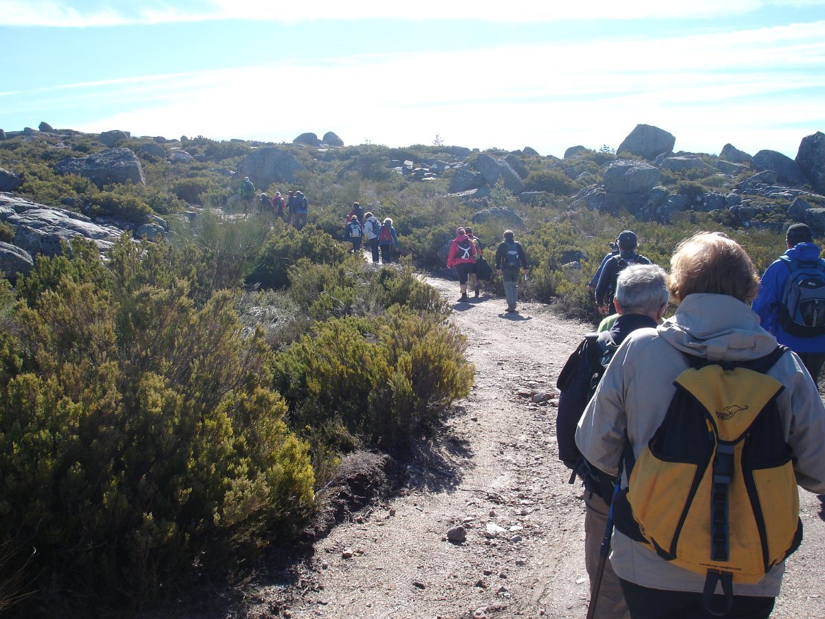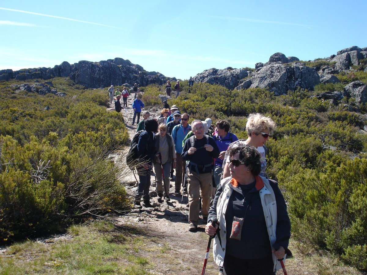 Feitas as mudanças higiénicas e arrumadas as mochilas, lá fomos estrada abaixo contemplando toda a beleza serrana, relembrando algumas das passagens do percurso que havia-mos realizado, até ao Sabugueiro, onde no restaurante “O Mirante da Estrela” fomos brindados com um bem servido Almoço Serrano composto por entradas de tábuas de queijo e enchidos, sopa à pastor, com os pratos de bacalhau com broa, arroz de carqueja com costeletinha, chanfana beirã (cabra), sobremesa com buffet variado de doces e fruta e em especial confeção “cheesecake de requeijão”, tudo isto bem regado com vinhos da região finalizando com café e variados digestivos. Grande mesa alegre e divertida, denunciando uma bela jornada passada na Serra da Estrela.