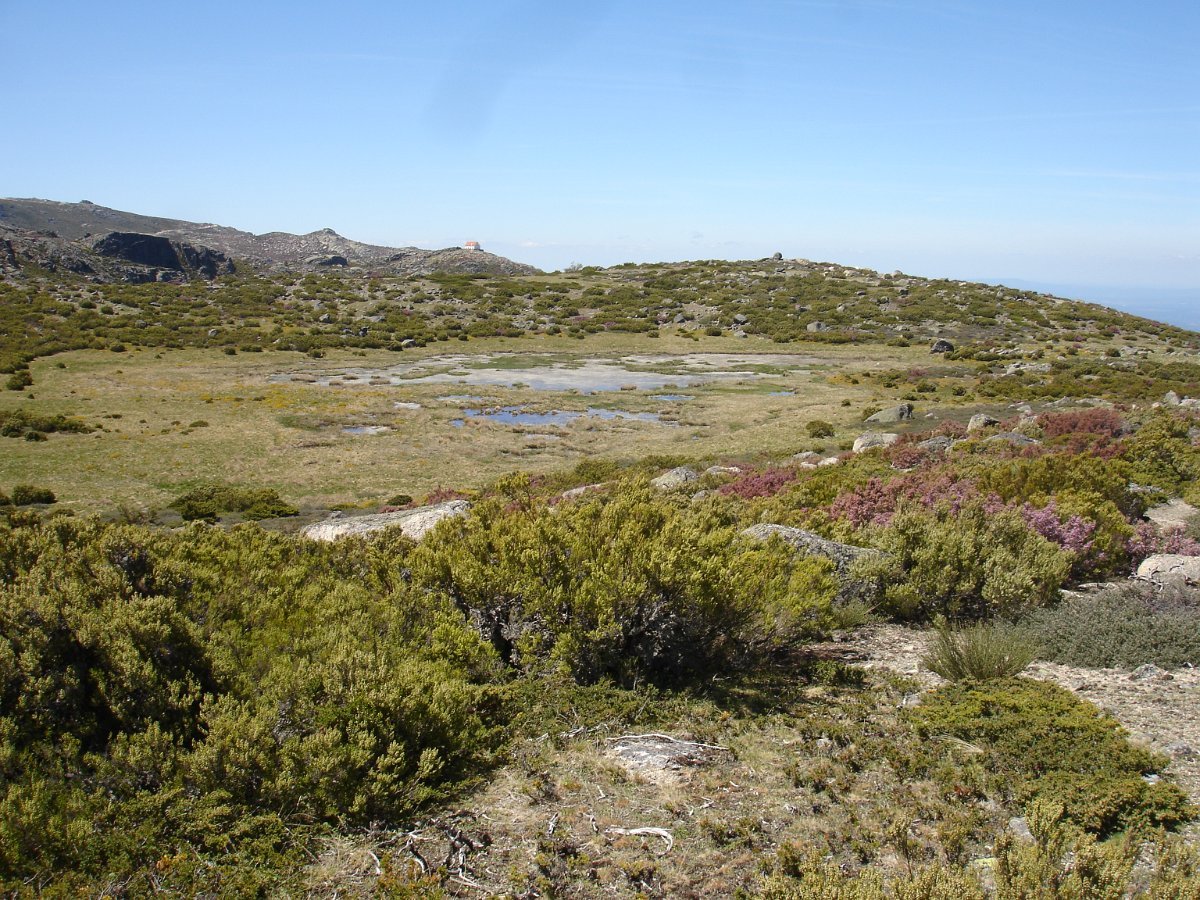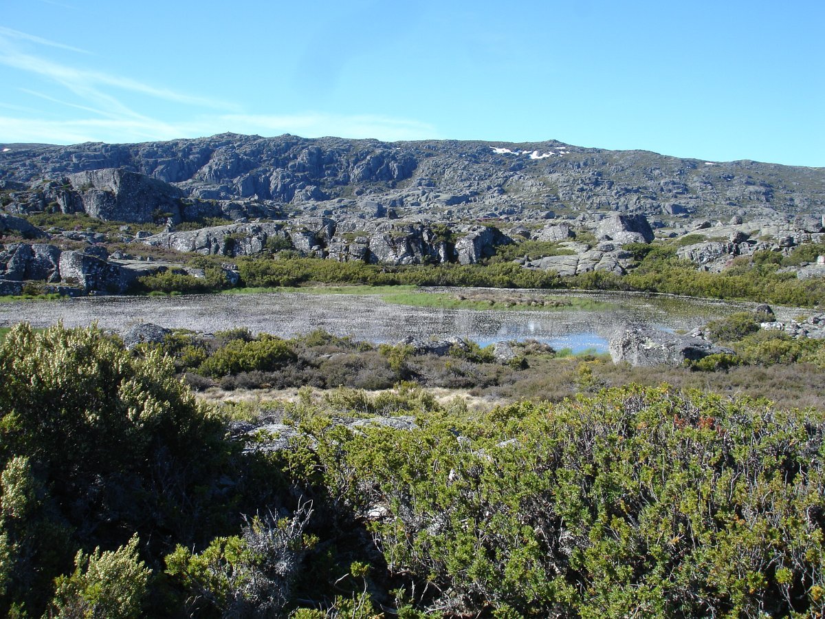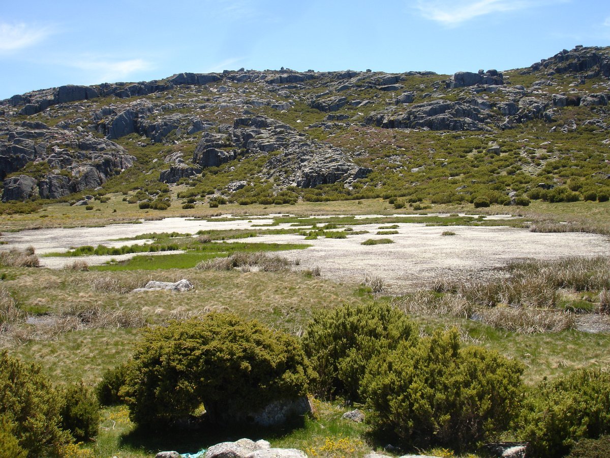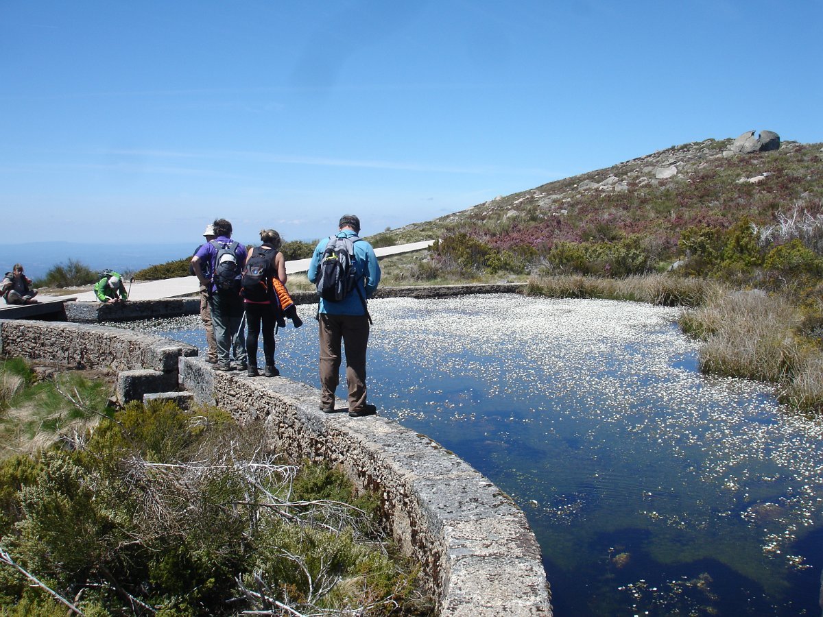 Passamos um pouco à frente por outra pequena lagoa, e continuamos subindo ligeiramente até atingirmos o local denominado por “Charcos” (1700m) pequeno planalto semeado de charcos (lagoas glaciárias) que na Primavera se cobrem de ramúsculos de flor branca, e no Verão servem de bebedouro aos gados transumantes. As águas paradas e as temperaturas baixas destes locais, permitem uma decomposição lenta e imperfeita de espécies de flora e fauna, que se vão depositando no fundo, em camadas de sedimentos que se sucedem no tempo. As lagoas vão desaparecendo e os cervunais(1) ocuparão o seu espaço.