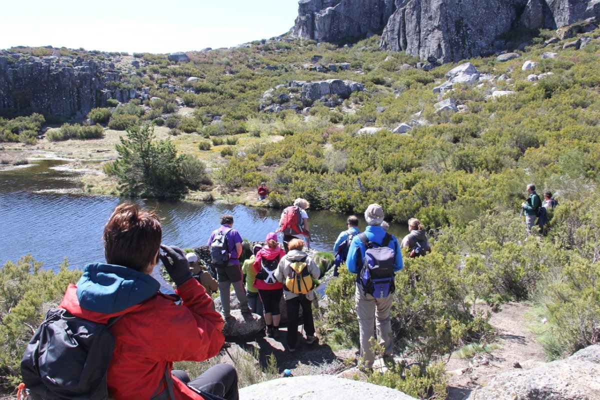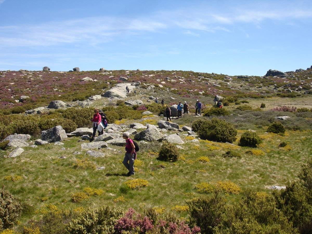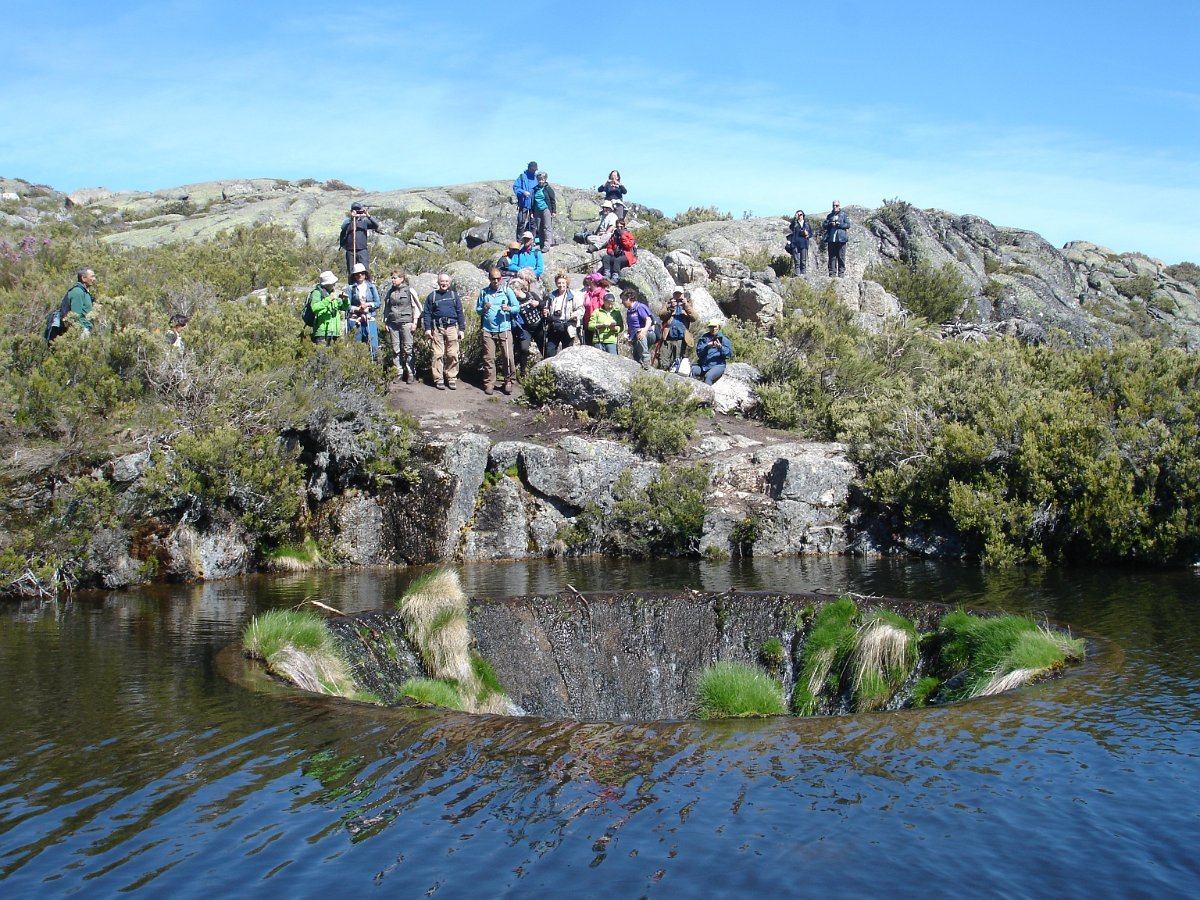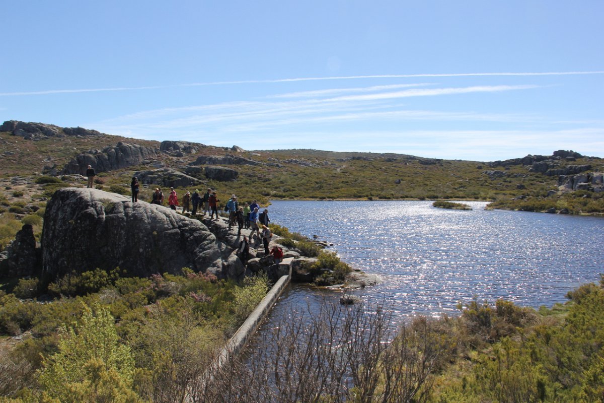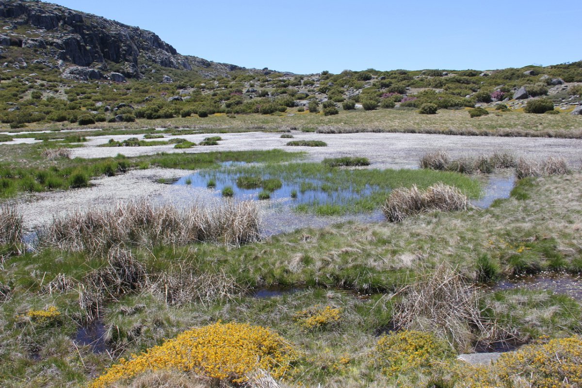 Passamos um pouco à frente por outra pequena lagoa, e continuamos subindo ligeiramente até atingirmos o local denominado por “Charcos” (1700m) pequeno planalto semeado de charcos (lagoas glaciárias) que na Primavera se cobrem de ramúsculos de flor branca, e no Verão servem de bebedouro aos gados transumantes. As águas paradas e as temperaturas baixas destes locais, permitem uma decomposição lenta e imperfeita de espécies de flora e fauna, que se vão depositando no fundo, em camadas de sedimentos que se sucedem no tempo. As lagoas vão desaparecendo e os cervunais(1) ocuparão o seu espaço.