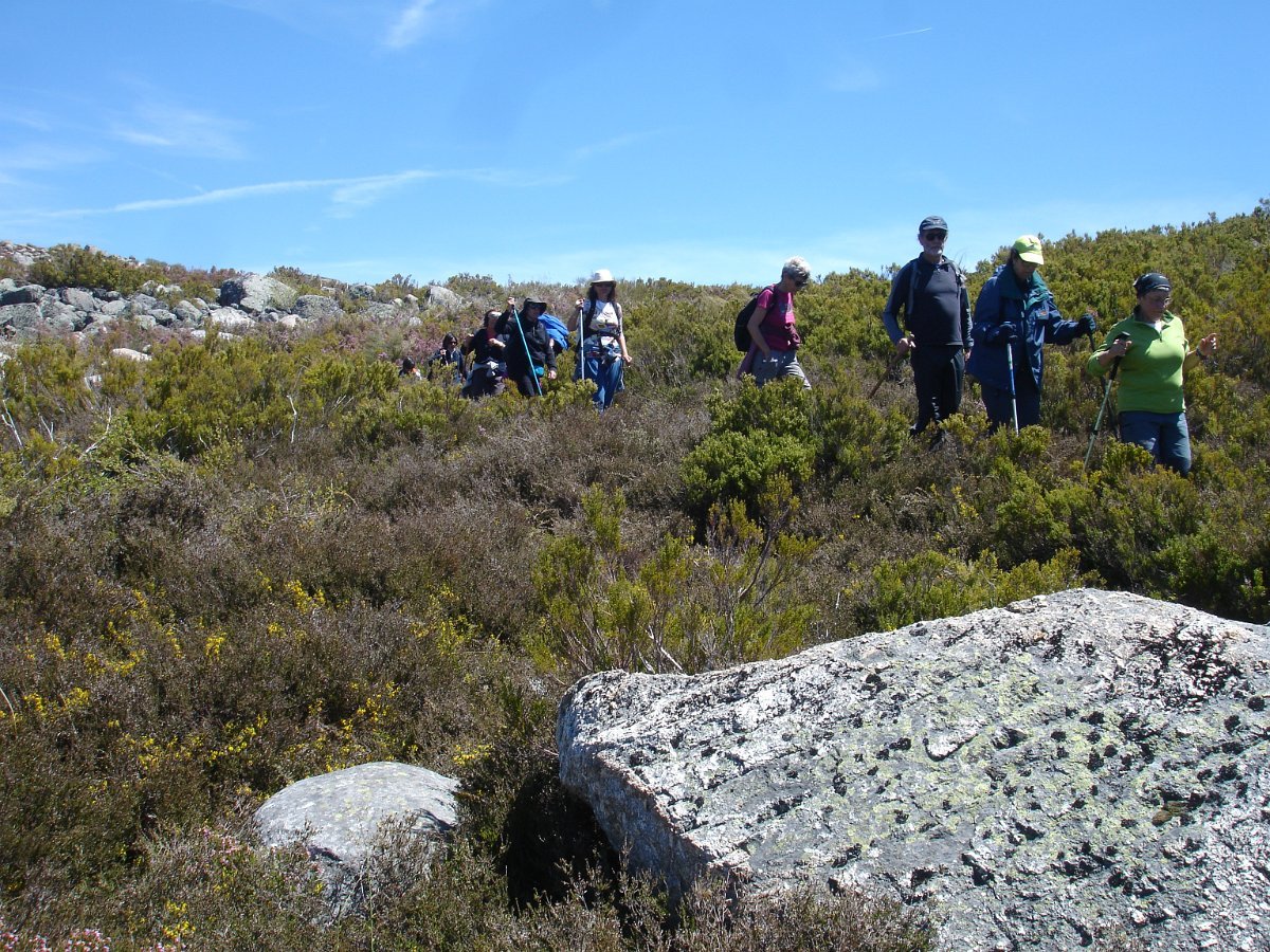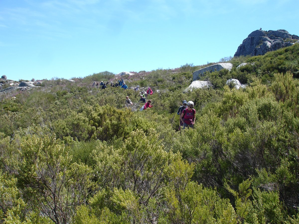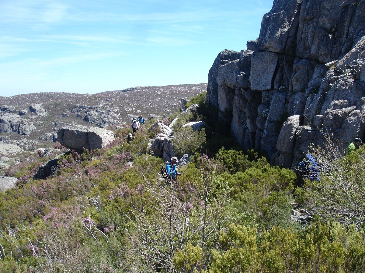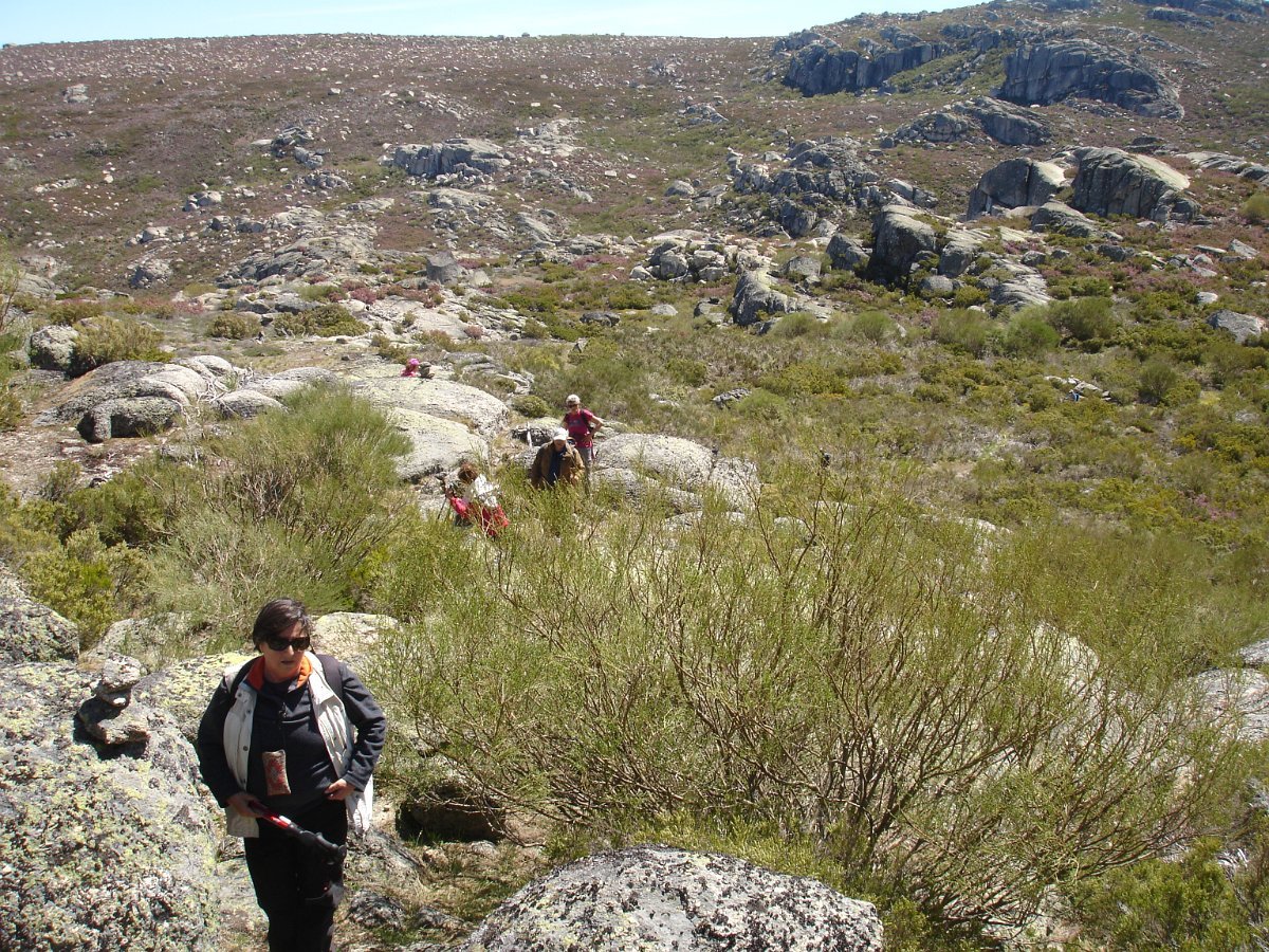 Tiradas as fotos da praxe, houve alguma dificuldade em apanhar o rumo em direção da próxima Lagoa. Foi muito a custo que foi feita a progressão por entre a alta e fechada vegetação, sem carreiro ou trilho definido, unicamente a vegetação ligeiramente partida e algumas dispersas mariolas nos indiciavam o caminho certo. Lá fomos progredindo lentamente na procura do caminho, por entre grandes blocos de granito pelo nosso lado esquerdo e pelo direito o Vale da Nave Descida e Lapinha que parecia para lá nos querer levar.