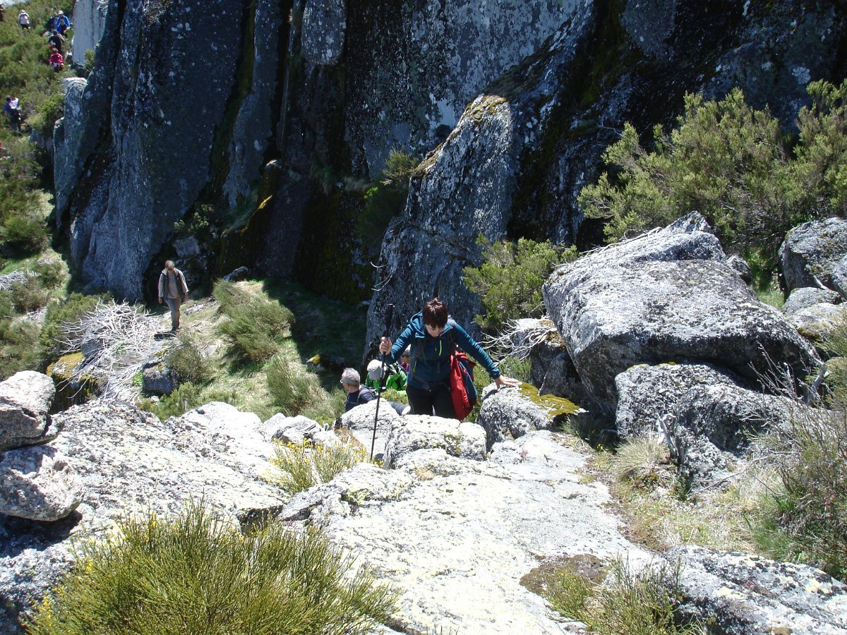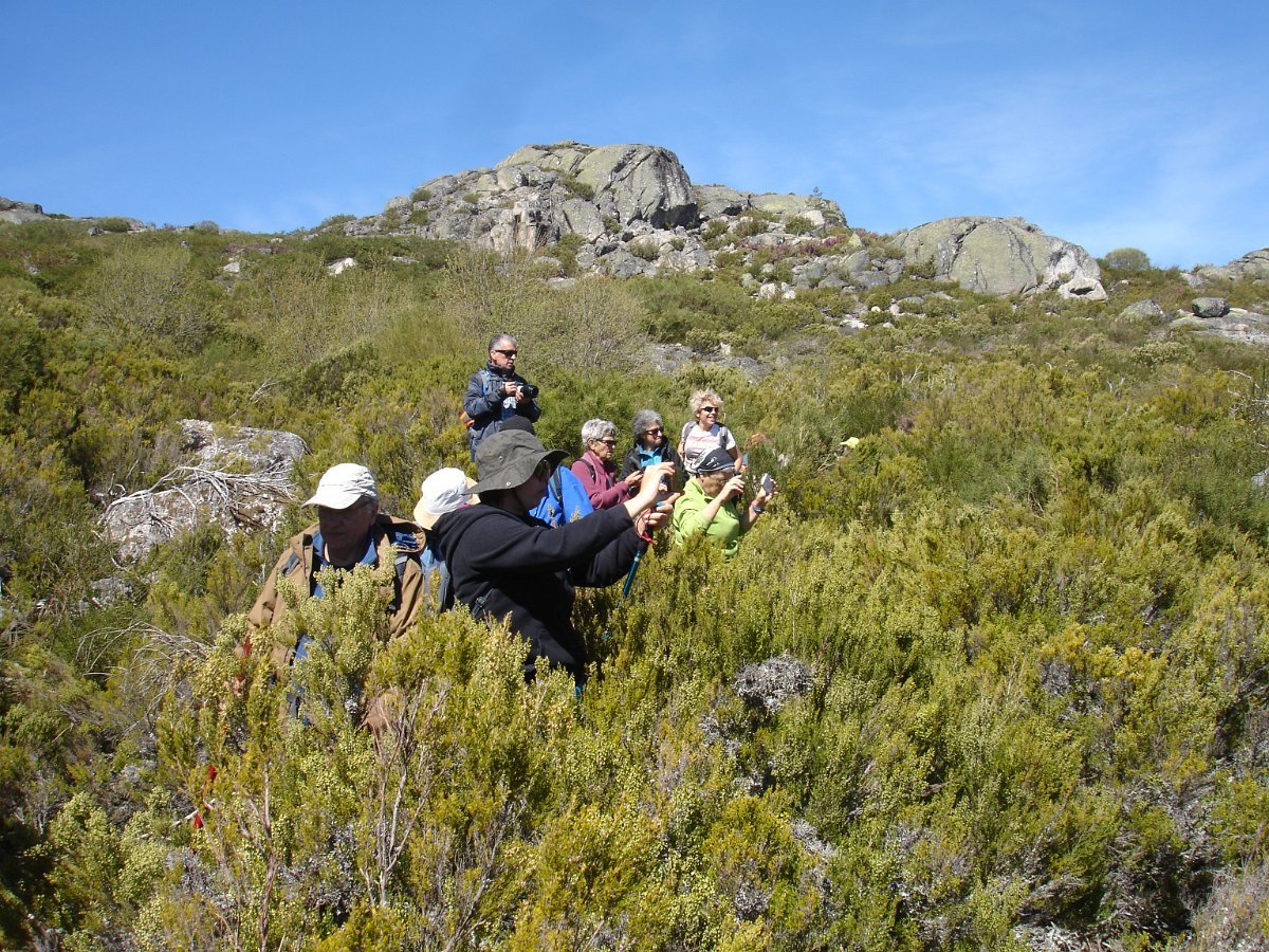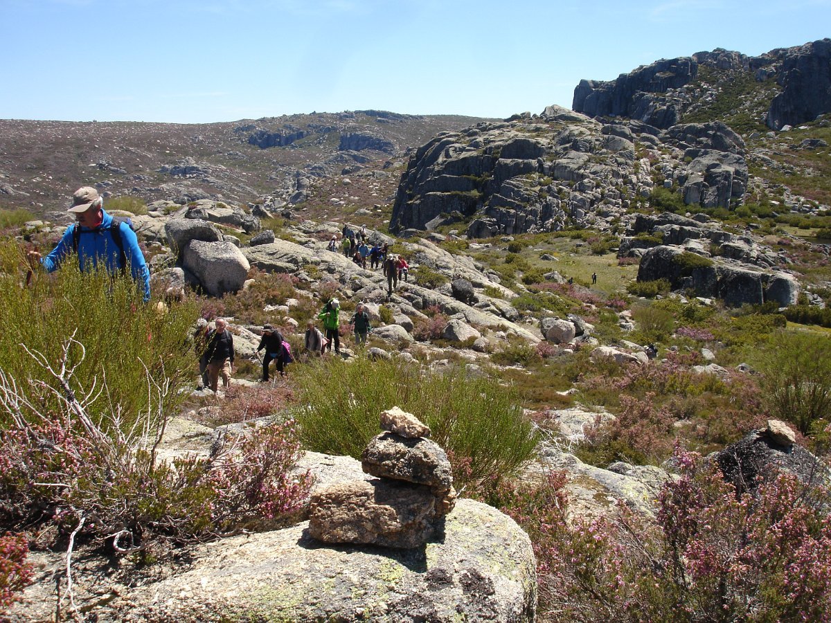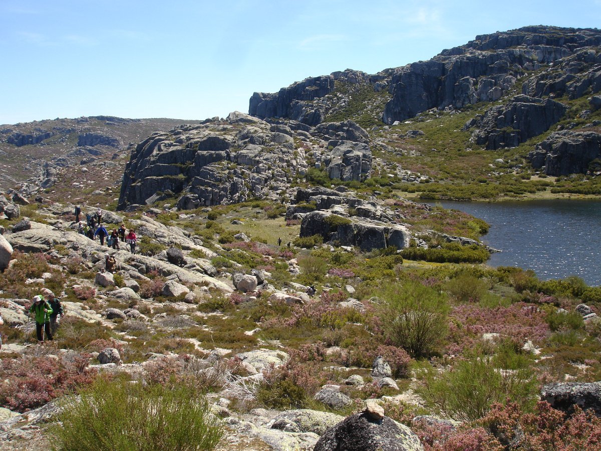 Tiradas as fotos da praxe, houve alguma dificuldade em apanhar o rumo em direção da próxima Lagoa. Foi muito a custo que foi feita a progressão por entre a alta e fechada vegetação, sem carreiro ou trilho definido, unicamente a vegetação ligeiramente partida e algumas dispersas mariolas nos indiciavam o caminho certo. Lá fomos progredindo lentamente na procura do caminho, por entre grandes blocos de granito pelo nosso lado esquerdo e pelo direito o Vale da Nave Descida e Lapinha que parecia para lá nos querer levar.