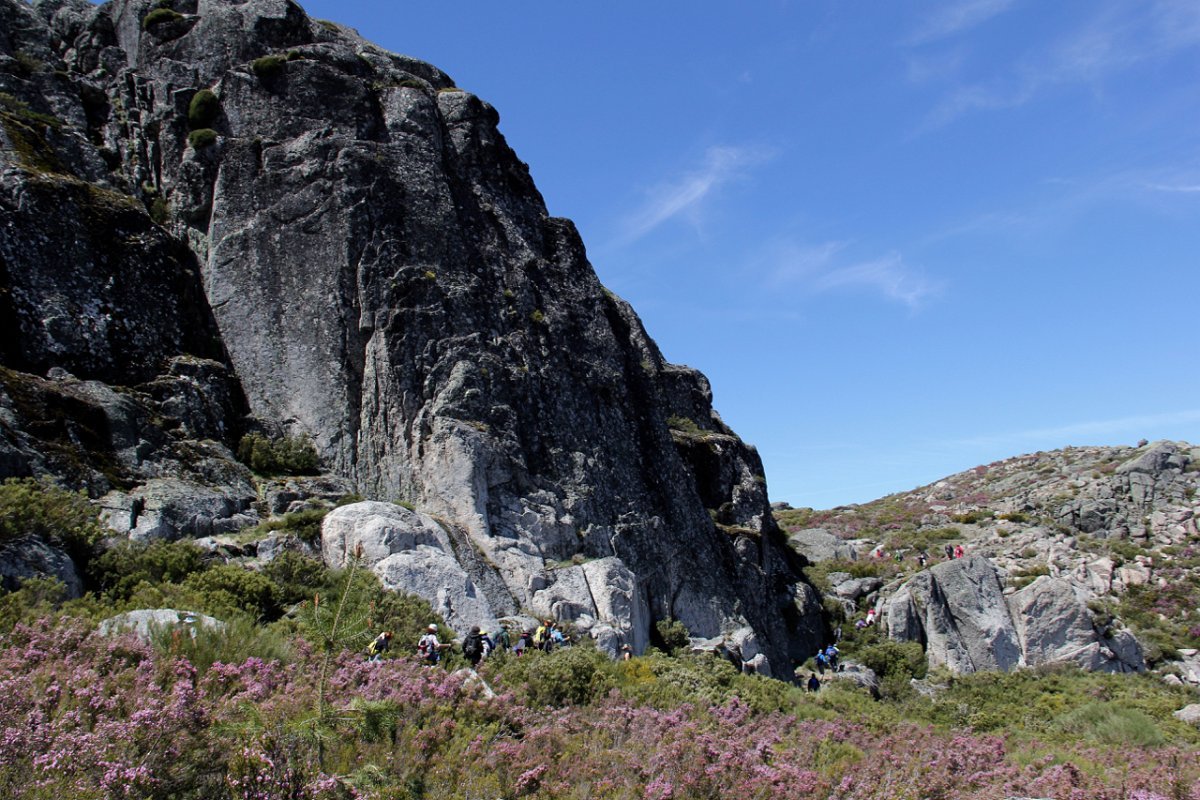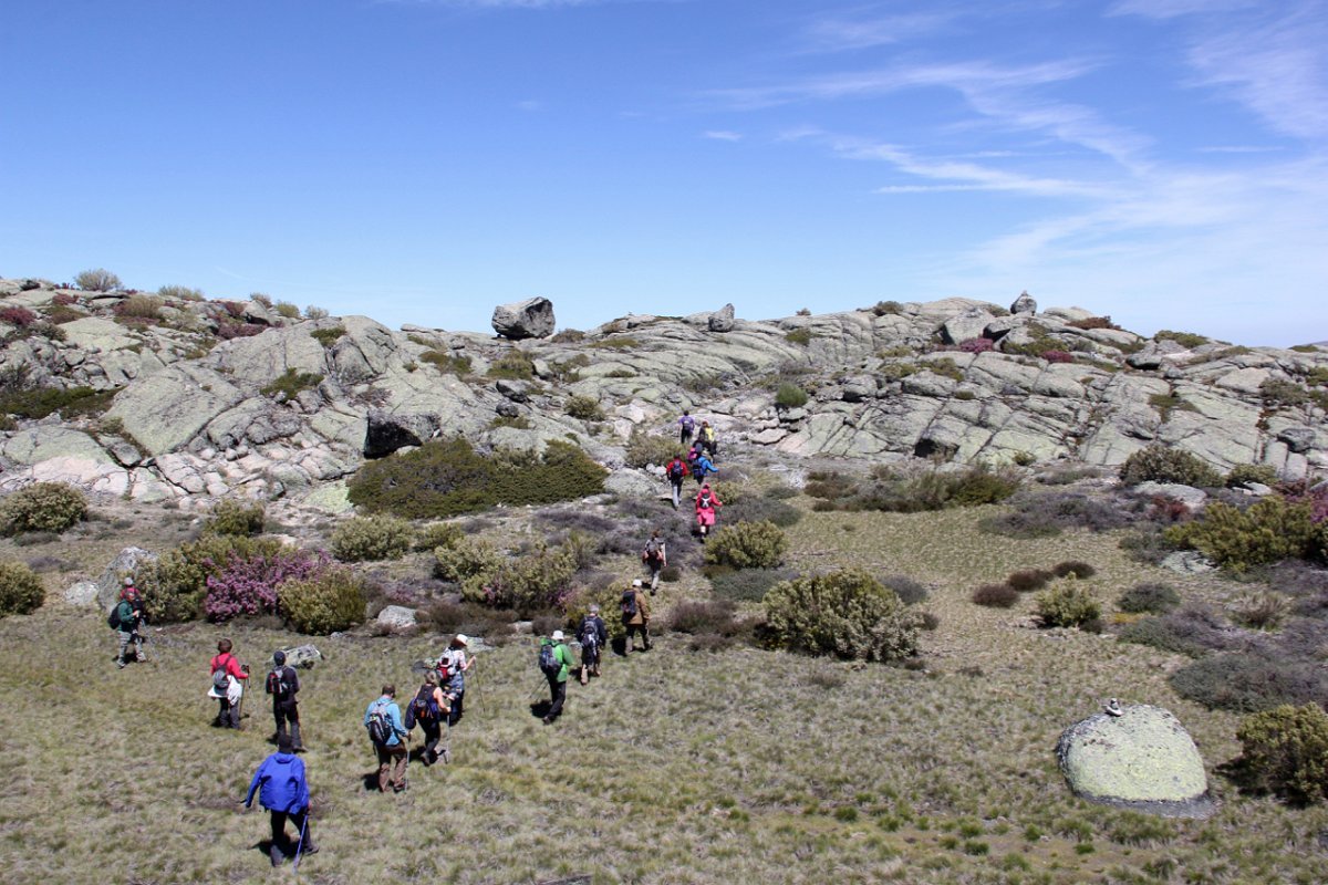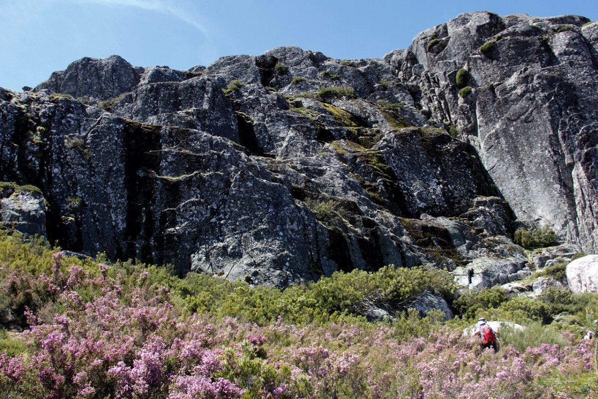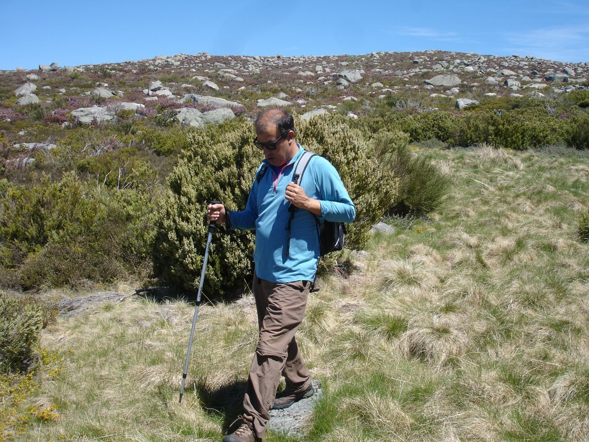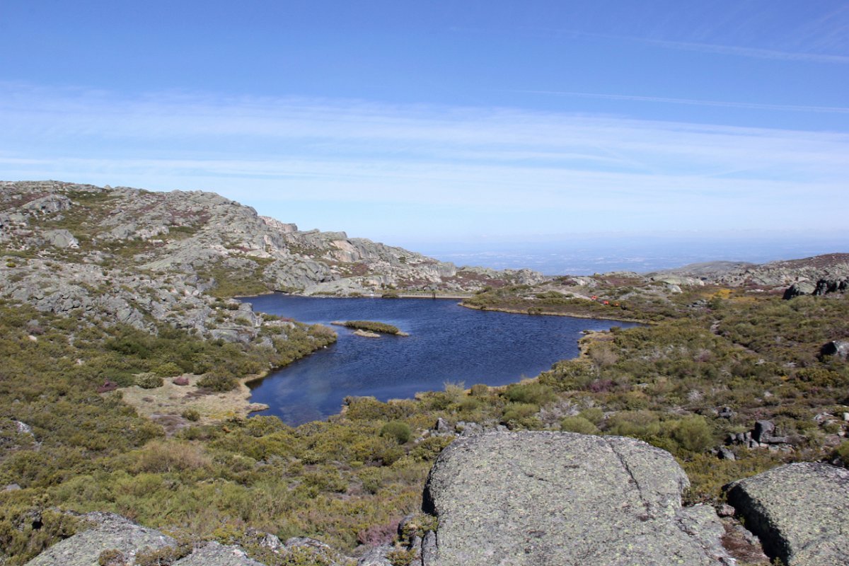 Tiradas as fotos da praxe, houve alguma dificuldade em apanhar o rumo em direção da próxima Lagoa. Foi muito a custo que foi feita a progressão por entre a alta e fechada vegetação, sem carreiro ou trilho definido, unicamente a vegetação ligeiramente partida e algumas dispersas mariolas nos indiciavam o caminho certo. Lá fomos progredindo lentamente na procura do caminho, por entre grandes blocos de granito pelo nosso lado esquerdo e pelo direito o Vale da Nave Descida e Lapinha que parecia para lá nos querer levar.