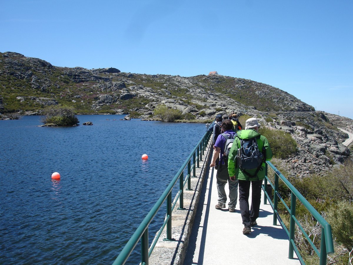 Seguimos assim por cima do cano de água passando pela 6ª e última lagoa a “Lagoa do Covão do Forno” (1580m) mais uma das que fazem parte do sistema hidroelétrico da Serra. Daqui até ao final ainda houve que caminhar cerca de 750m. sobre o cano.