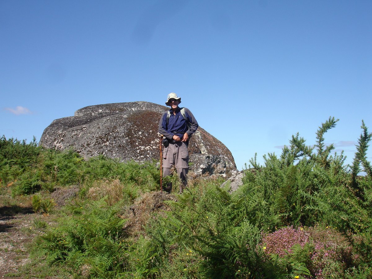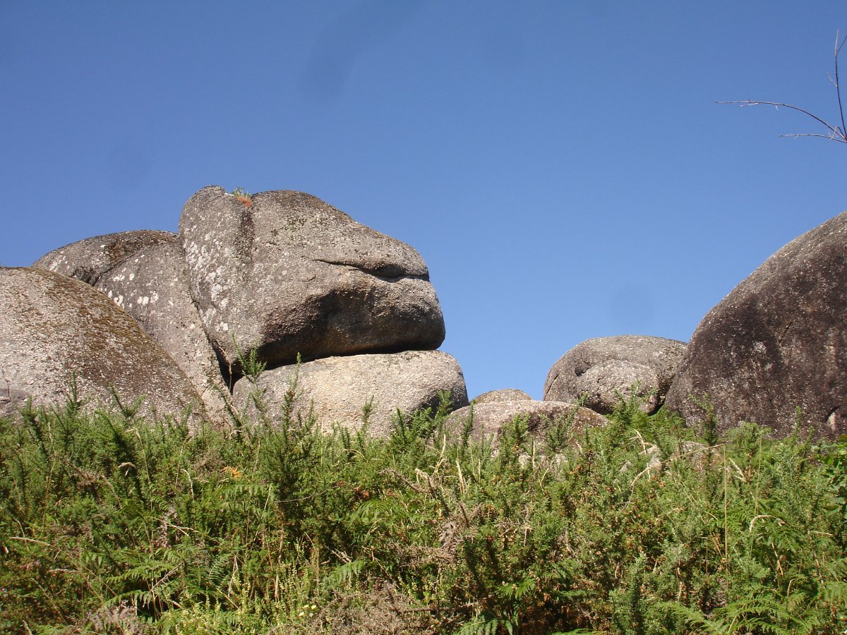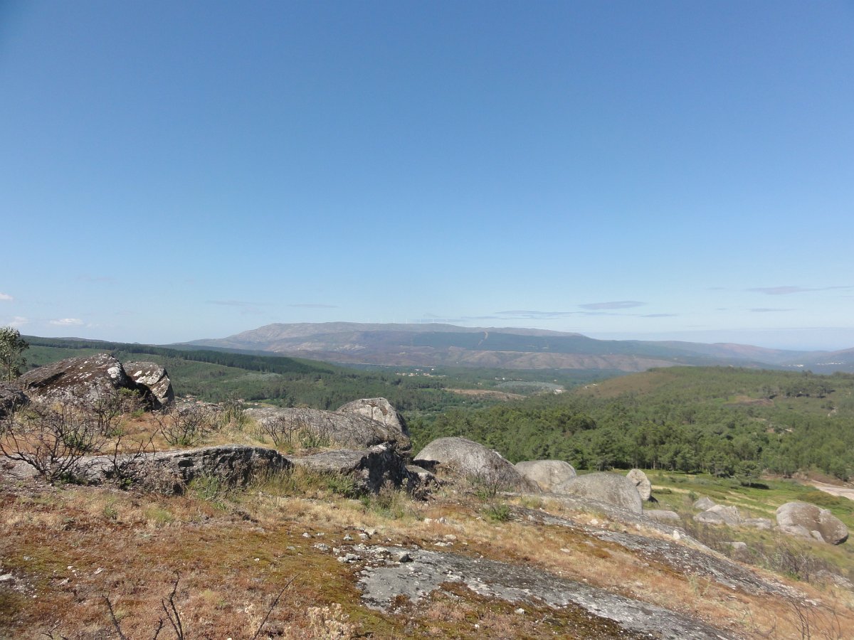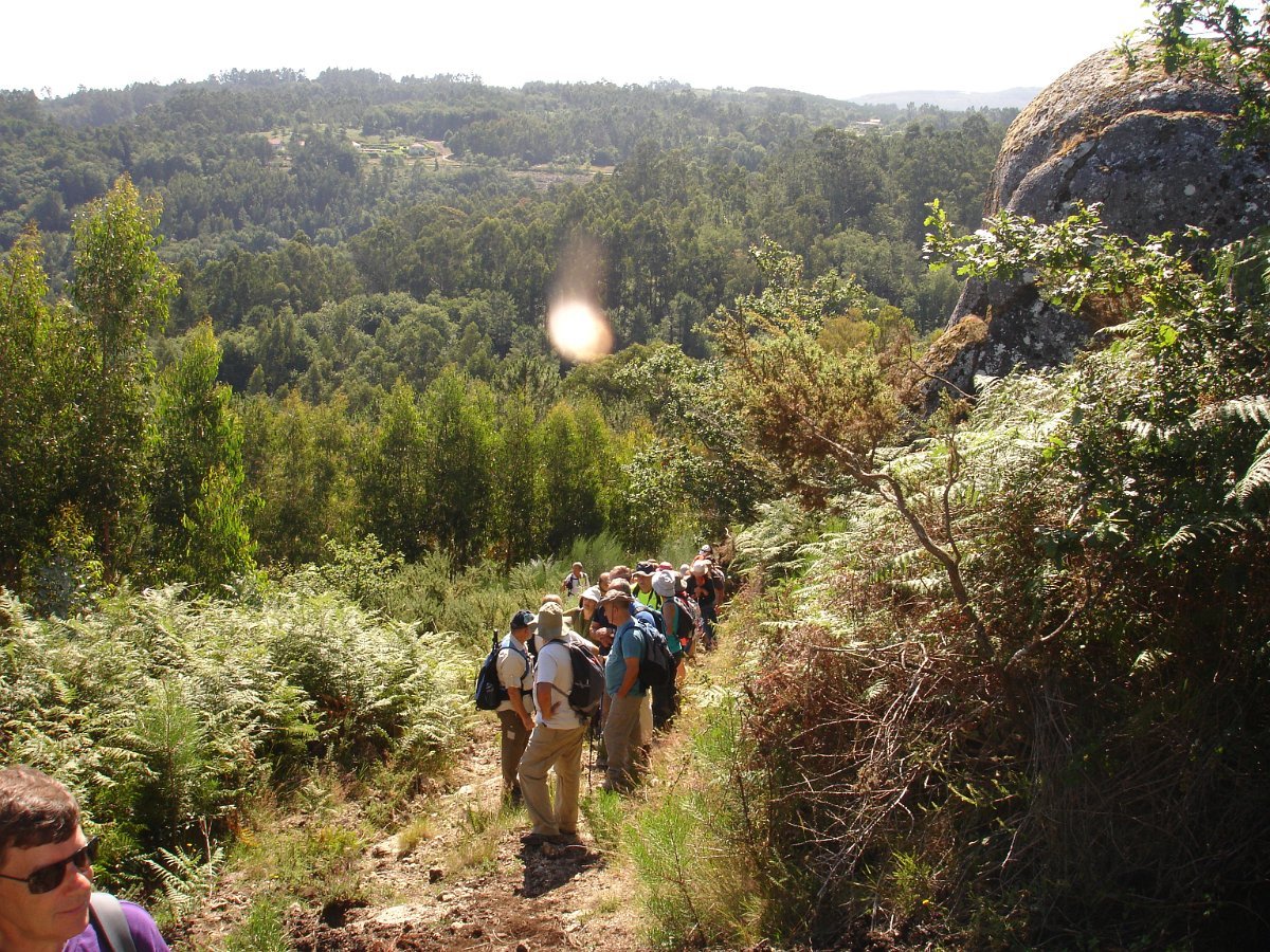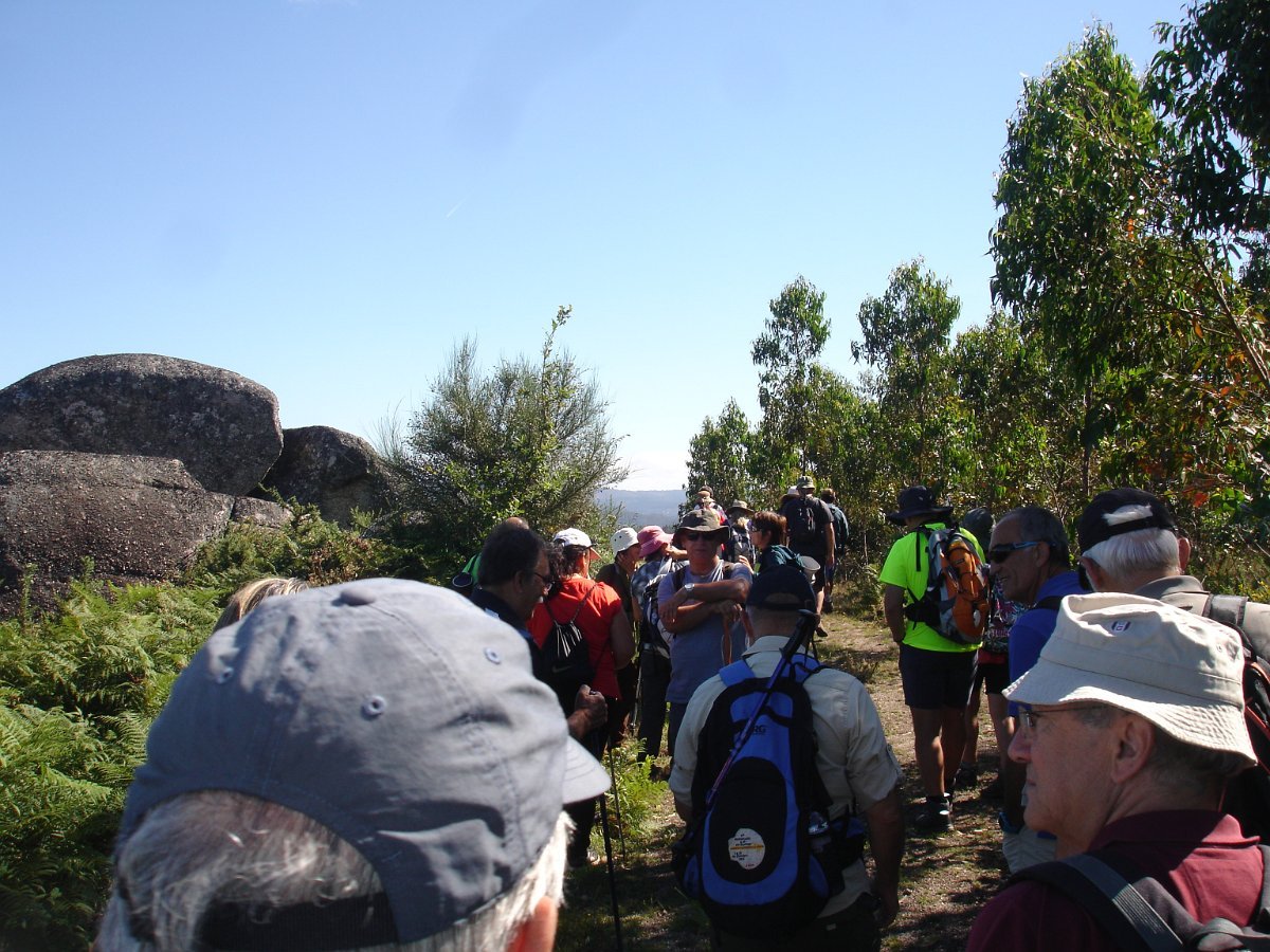 Depois de atravessarmos o asfalto, iniciamos a subida para o cabeço de Montuzelo, á procura do Penedo do Macaco, que dá o nome a este trilho. A subida não foi longa, havendo oportunidade para se poder observar a paisagem agrícola e ao longe a encosta menos protegida da serra D’Arga, o alto de Santo Antão já em Caminha e Santa Tecla já em La Guardia.