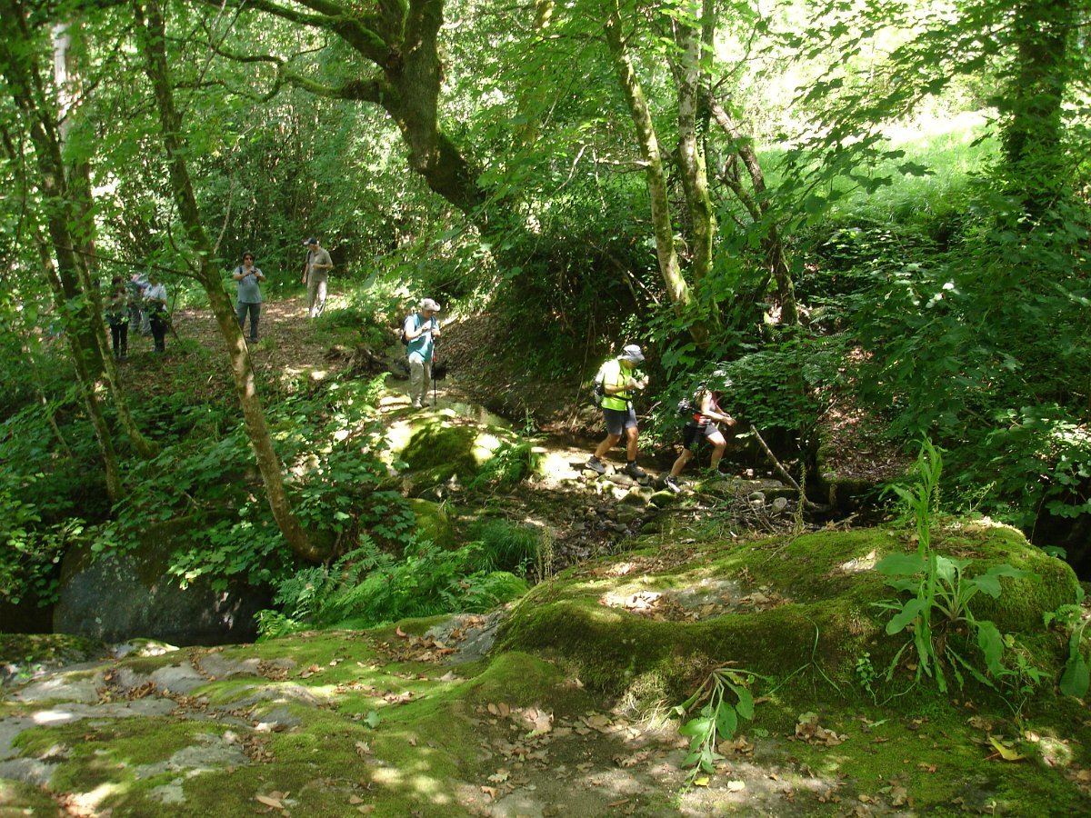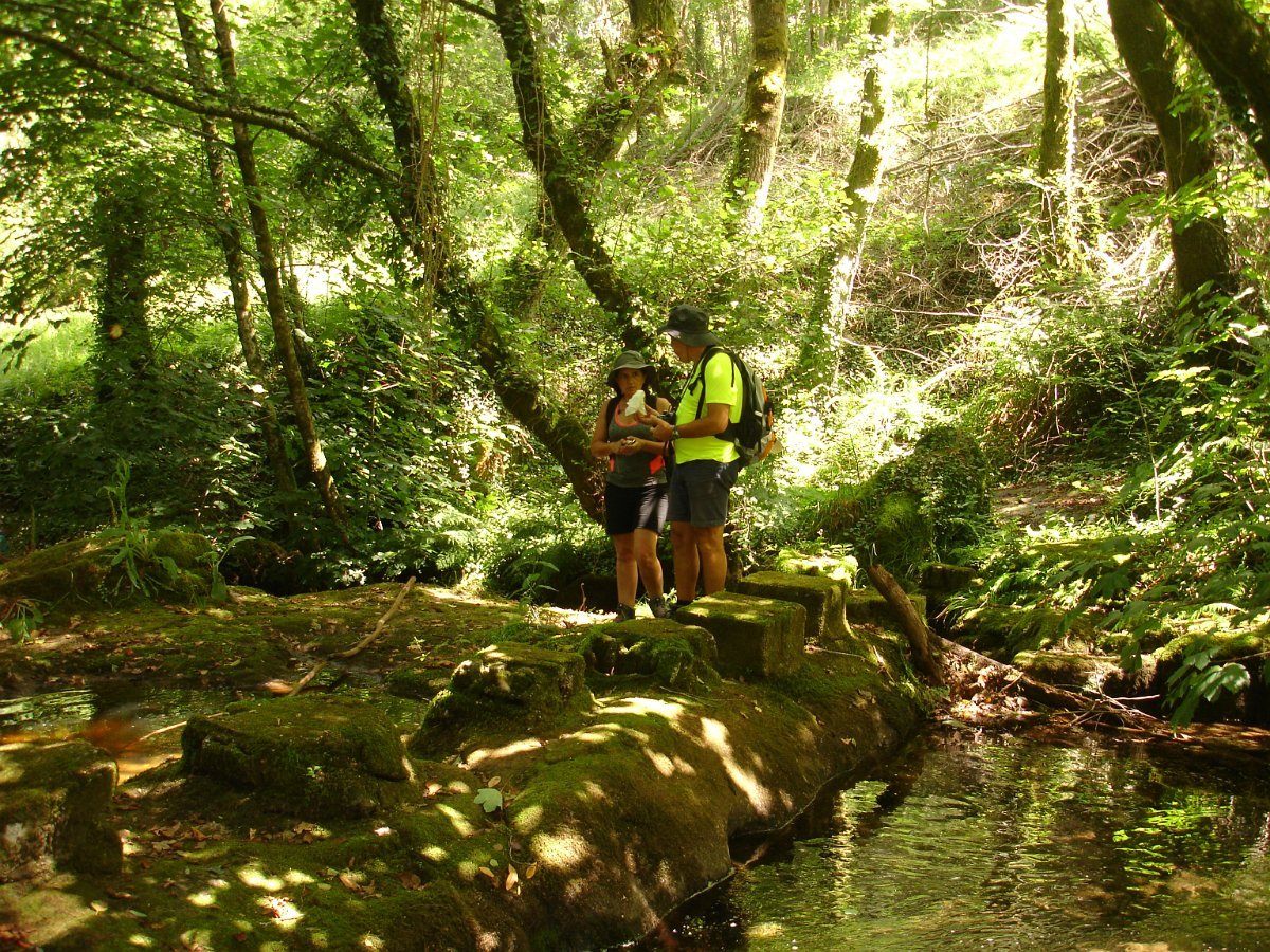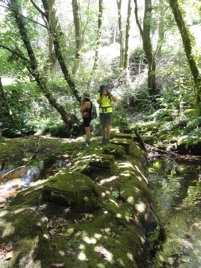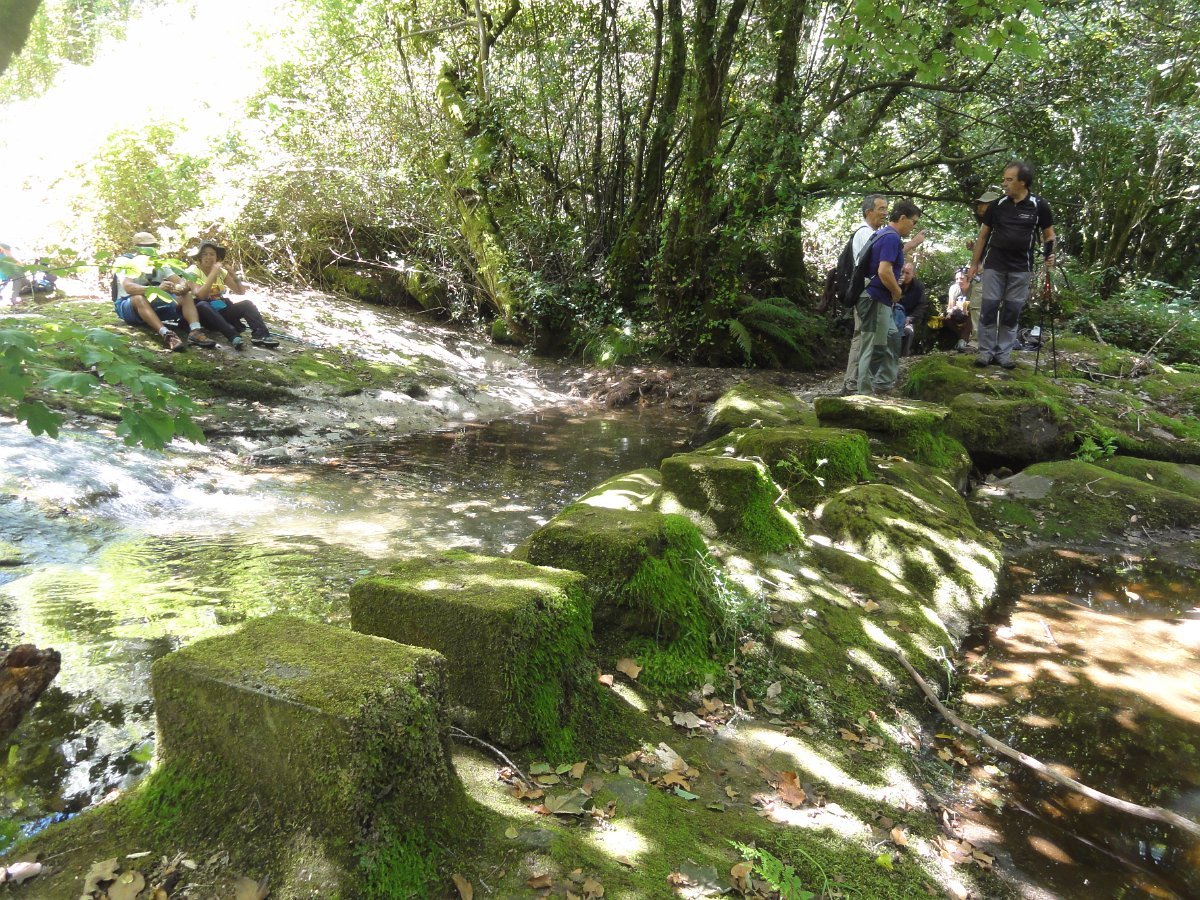 Atingida a ponte do Pinheiro, iniciamos uma curta subida, abandonando aquele caminho caminhando por uma levada, que nos fez passar por dois velhos moinhos. Mais adiante apanhamos o trilho do PR14 caminhando durante algum tempo através do mesmo. Evitamos a estrada alcatroada, abandonando o PR, e passamos na Ponte da Rabuda onde junto pudemos visitar um velho engenho de serrar e moinho. Uma pequena cancela facilitou o acesso. Continuamos por caminhos rurais, para as poldras das Lages Altas, atravessando um bosque magnífico, com freixos e aveleiras, entre carvalhos, azevinhos, loureiros e castanheiros.
