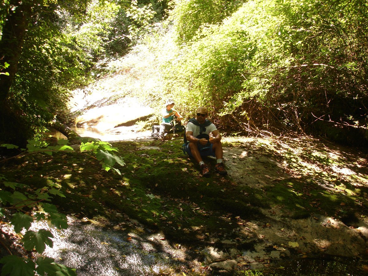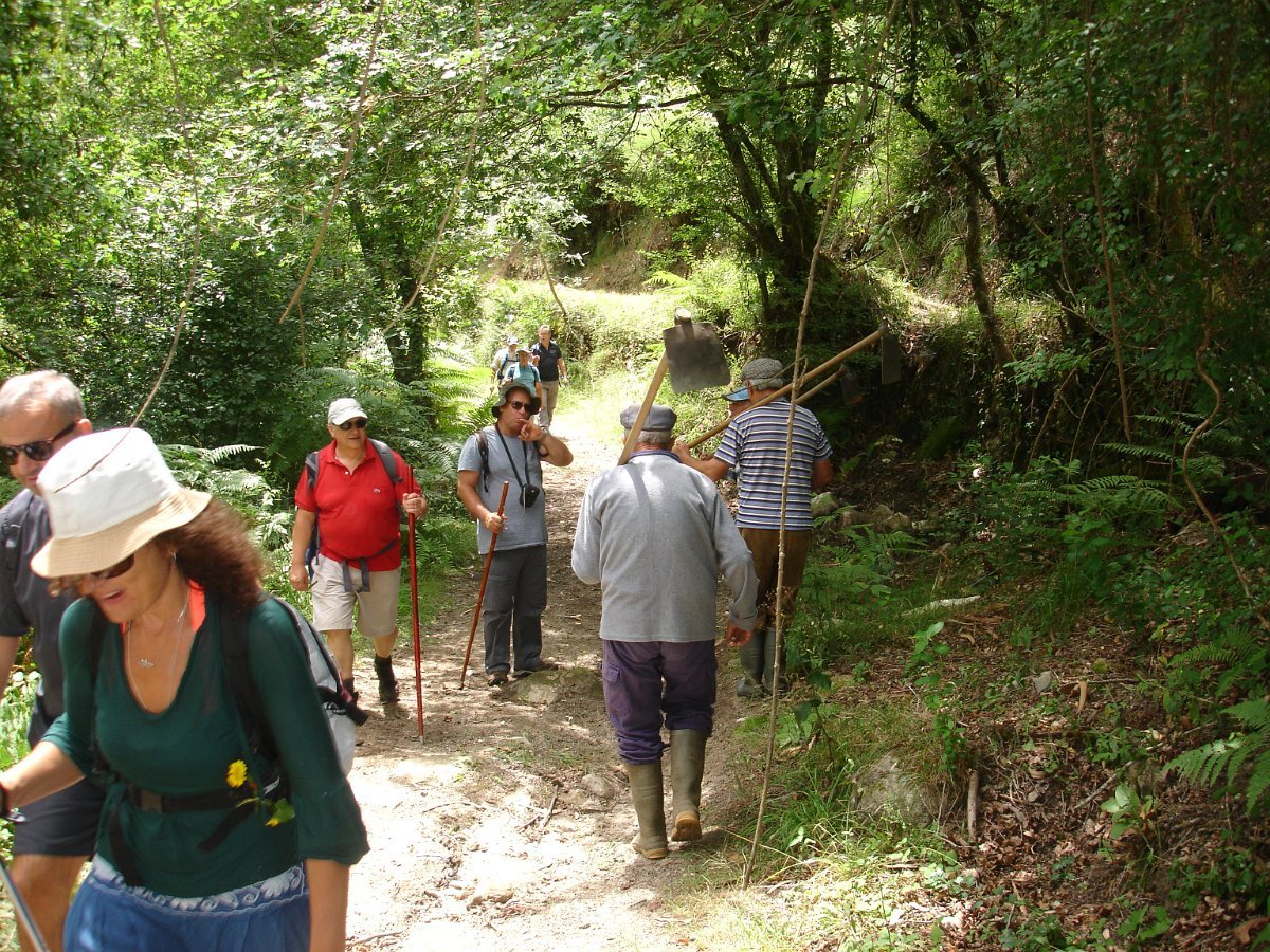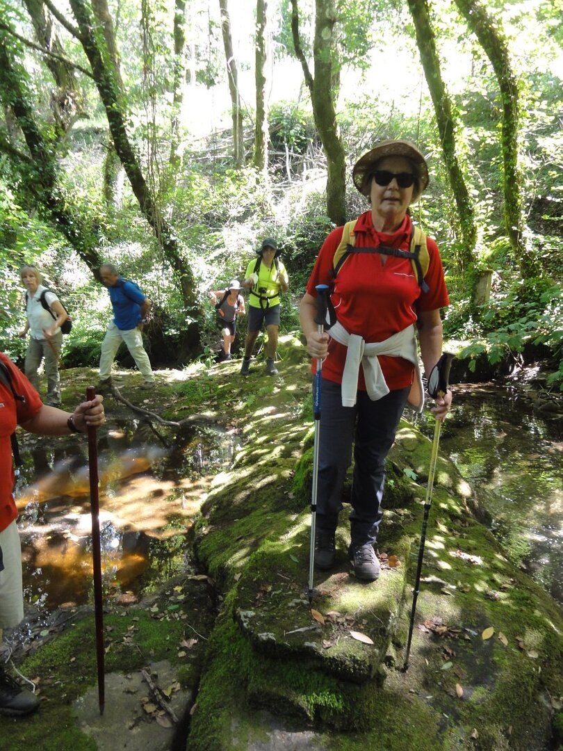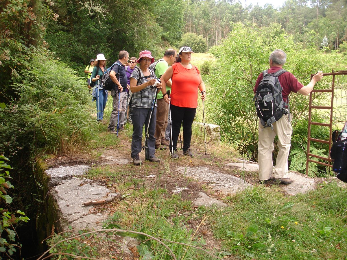 Atingida a ponte do Pinheiro, iniciamos uma curta subida, abandonando aquele caminho caminhando por uma levada, que nos fez passar por dois velhos moinhos. Mais adiante apanhamos o trilho do PR14 caminhando durante algum tempo através do mesmo. Evitamos a estrada alcatroada, abandonando o PR, e passamos na Ponte da Rabuda onde junto pudemos visitar um velho engenho de serrar e moinho. Uma pequena cancela facilitou o acesso. Continuamos por caminhos rurais, para as poldras das Lages Altas, atravessando um bosque magnífico, com freixos e aveleiras, entre carvalhos, azevinhos, loureiros e castanheiros.