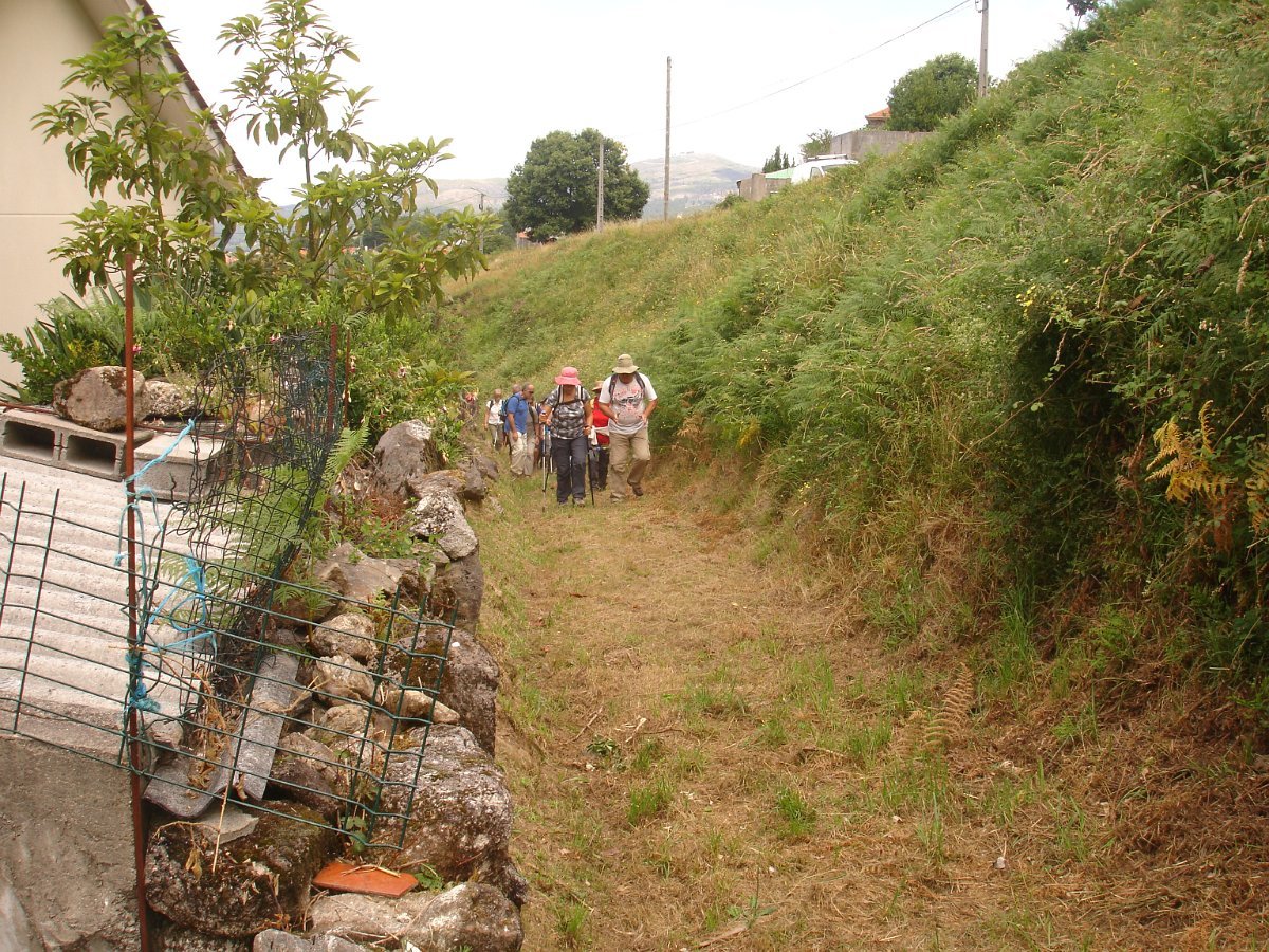 Já no alto bem tentamos desvendar o dito macaco, mas o mesmo não se mostrou. Continuamos pelo cimo fazendo um desvio na direção de Roriz, descendo a encosta por um caminho em muito mau estado pela erosão, o que obrigou a grandes cautelas. Depois de contornarmos as primeiras casas, continuamos por um caminho rural, onde nos apareceu a primeira levada.