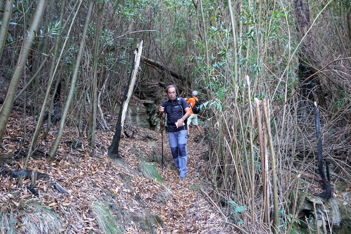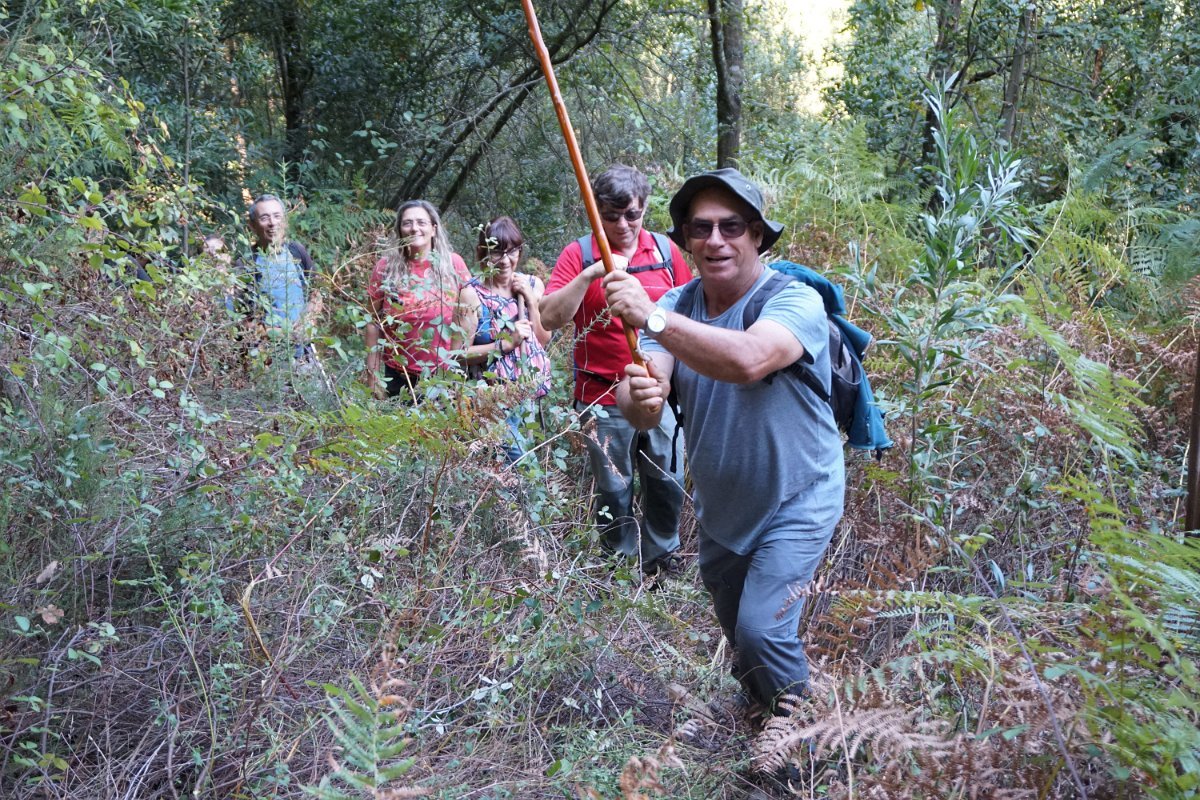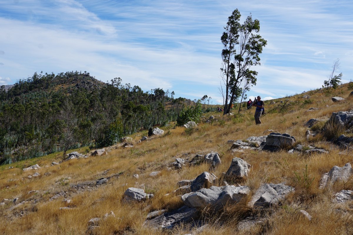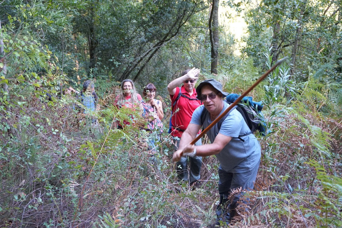 Aqui e ali viam-se sinais dos limites de terreno de antigos campos de cultivo, agora sem qualquer acesso e transformados num emaranhado de silvas, videiras selvagens, mato e eucaliptos, que nos fez caminhar passo a passo atrás dos valentes batedores, que ”à paulada” abriram caminho.