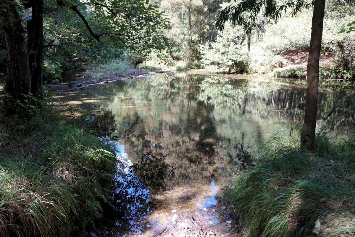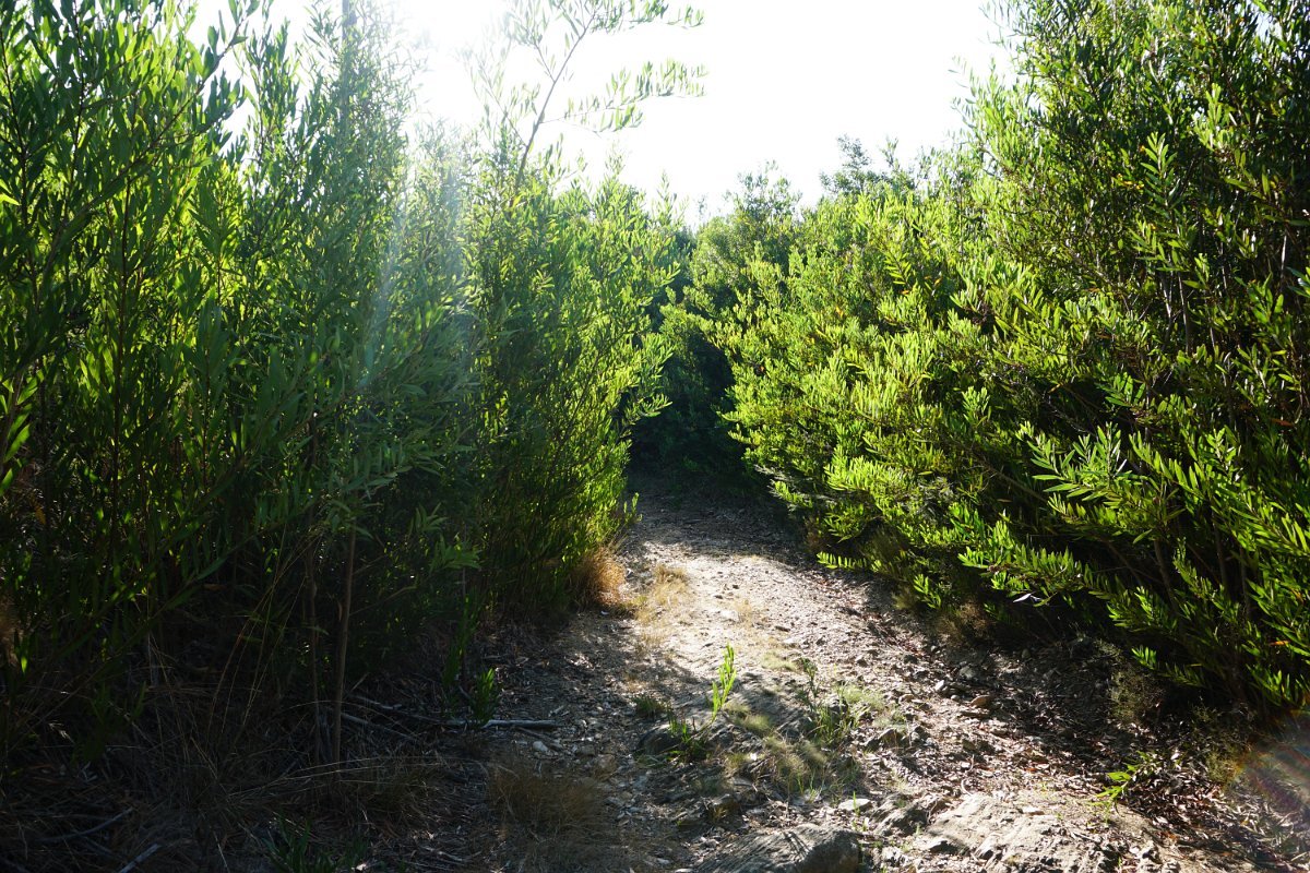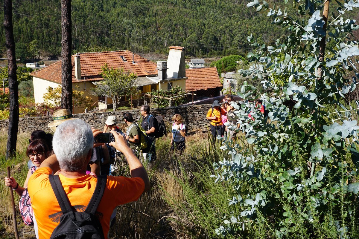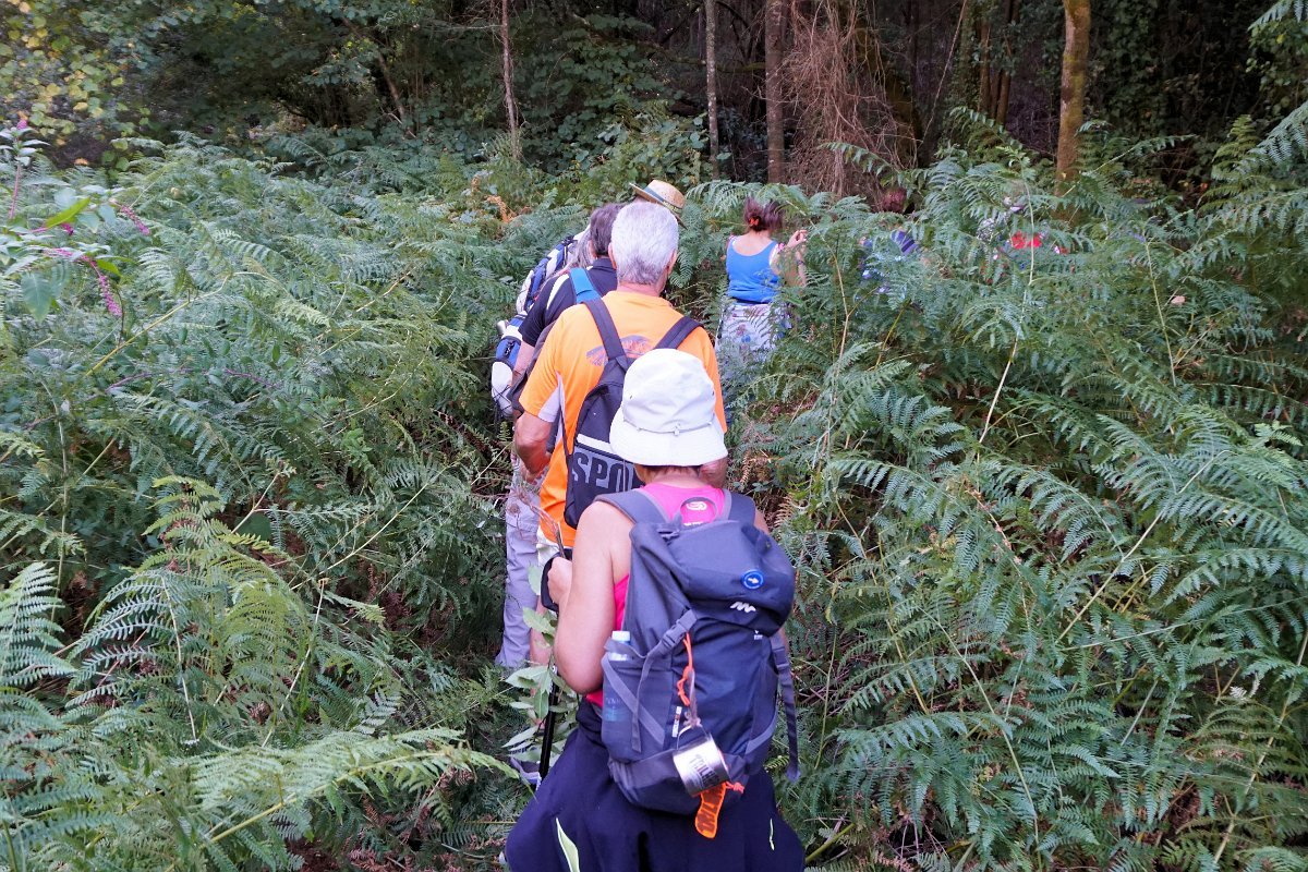 Aqui e ali viam-se sinais dos limites de terreno de antigos campos de cultivo, agora sem qualquer acesso e transformados num emaranhado de silvas, videiras selvagens, mato e eucaliptos, que nos fez caminhar passo a passo atrás dos valentes batedores, que ”à paulada” abriram caminho.
