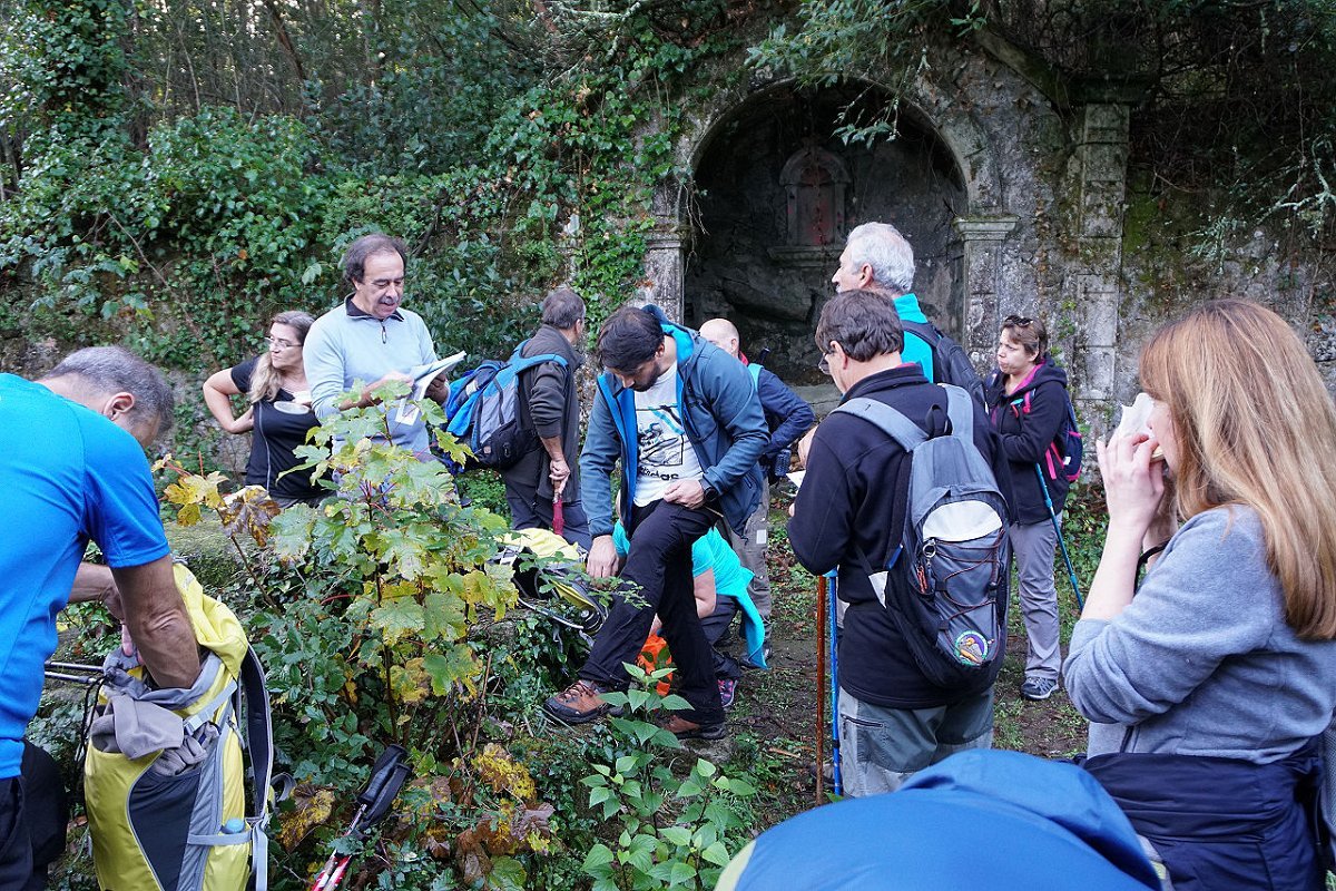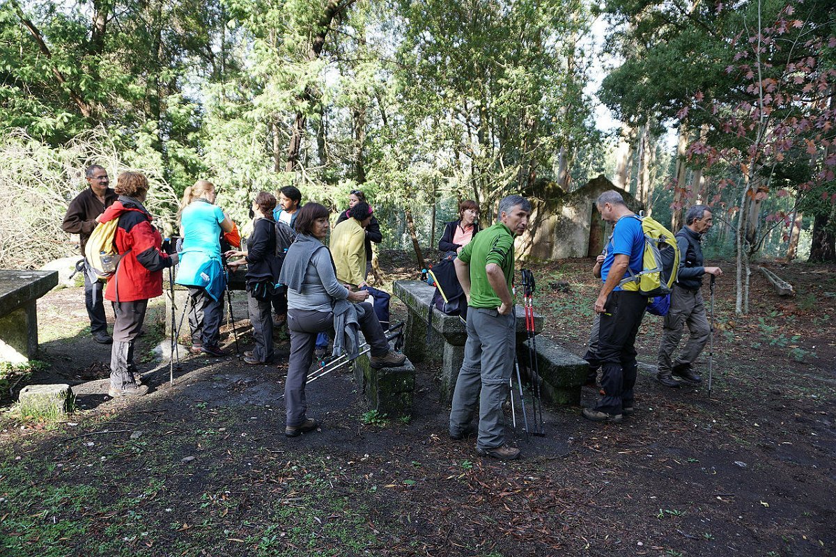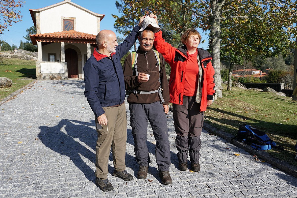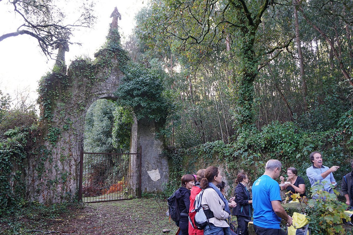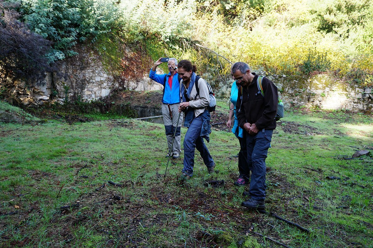 Tomamos o caminho da Aldeia Velha e fomos ao encontro das ruínas da antiga capela, hoje meio escondida na densa vegetação, tendo posteriormente regressado ao largo da capela de S. Mamede, utilizando o parque de merendas para a merecida pausa de almoço.