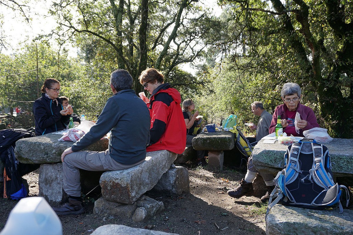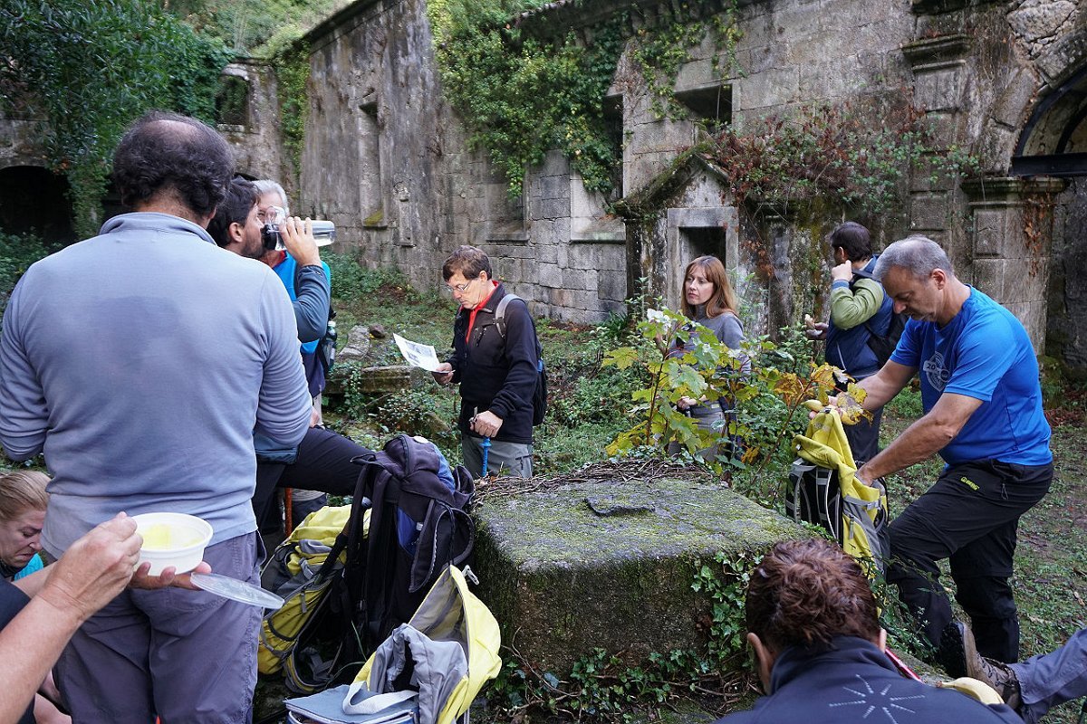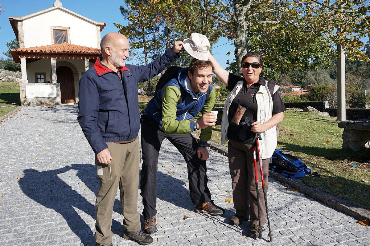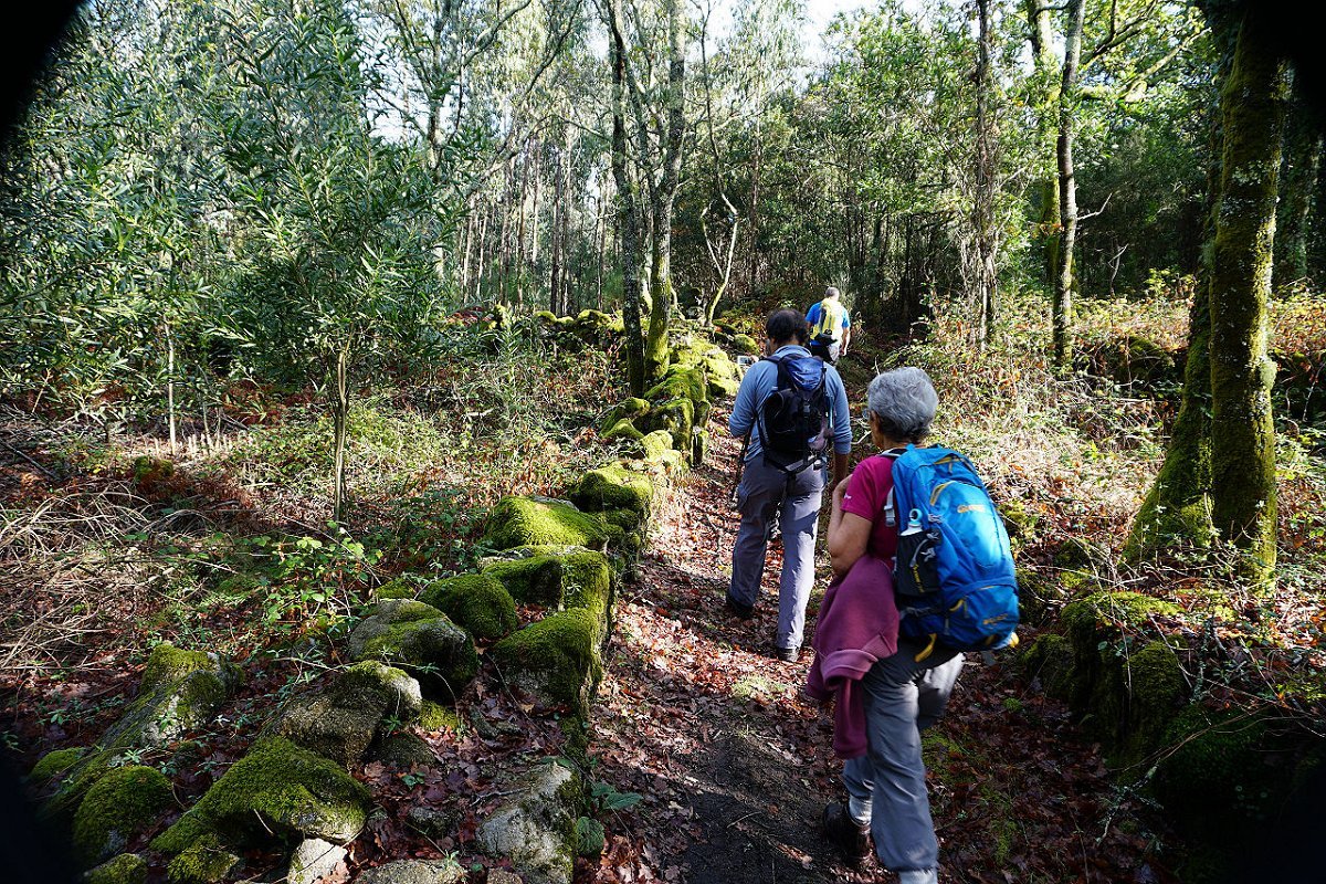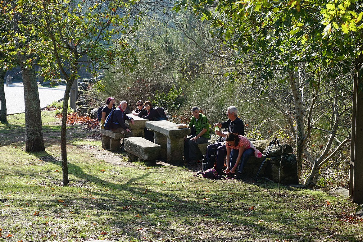 Tomamos o caminho da Aldeia Velha e fomos ao encontro das ruínas da antiga capela, hoje meio escondida na densa vegetação, tendo posteriormente regressado ao largo da capela de S. Mamede, utilizando o parque de merendas para a merecida pausa de almoço.