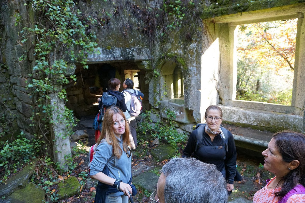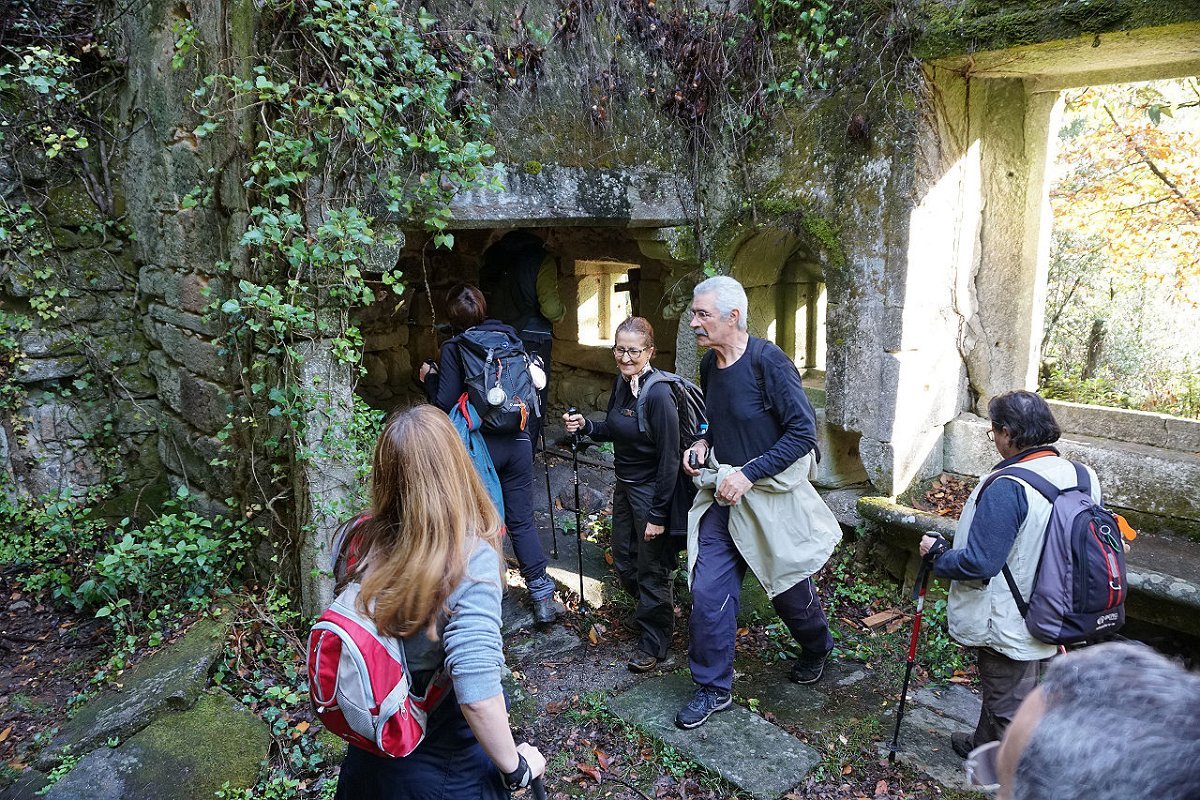 Daí, seguimos pela lateral do depósito de água e tomamos a íngreme quelha da Catalôa até ao lugar da Abelheira que deve o seu nome ao elevado número de colmeias existentes, que produzem o delicioso mel de pinho, muito apreciado localmente. Seguiu-se a descida para o convento de S. Francisco do Monte que visitamos demoradamente.