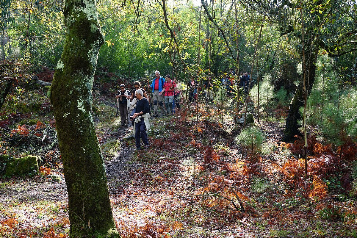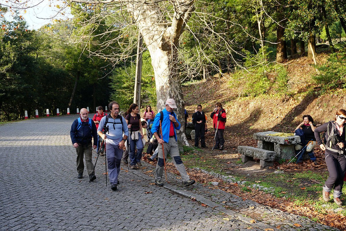 Tirada a foto de grupo abalamos monte acima para a Carreira de Tiro, paradisíaco planalto onde abundam folhosas de grande porte que com os tons matizados do outono nos brindam com um espetáculo de cores, dos múltiplos verdes aos amarelos, vermelhos castanhos.