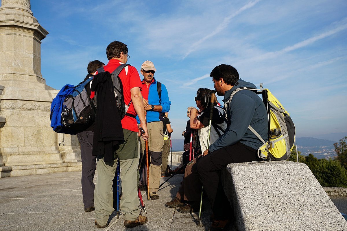 Foi junto ao portão de acesso que se fez uma pausa para recordar os santos aí venerados e para reviver velhas tradições, hoje quase esquecidas, entre as quais a muito curiosa cerimónia do “Romeiro” a São Francisco do Monte, aquando o “Bota-abaixo na ribeira de Viana”, em que rumavam ao convento nove jovens virgens de nome Maria que aí arrancavam um pé de milagroso azevinho, para mais tarde enfeitar os novos bateis e lanchas de pesca. De seguida, o novo barco era “embebedado” com vinho tinto, assim terminando a cerimónia do “Bota Abaixo”.