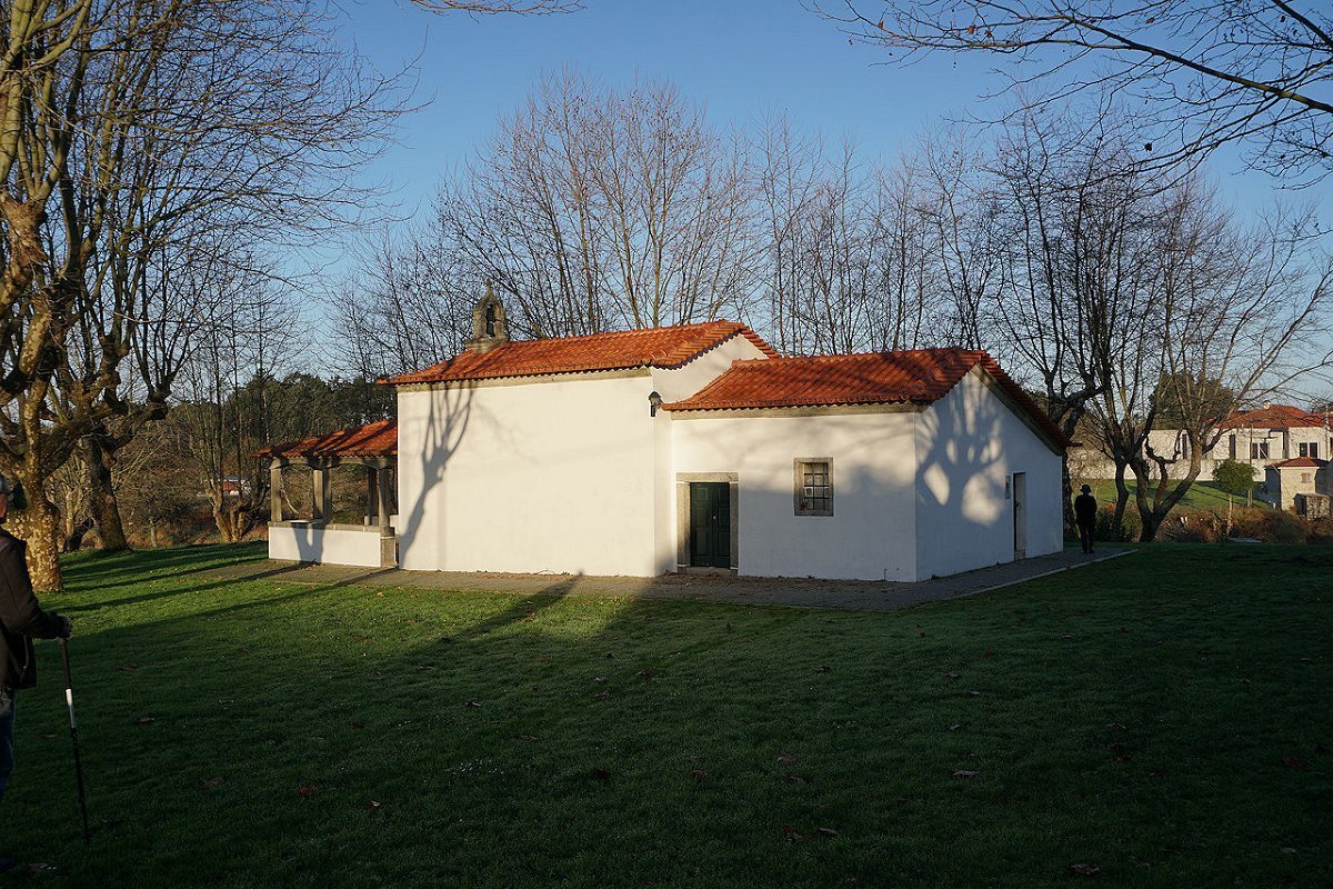 Iniciamos na pequena capela de Santa Tecla, junto à azenha do mesmo nome, situada no lugar da Gândara, freguesia de Antas, concelho de Esposende. Seguimos pelos campos do lugar da Laje tendo atravessado pouco depois a EN13 e entrado em Belinho, onde fizemos uma pausa para café no adro da capela da Srª do Rosário, defronte da imponente entrada amuralhada da casa de família do poeta António Corrêa d’Oliveira, pai de José Gonçalo Correia de Oliveira, ex-ministro da economia do Estado Novo.