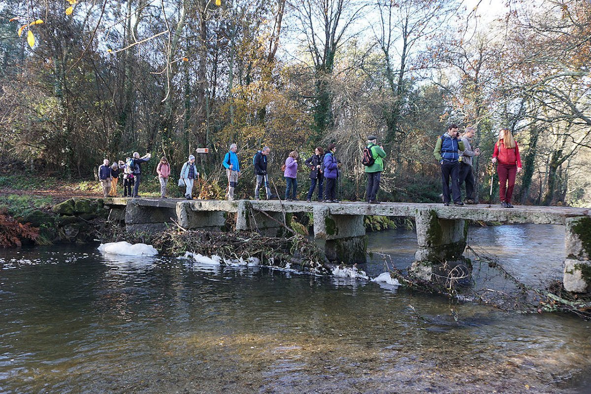 Cruzamos de seguida diversos caminhos florestais, agora tingidos de tons outonais e com o castanho da folhagem a atapetar a beirada dos caminhos, que nos conduziram até às margens do rio Neiva, junto ao “engenho de Esprade”, na margem esquerda e à “azenha do Grilo”, do outro lado do pontão que cruza o Neiva, situada já na freguesia de S. Romão do Neiva.