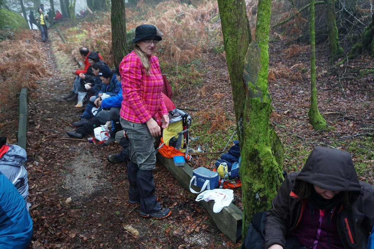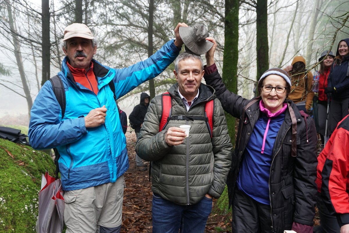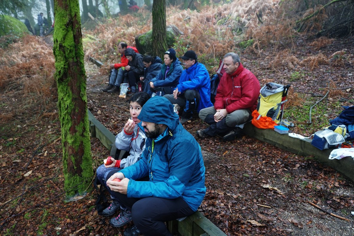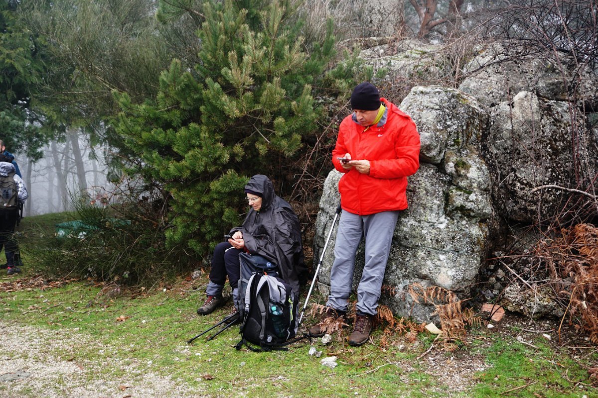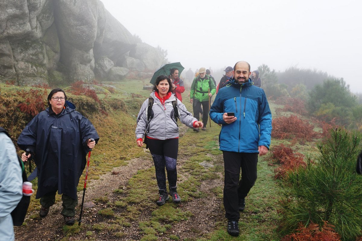 Após mais uma foto de grupo, tendo como pano de fundo o palanque do miradouro do Corno do Bico e o denso nevoeiro que tudo ocultava, decidimos iniciar o regresso e procurar um local mais protegido da persistente morrinha, para fazer a pausa de almoço. O local escolhido foi o "Lameiro das Cebolas".