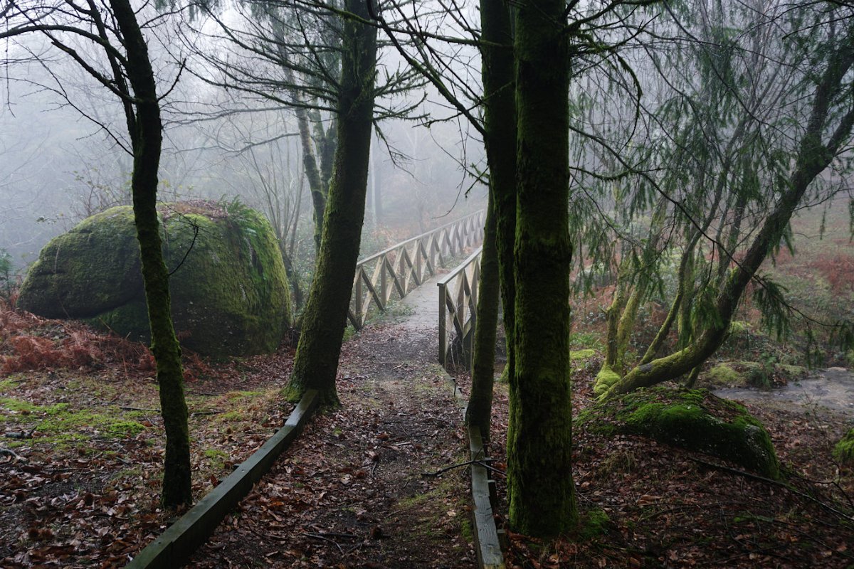 As cores de inverno tingindo em miríades tons de castanho os bosques de ancestrais carvalhos e a simbiose dos verdes líquenes pendendo da tortuosa ramificação, são uma sinfonia para os sentidos.