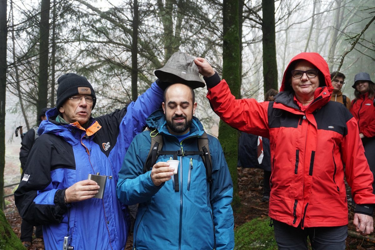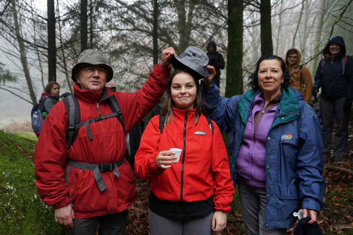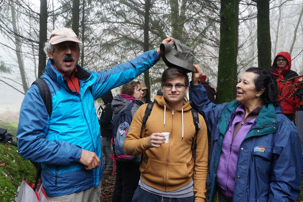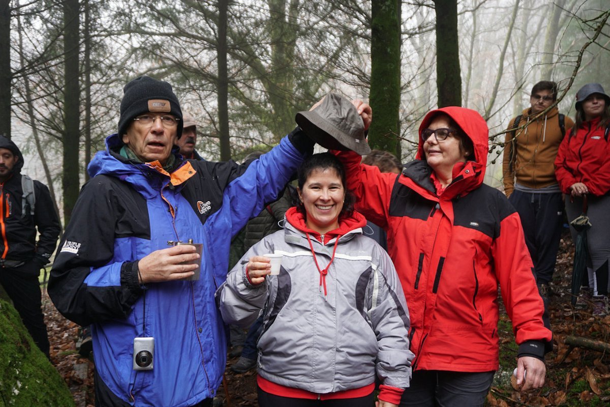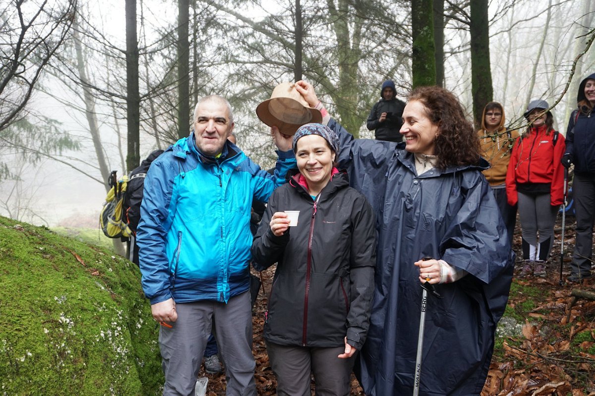 Aproveitamos um recanto mais protegido para "meter qualquer coisa à boca" e para levar a cabo a cerimónia batismal dos novos caminheiros, que assim mereceram a elevada distinção de passar a integrar a elite de Caminheiros da Vianatrilhos.