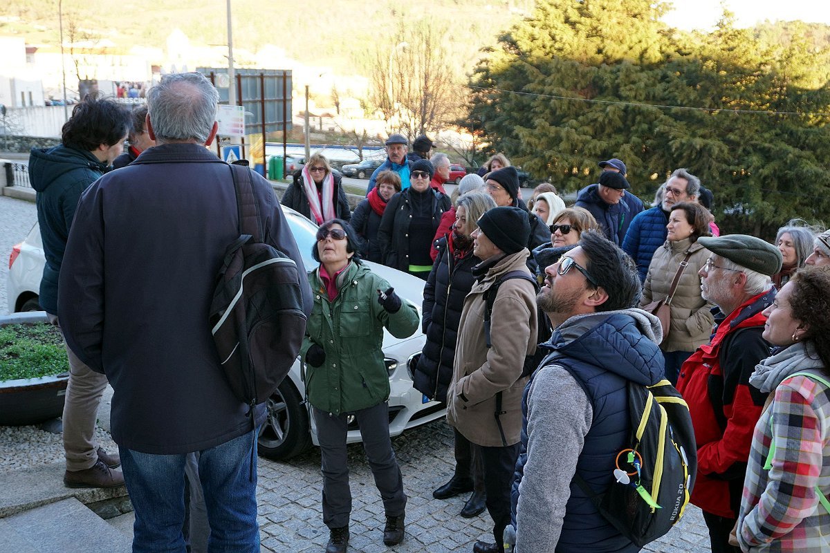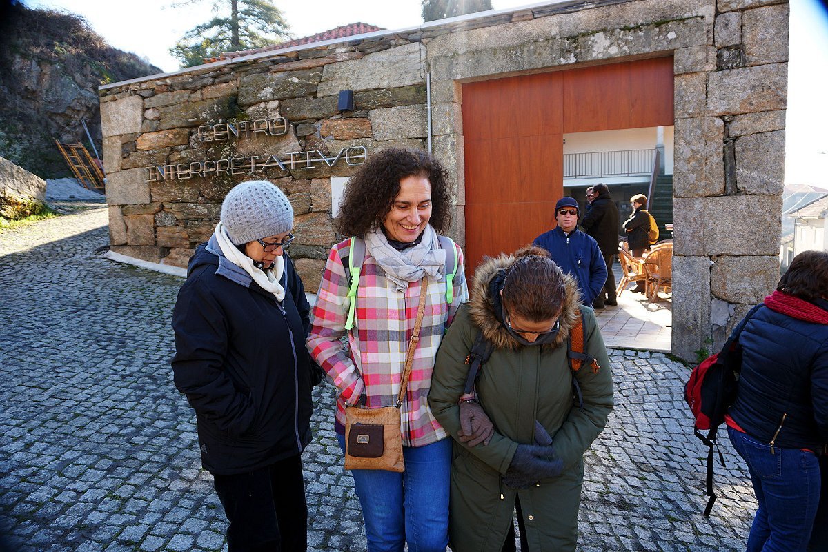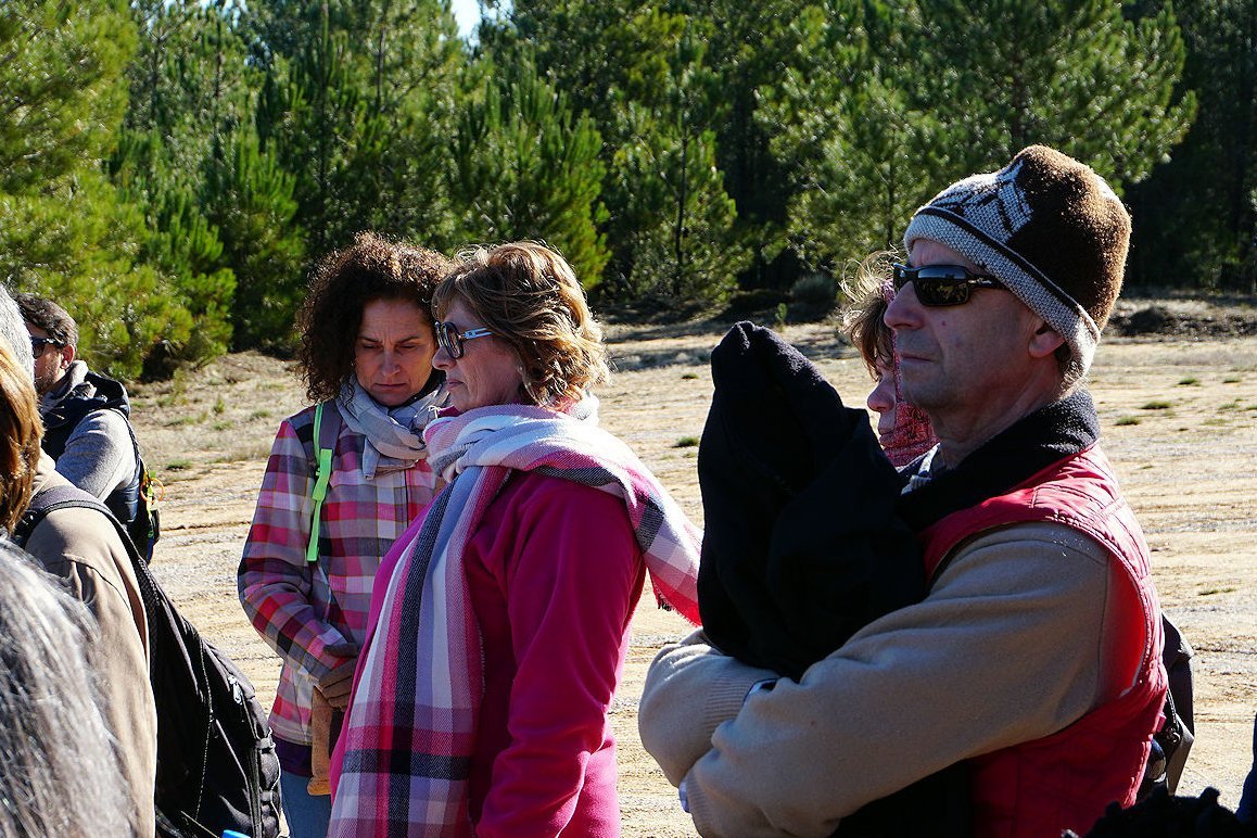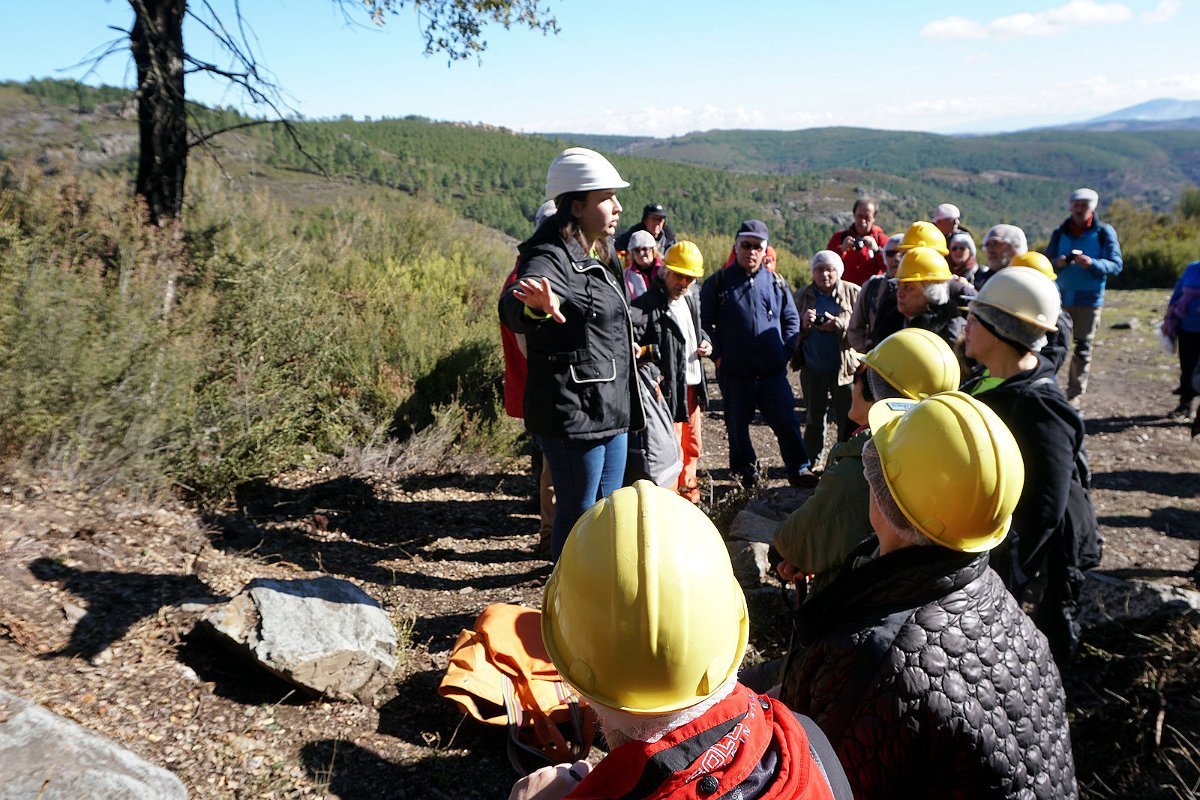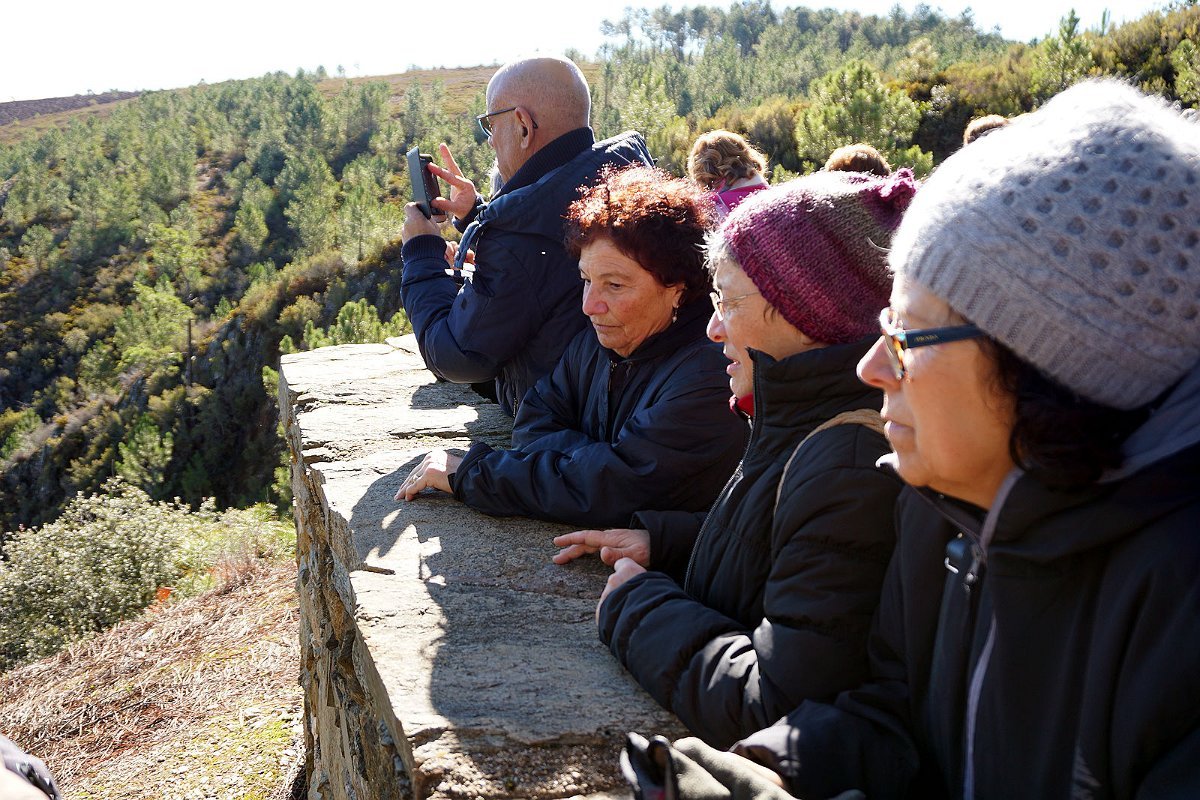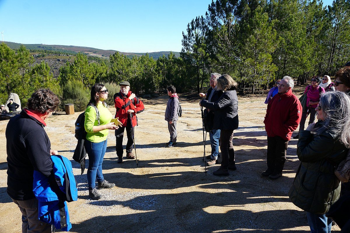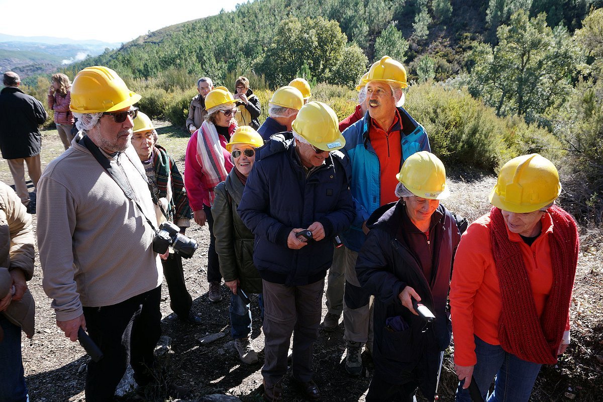 Depois de algum tempo de espera pelos mais atrasados, deixamos o Centro Interpretativo para fazer um percurso pedestre que contemplava uma visita ao miradouro sobre a Corta da Ribeirinha, com a visualização e interpretação da paisagem de Tresminas, posterior visita ao interior da Galeria dos Alargamentos, e finalmente ao local da antiga exploração mineira a céu aberto da Corta da Ribeirinha.