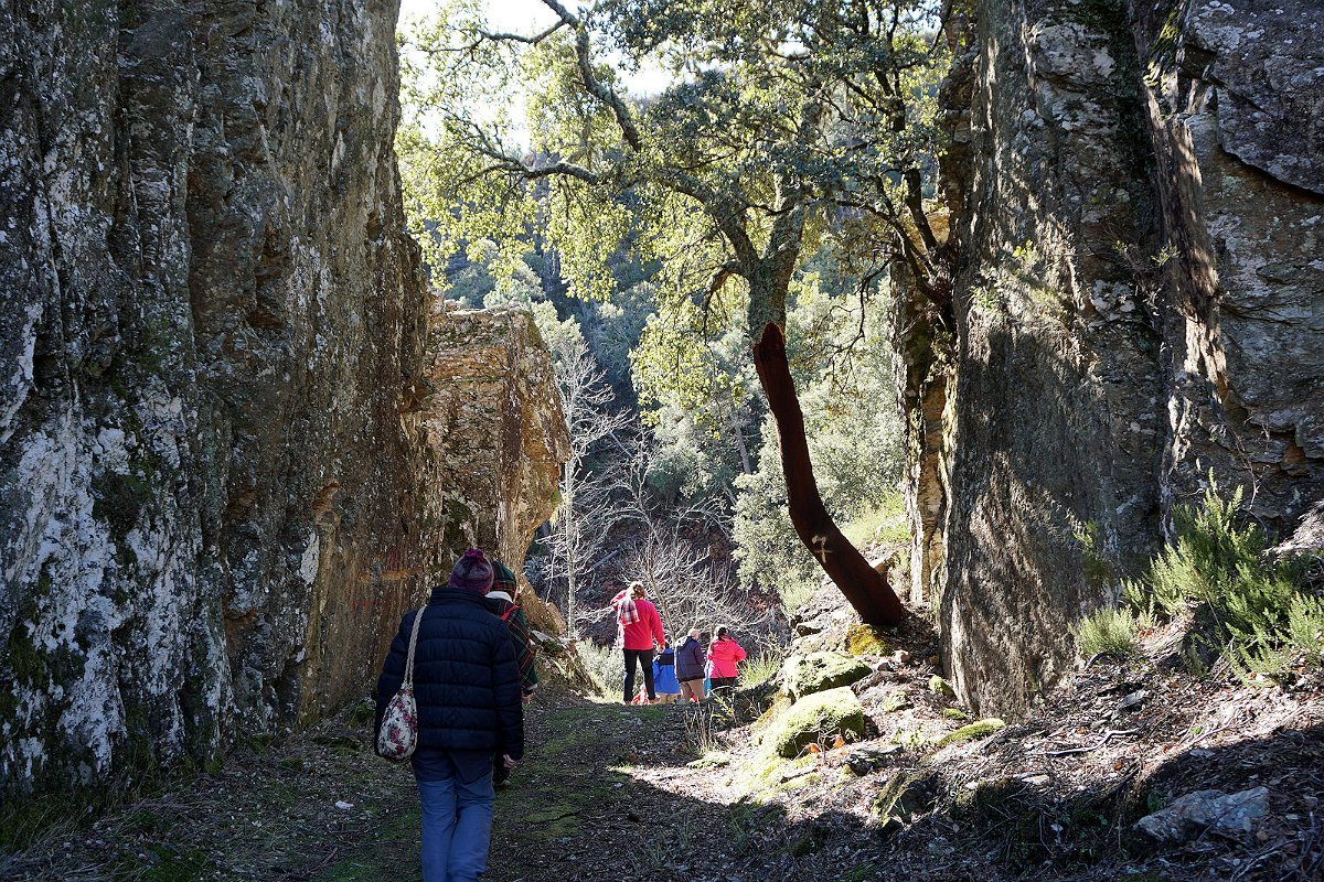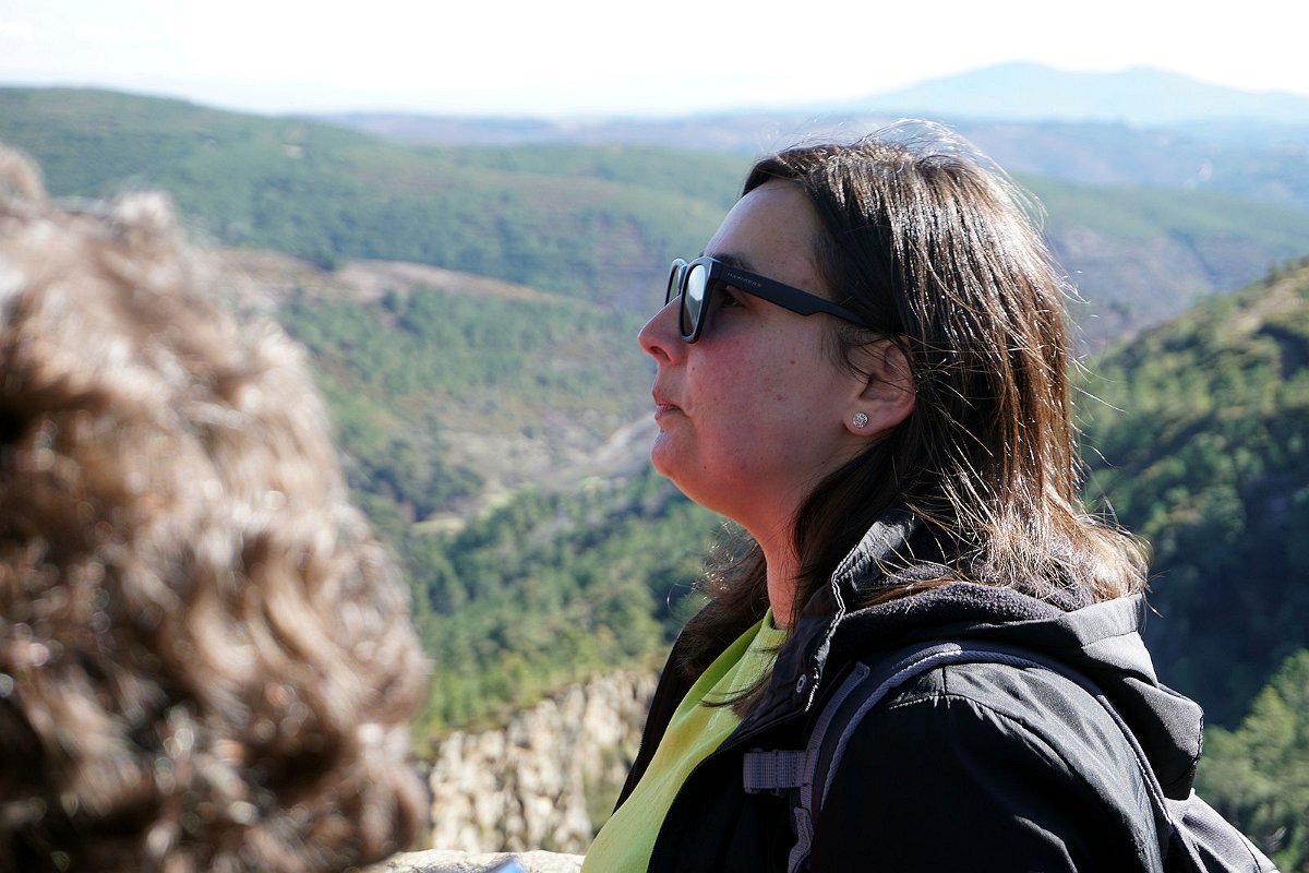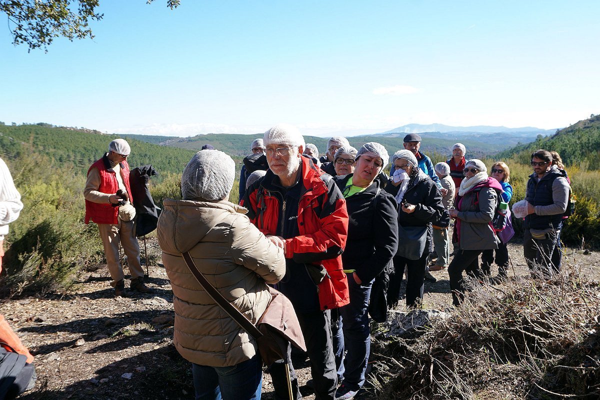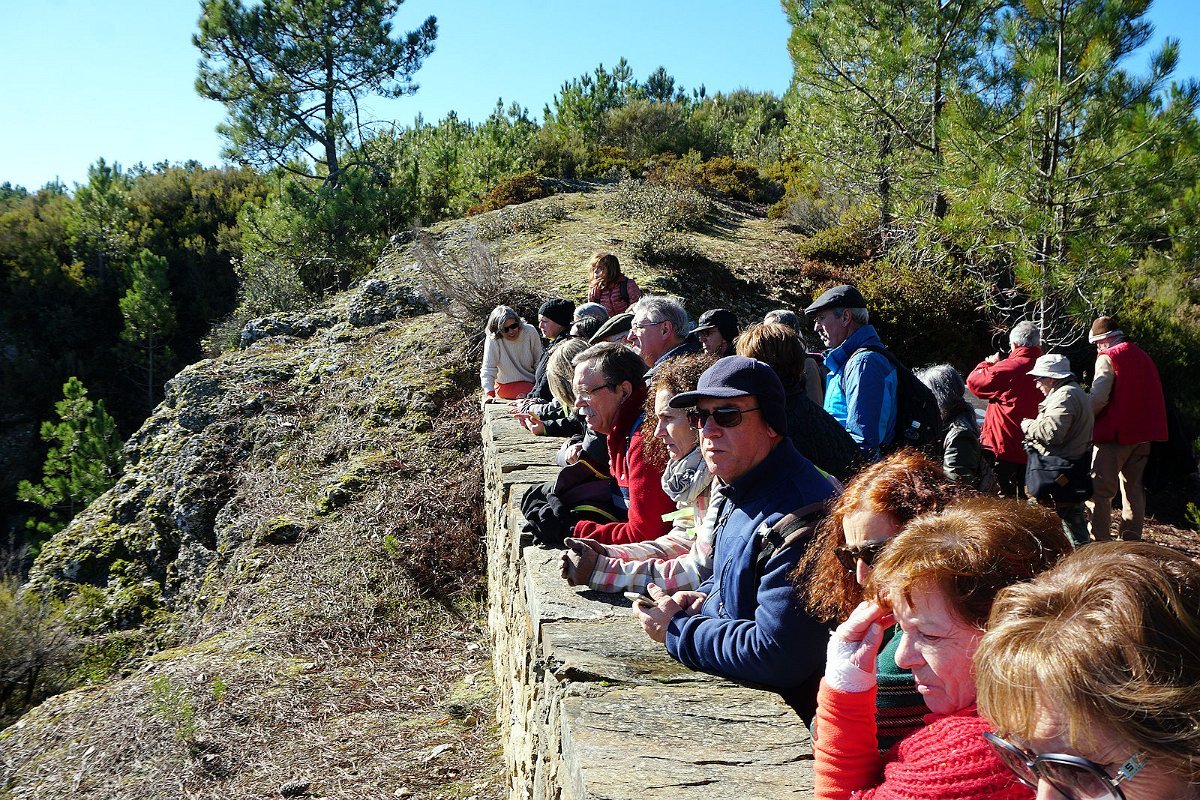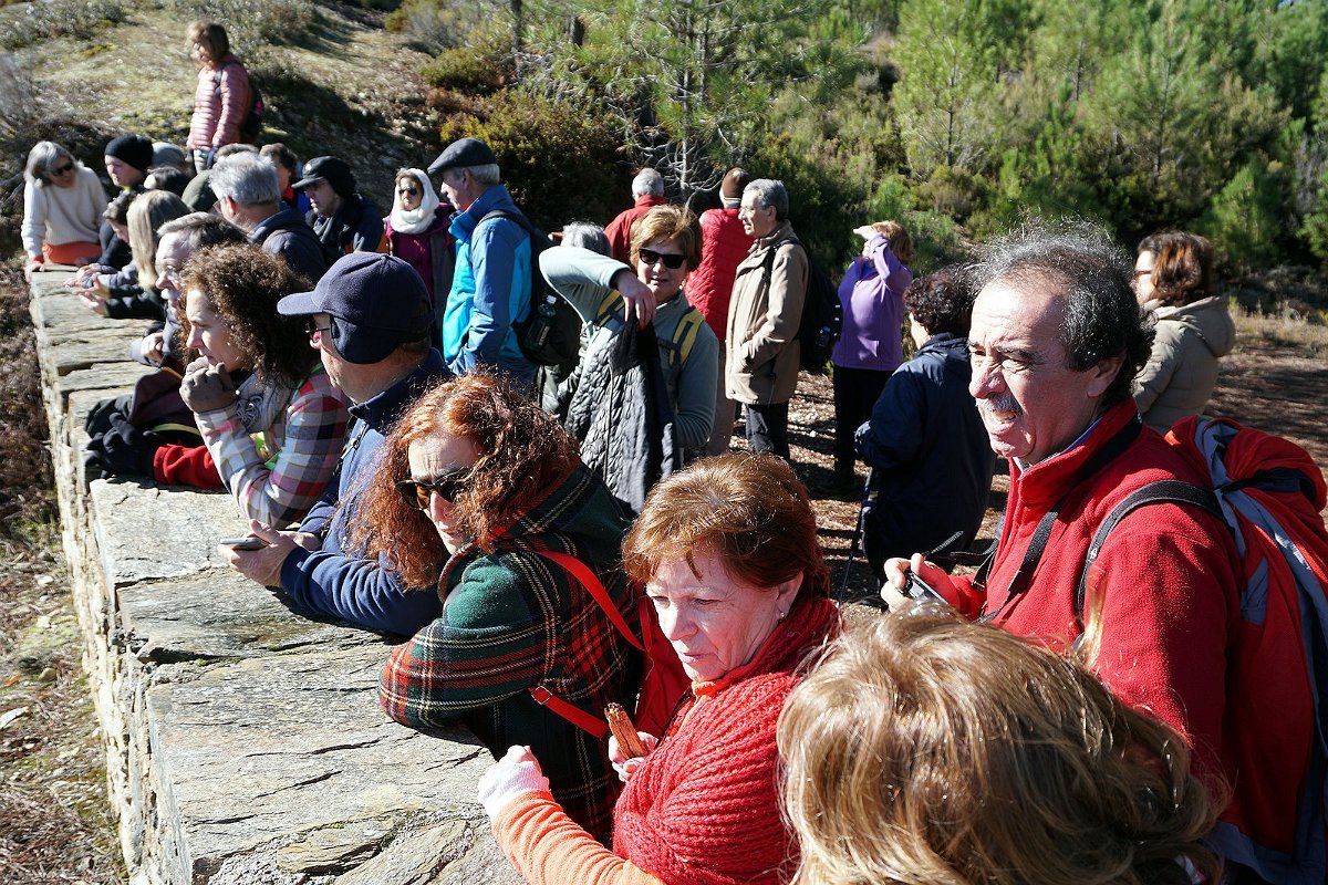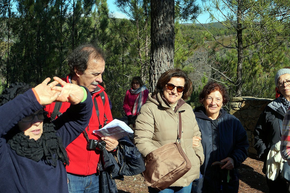 Depois de algum tempo de espera pelos mais atrasados, deixamos o Centro Interpretativo para fazer um percurso pedestre que contemplava uma visita ao miradouro sobre a Corta da Ribeirinha, com a visualização e interpretação da paisagem de Tresminas, posterior visita ao interior da Galeria dos Alargamentos, e finalmente ao local da antiga exploração mineira a céu aberto da Corta da Ribeirinha.