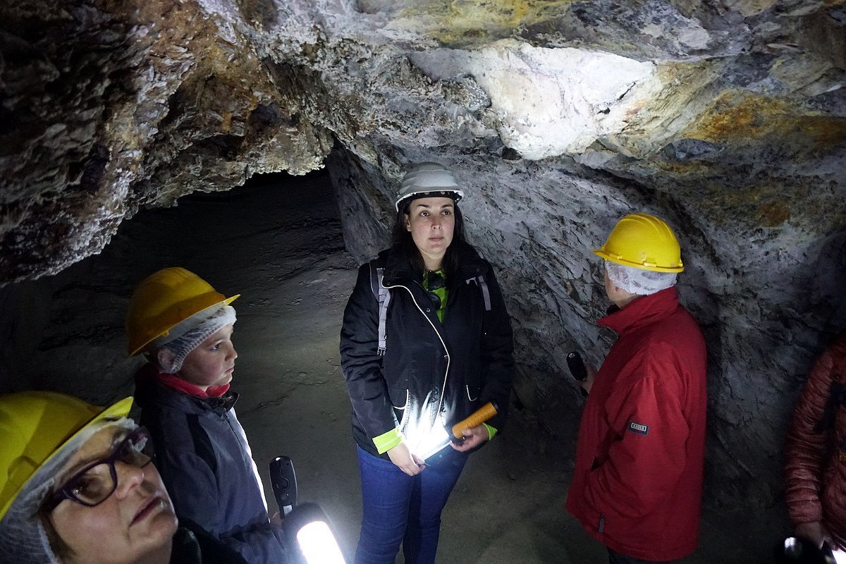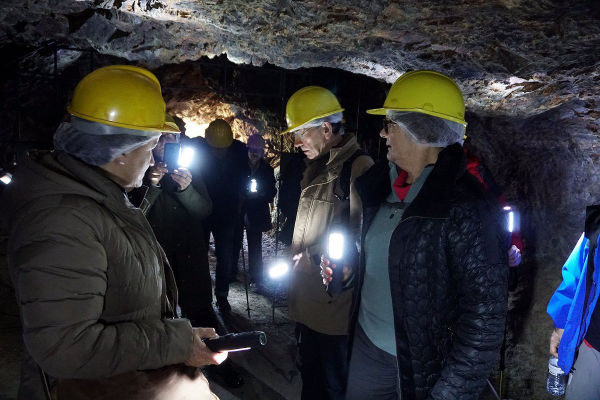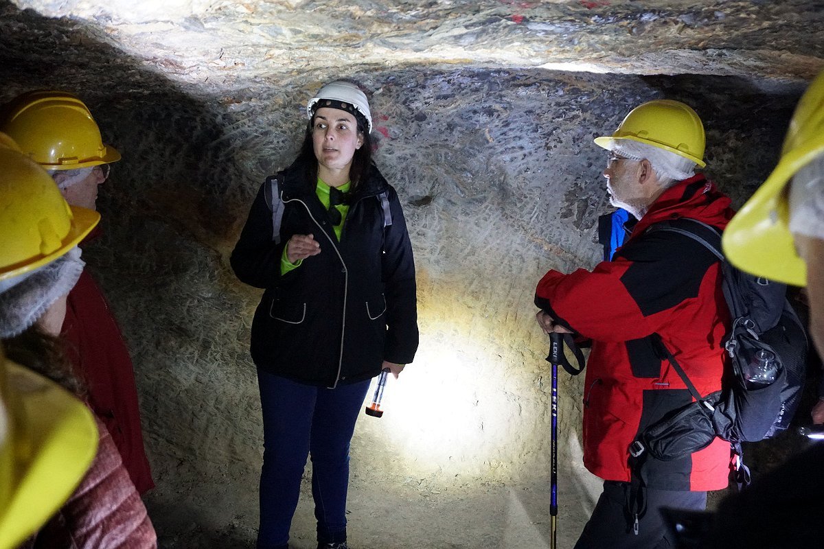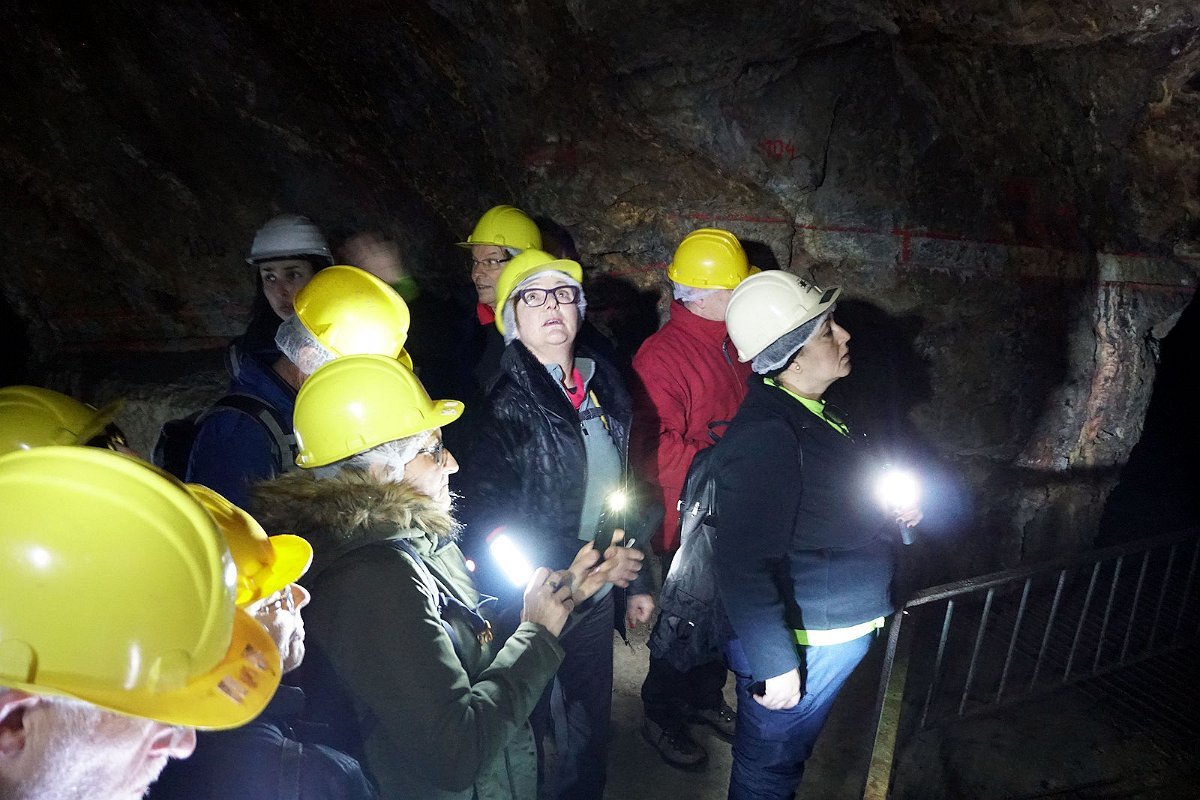 E foram muitas as explicações que nos foi transmitindo ao longo da visita, sendo o momento mais esperado o da visita à Galeria dos Alargamentos, onde o grupo se desdobrou de forma a proporcionar uma melhor visualização da negra galeria que rompe a rocha xistosa, arduamente escavada ao longo de séculos.
