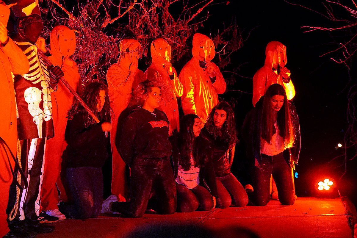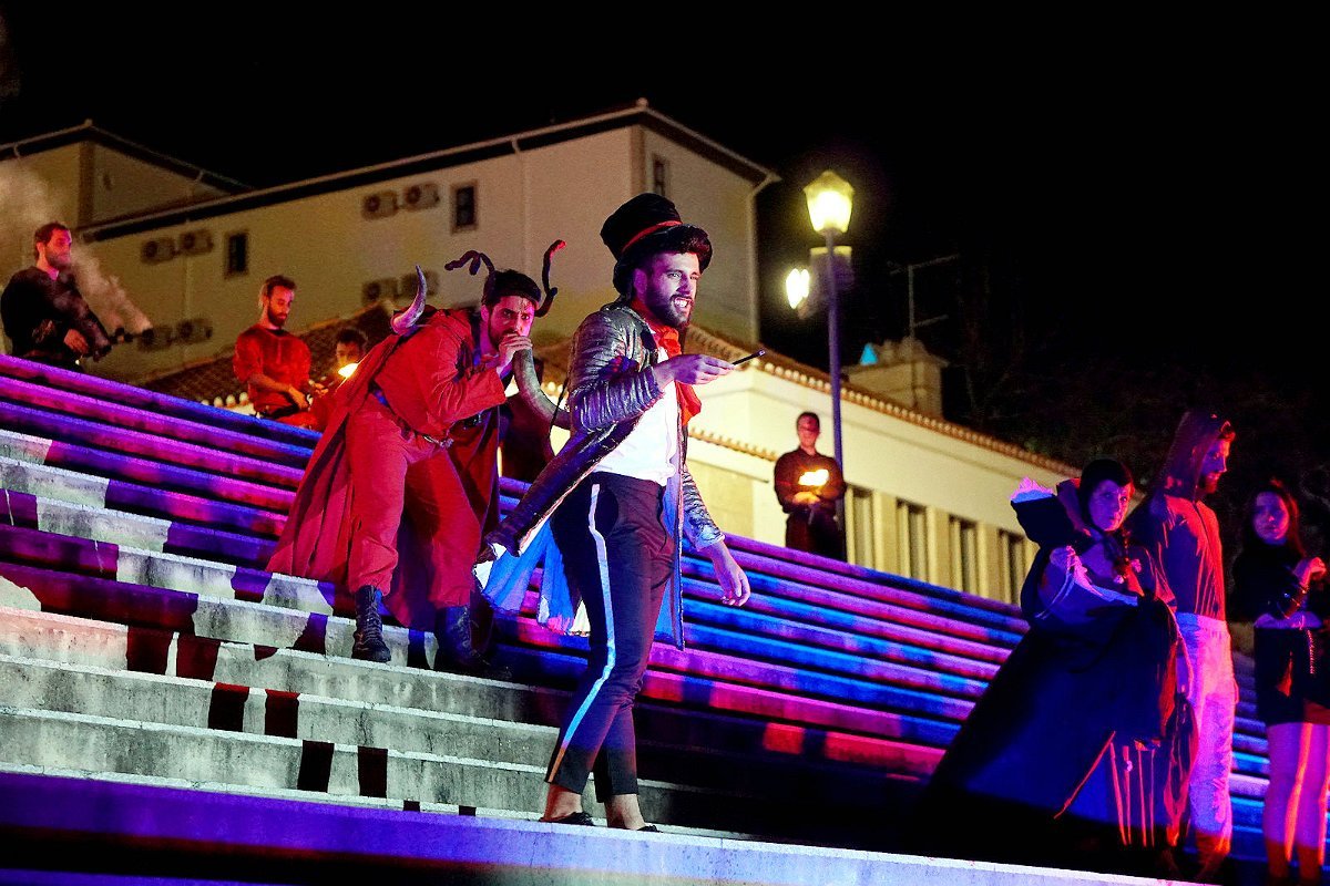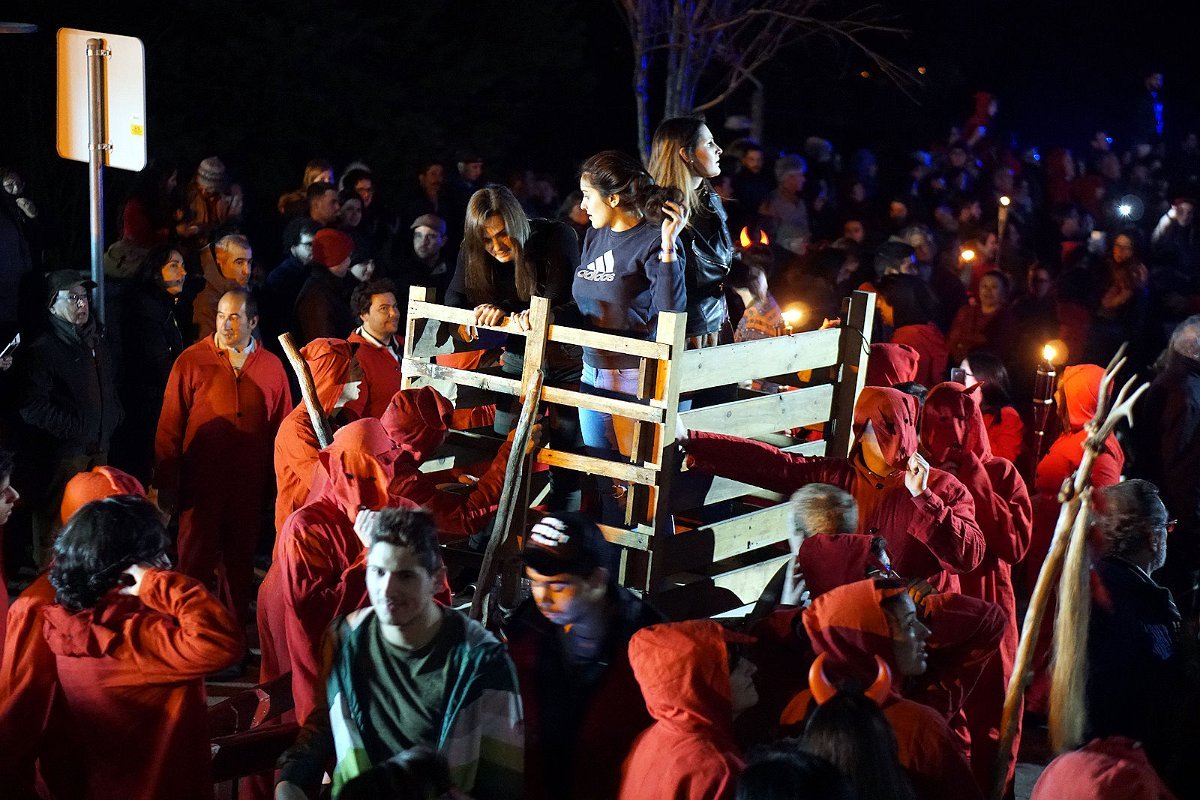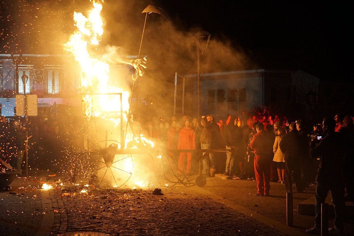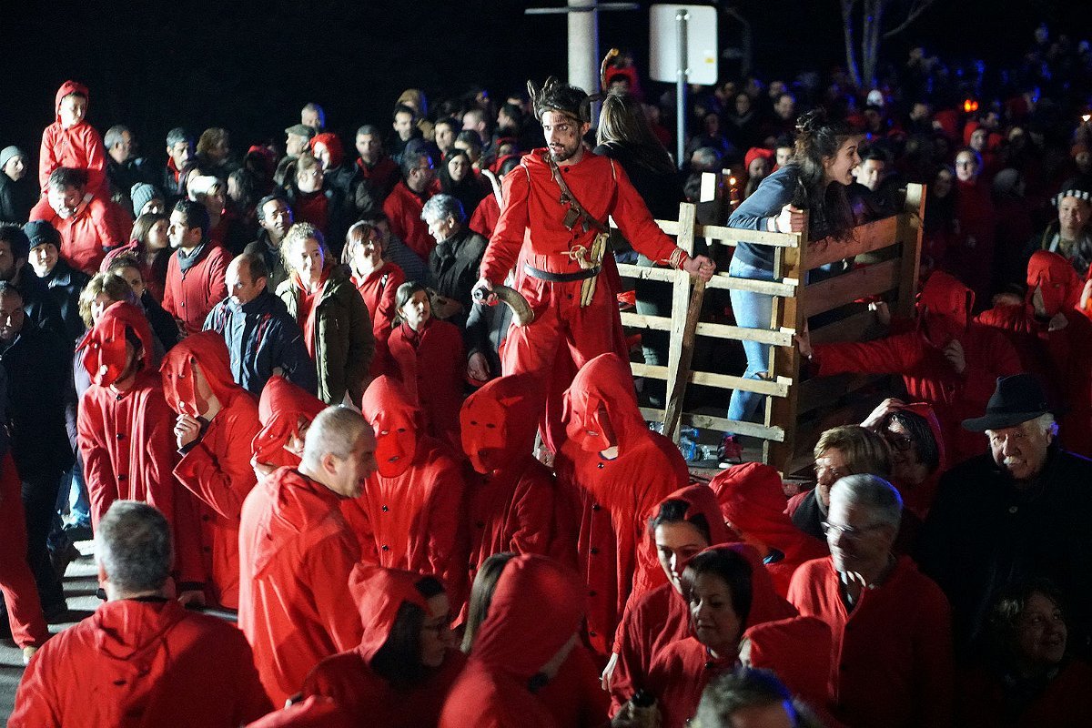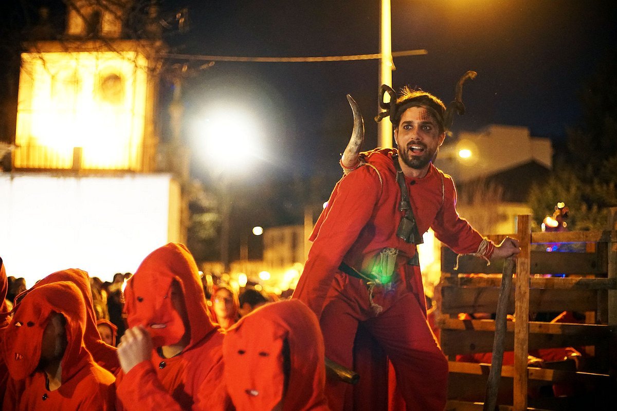 Mas a noite ia caindo de mansinho pelo que havia que descer até ao Convento de São Francisco de Vinhais, onde os mil diabos iam tomando posições para, na companhia da Morte gigante, desfilar pelas ruas da vila, numa procissão que termina no largo do Arrabalde, onde as raparigas raptadas e aprisionadas pelos diabretes são levadas à pedra e castigadas, finalizando com o fogo a revelar o rosto da Morte.