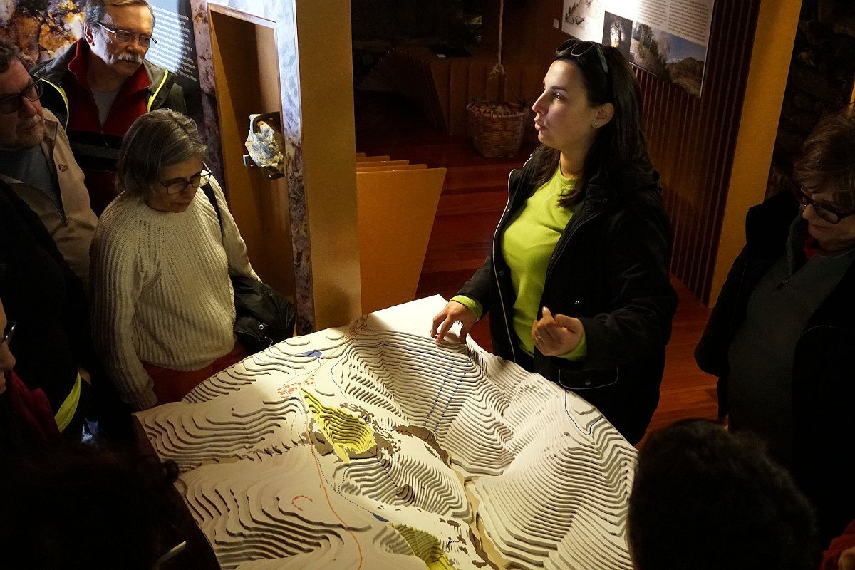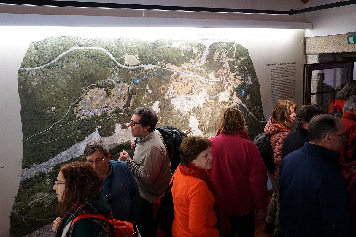 Depois de uma curta visita à antiga mina a céu aberto da Corta da Ribeirinha havia que regressar, pelo que o final da visita foi já no Centro de Interpretação de Tresminas, onde pudemos fazer uma síntese final dos que vimos na parte da manhã, completado com mais informação sobre múltiplos aspetos da atividade mineira, bem como dos usos e costumes da população residente ao longo dos vários séculos da sua laboração.