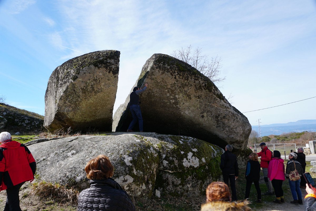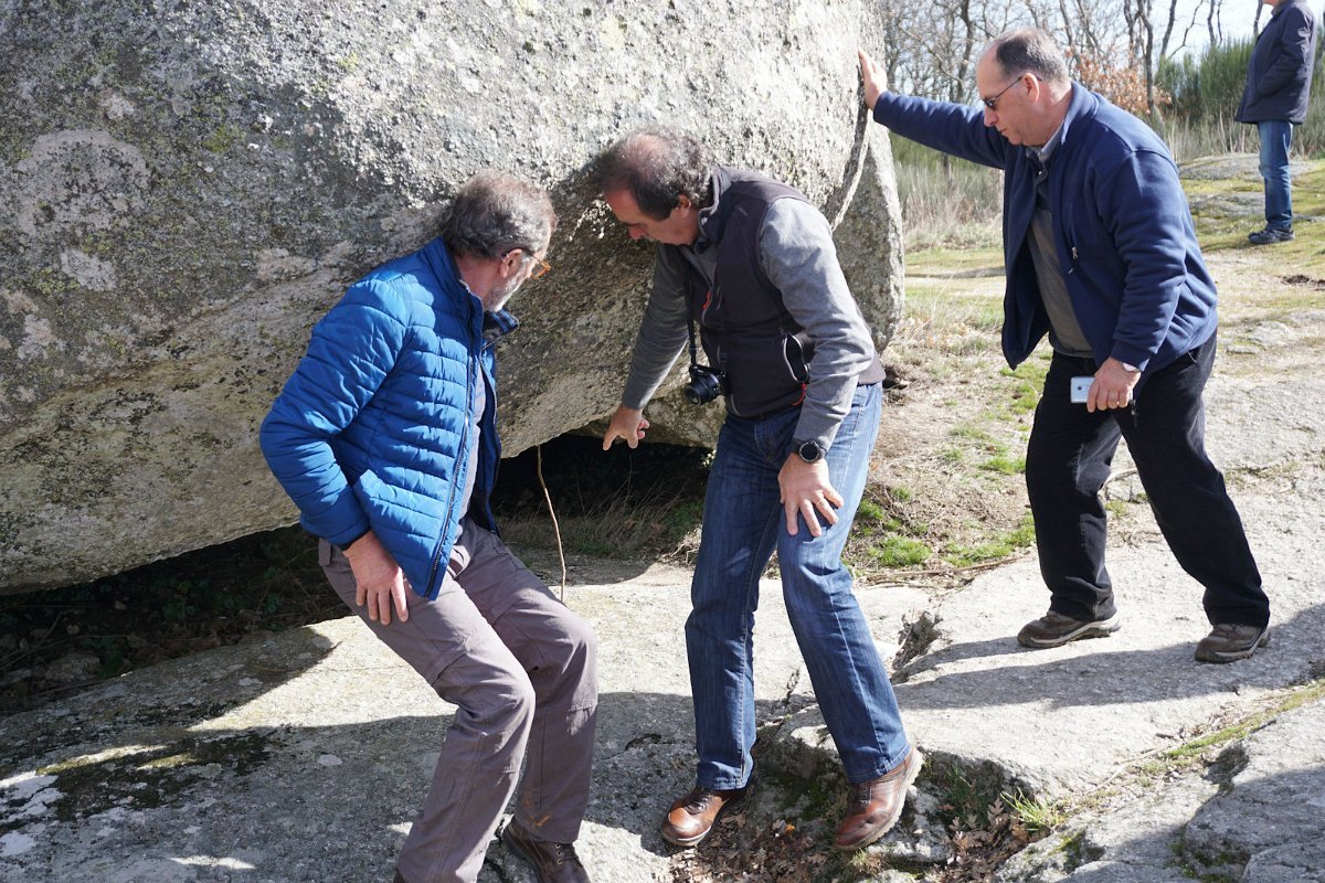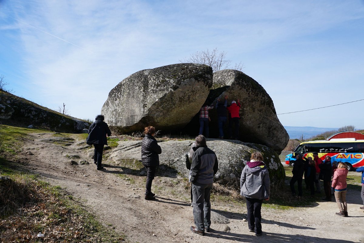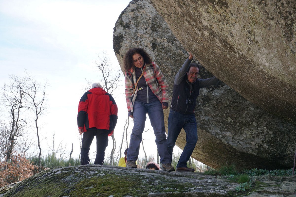 Após uma curta pausa seguimos para Chaves, com paragem na Pedra Bolideira, que embora pese várias toneladas é capaz de se "bolir" num movimento oscilatório, com um empurrão de qualquer pessoa. O pessoal gostou e fartou-se de empurrar a pedra, primeiro do lado errado, mas depois acertaram com o certo e... é um facto! A pedra boliu mesmo! Pouco... mas boliu!