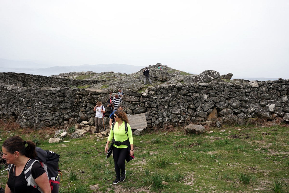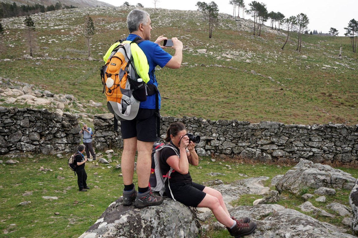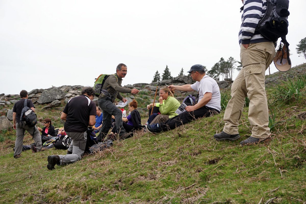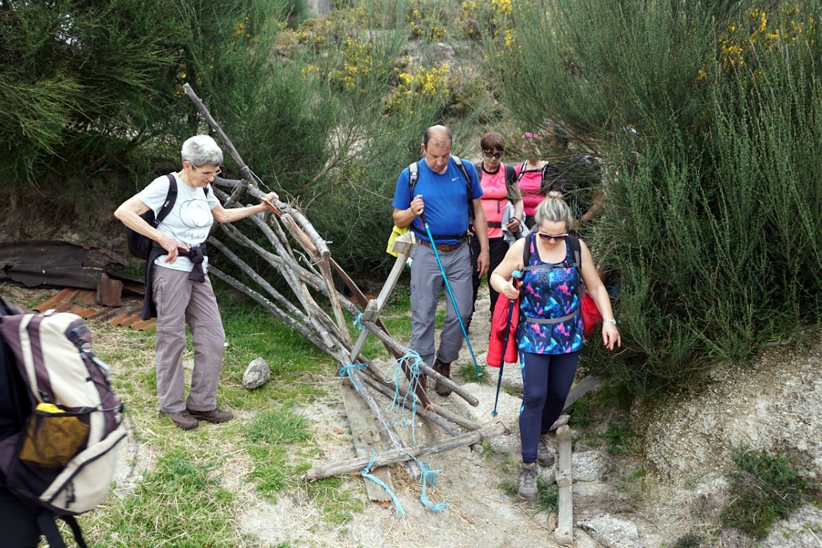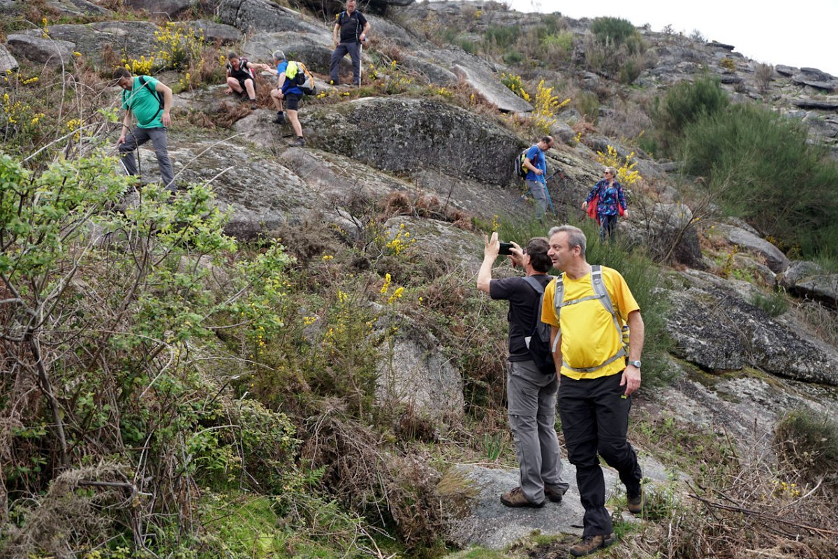 Esta última tirada foi bem dura, pois para além da forte inclinação da calçada, já levávamos nas pernas muitos quilómetros, o que fez com que o grupo se alongasse consideravelmente. Mas chegamos todos bem, fazendo o agrupamento num interessante conjunto de espigueiros de Bouças Donas, agora totalmente em ruína, testemunhas do abandono progressivo das terras de cultivo.