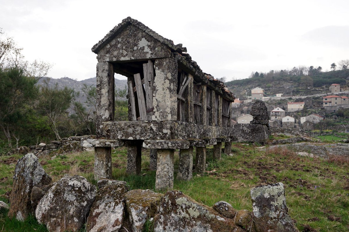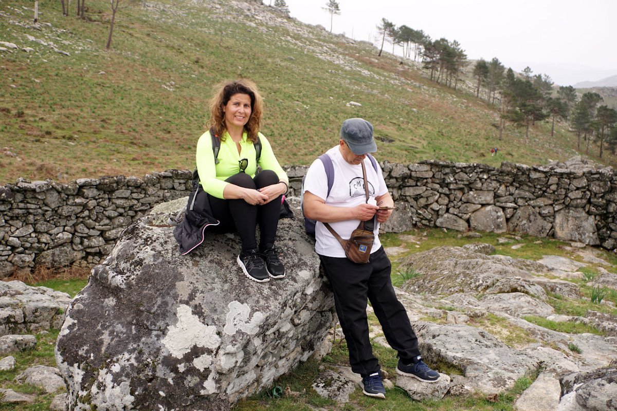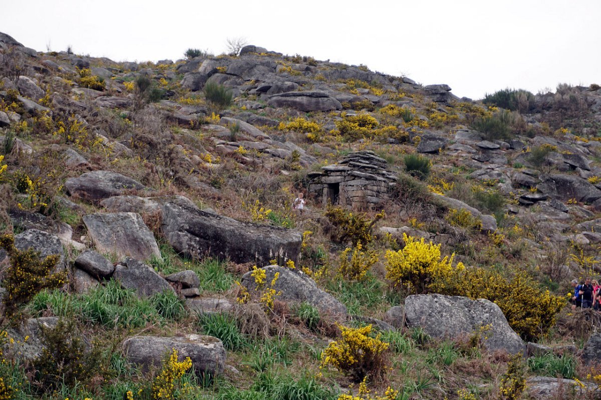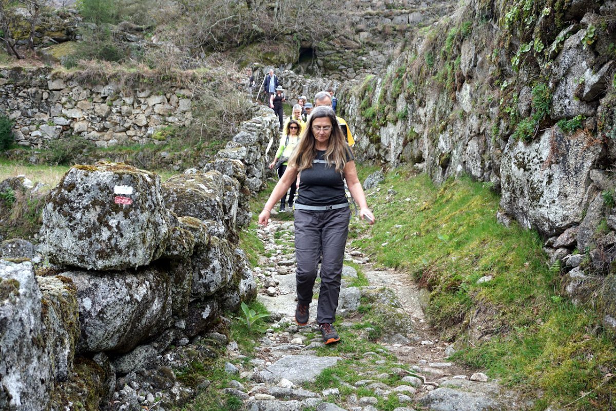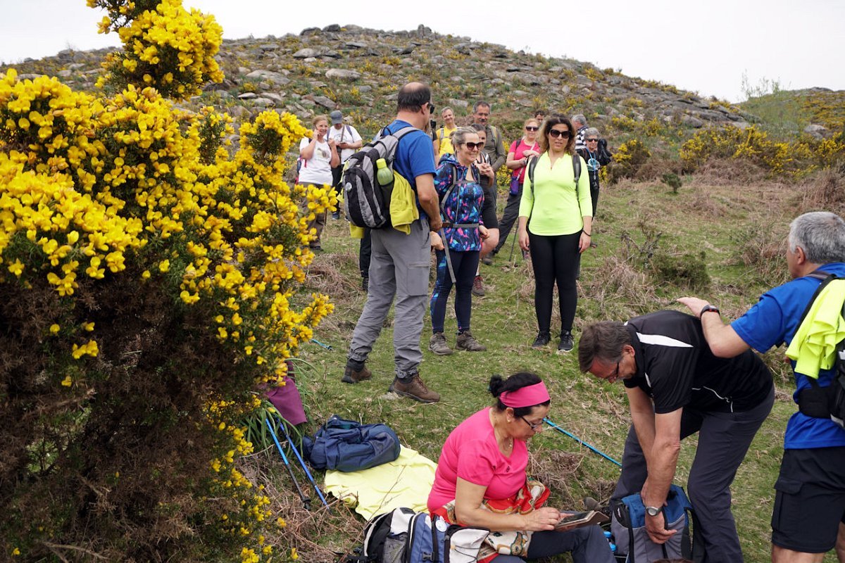 Esta última tirada foi bem dura, pois para além da forte inclinação da calçada, já levávamos nas pernas muitos quilómetros, o que fez com que o grupo se alongasse consideravelmente. Mas chegamos todos bem, fazendo o agrupamento num interessante conjunto de espigueiros de Bouças Donas, agora totalmente em ruína, testemunhas do abandono progressivo das terras de cultivo.
